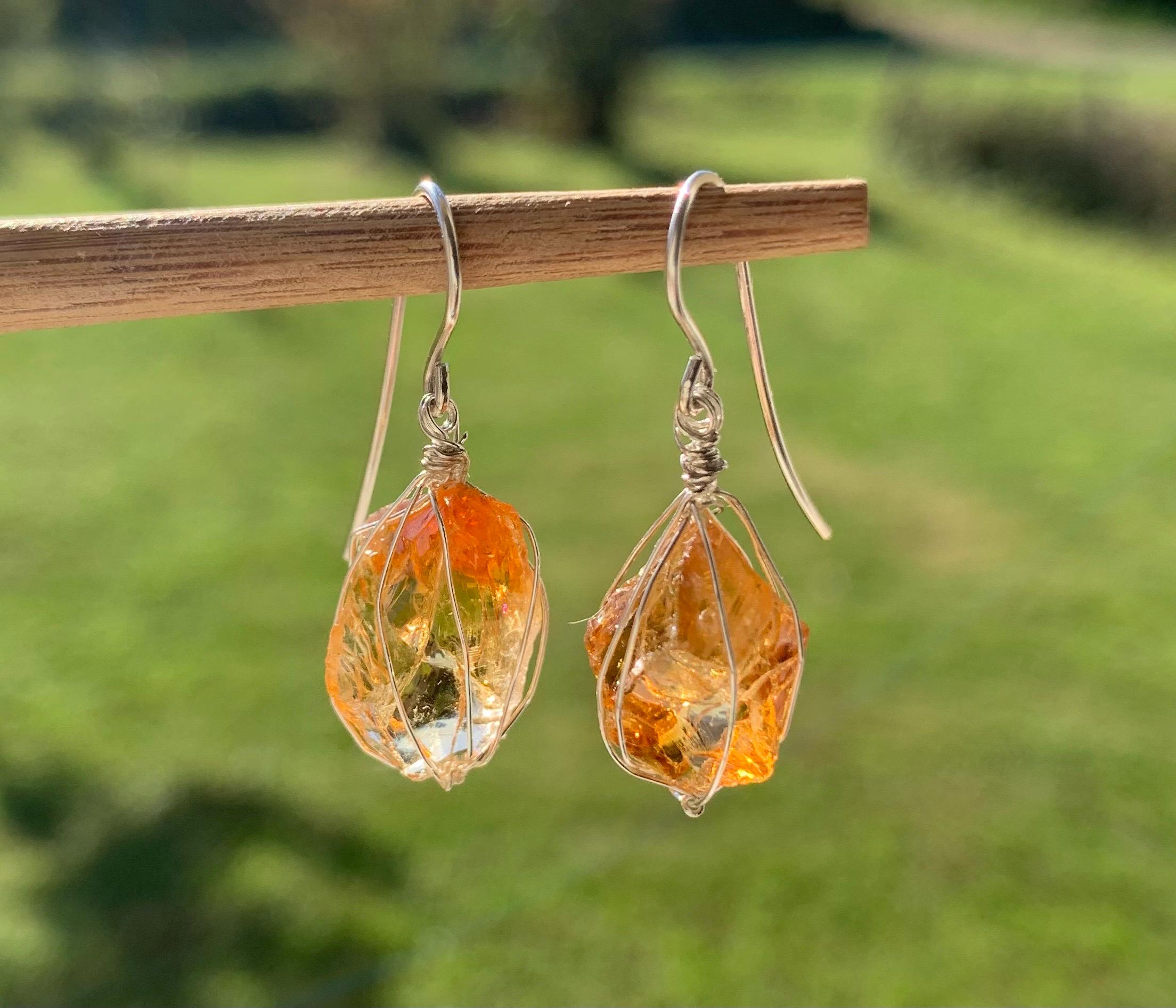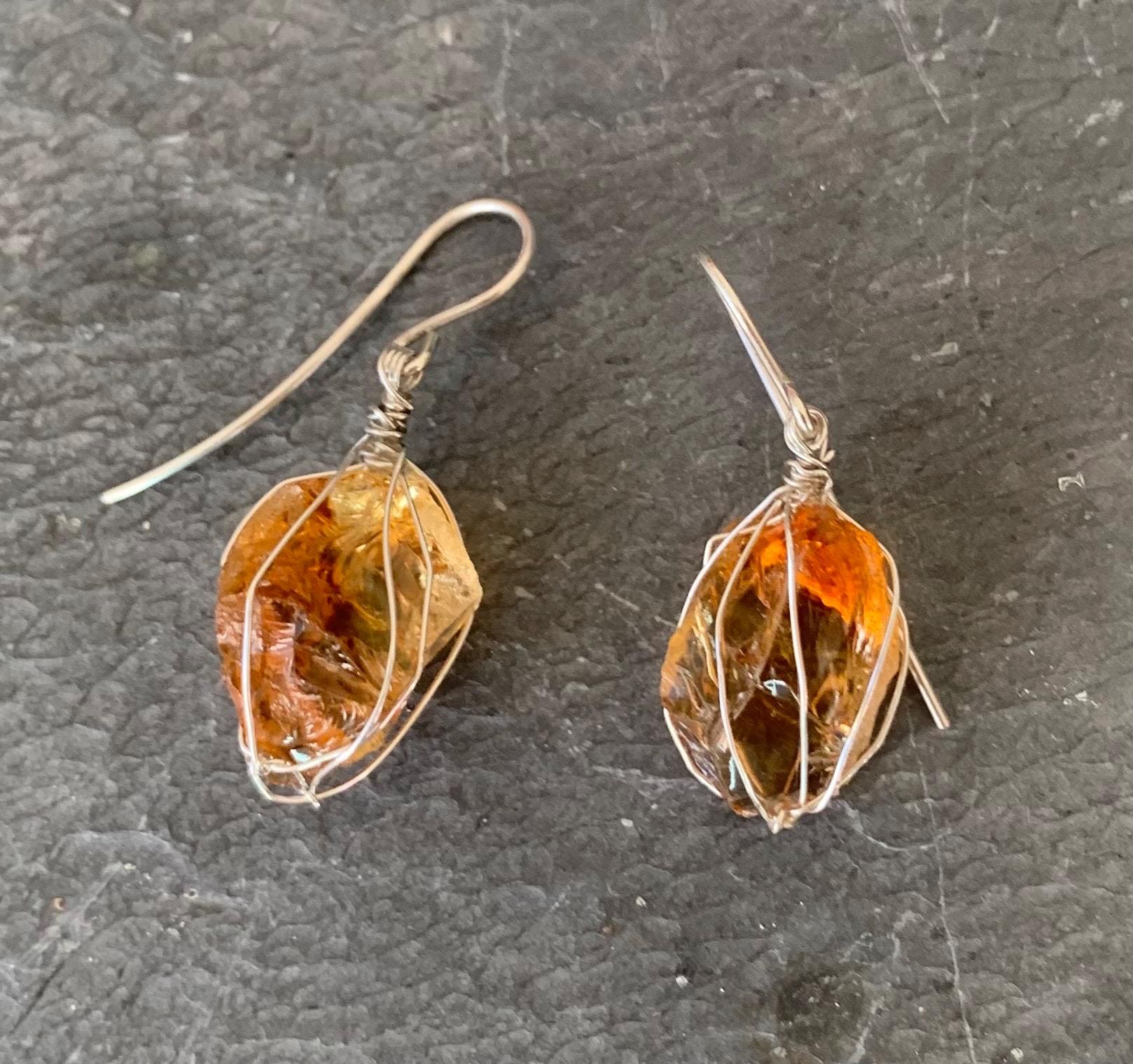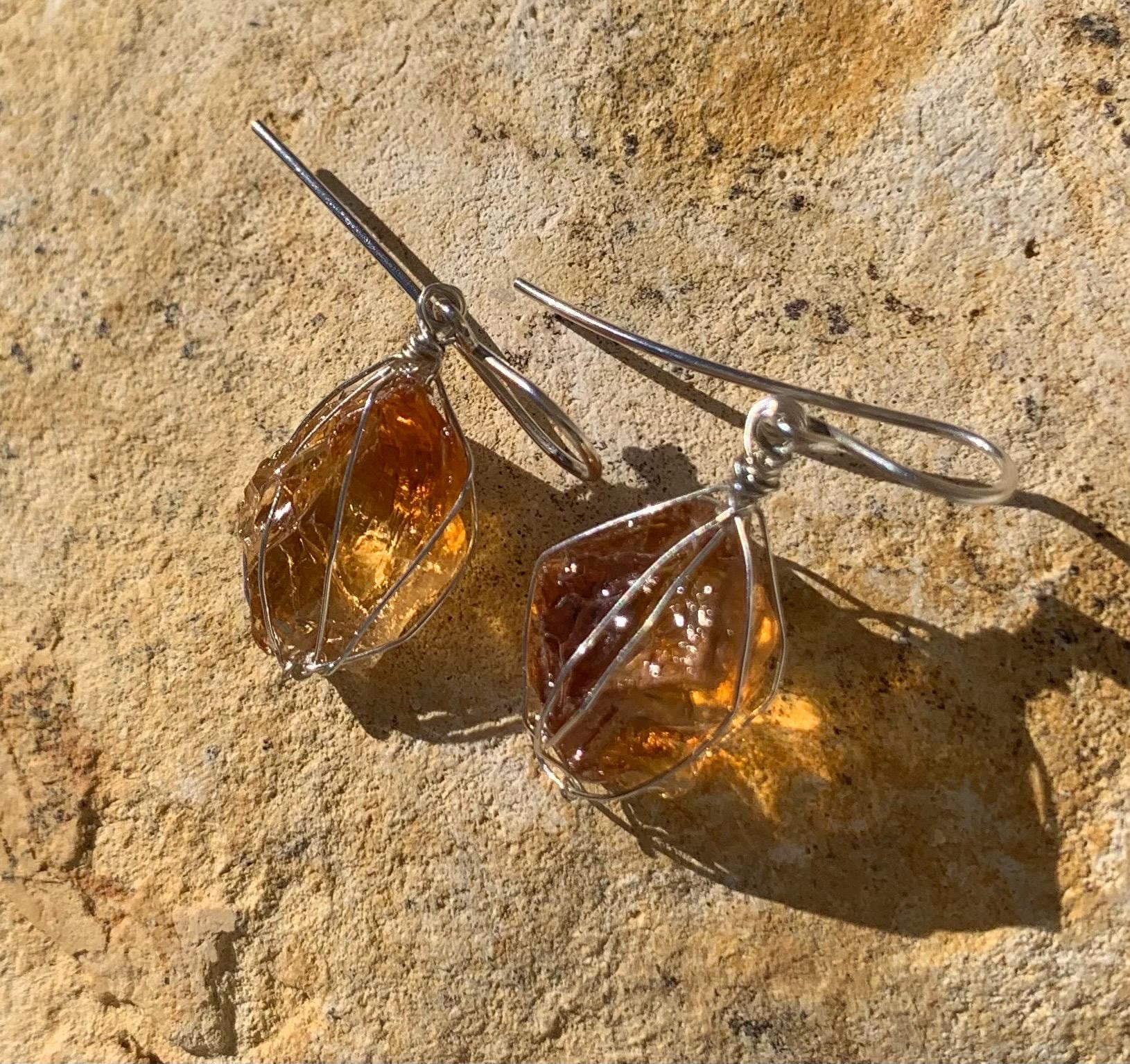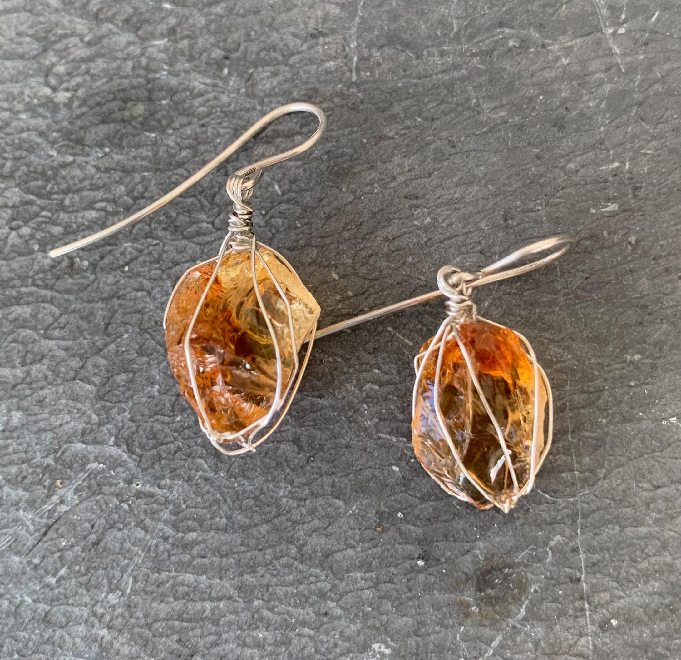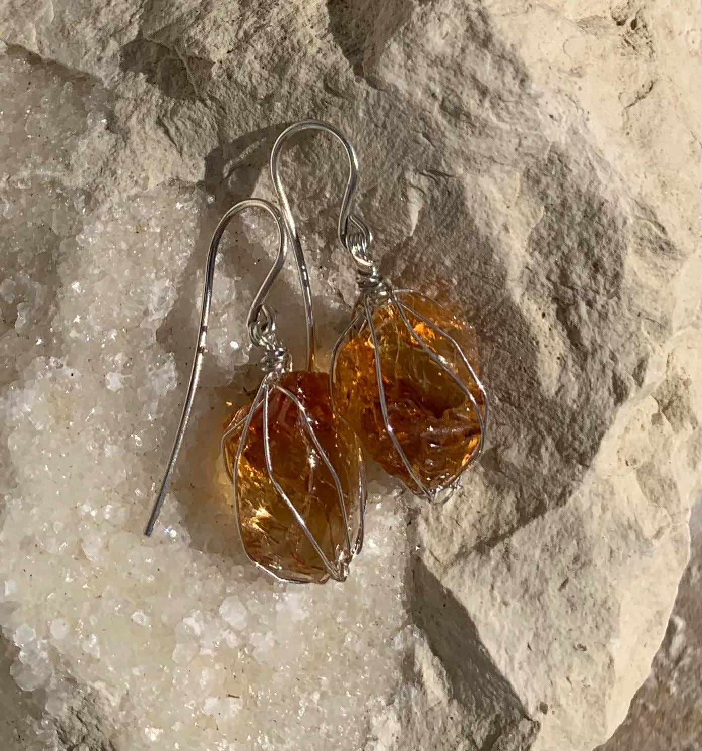 They are done in solid silver with rough citrines ( probably heated ) wrapped in silver wire.