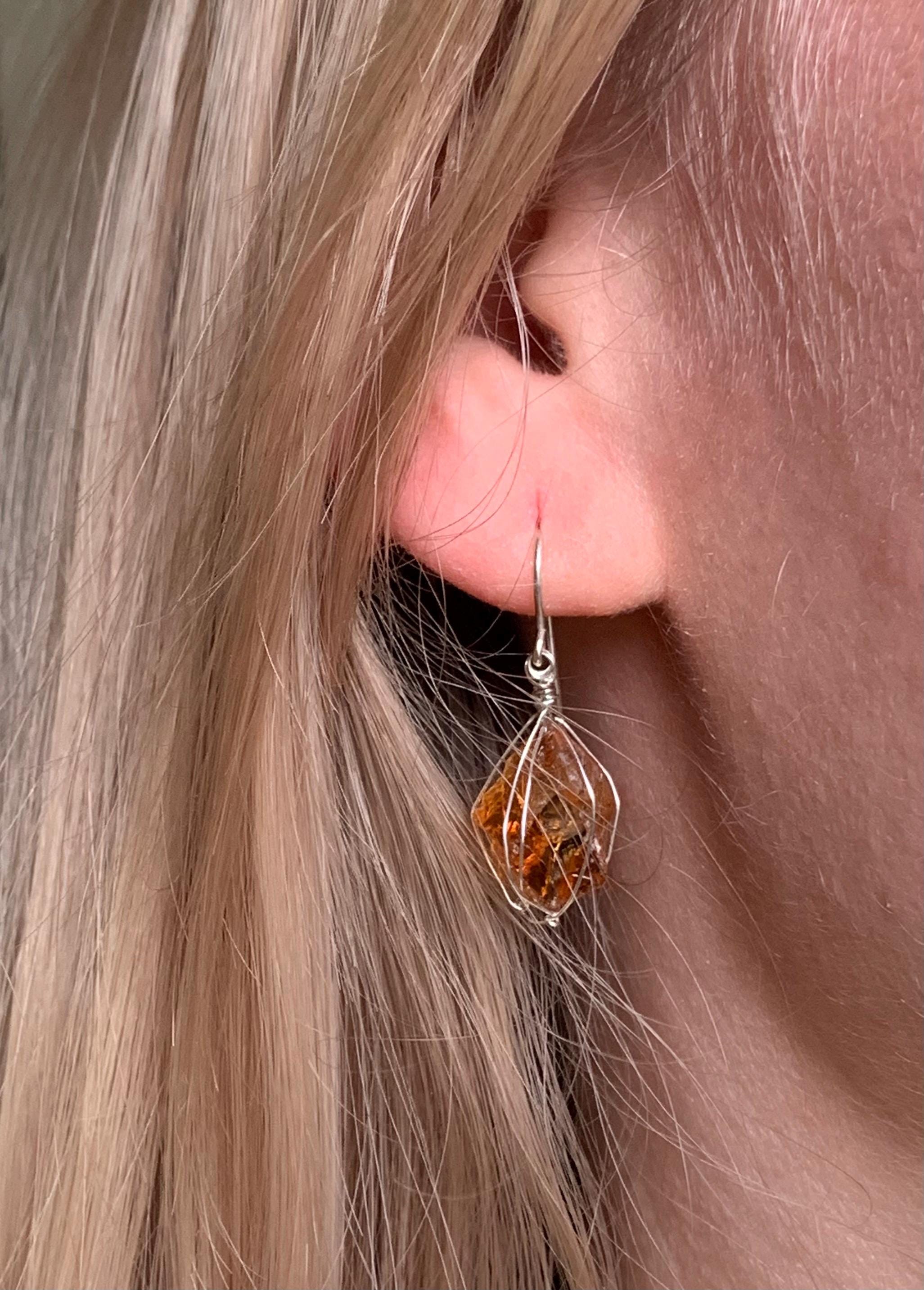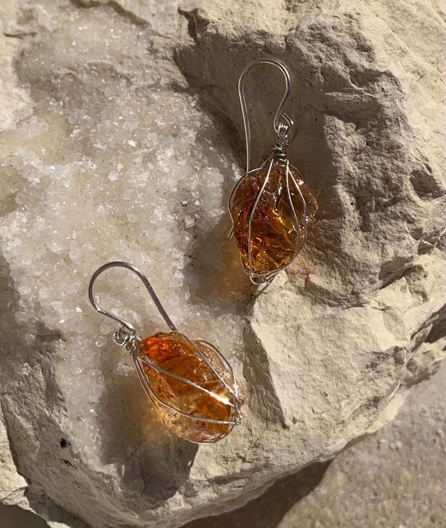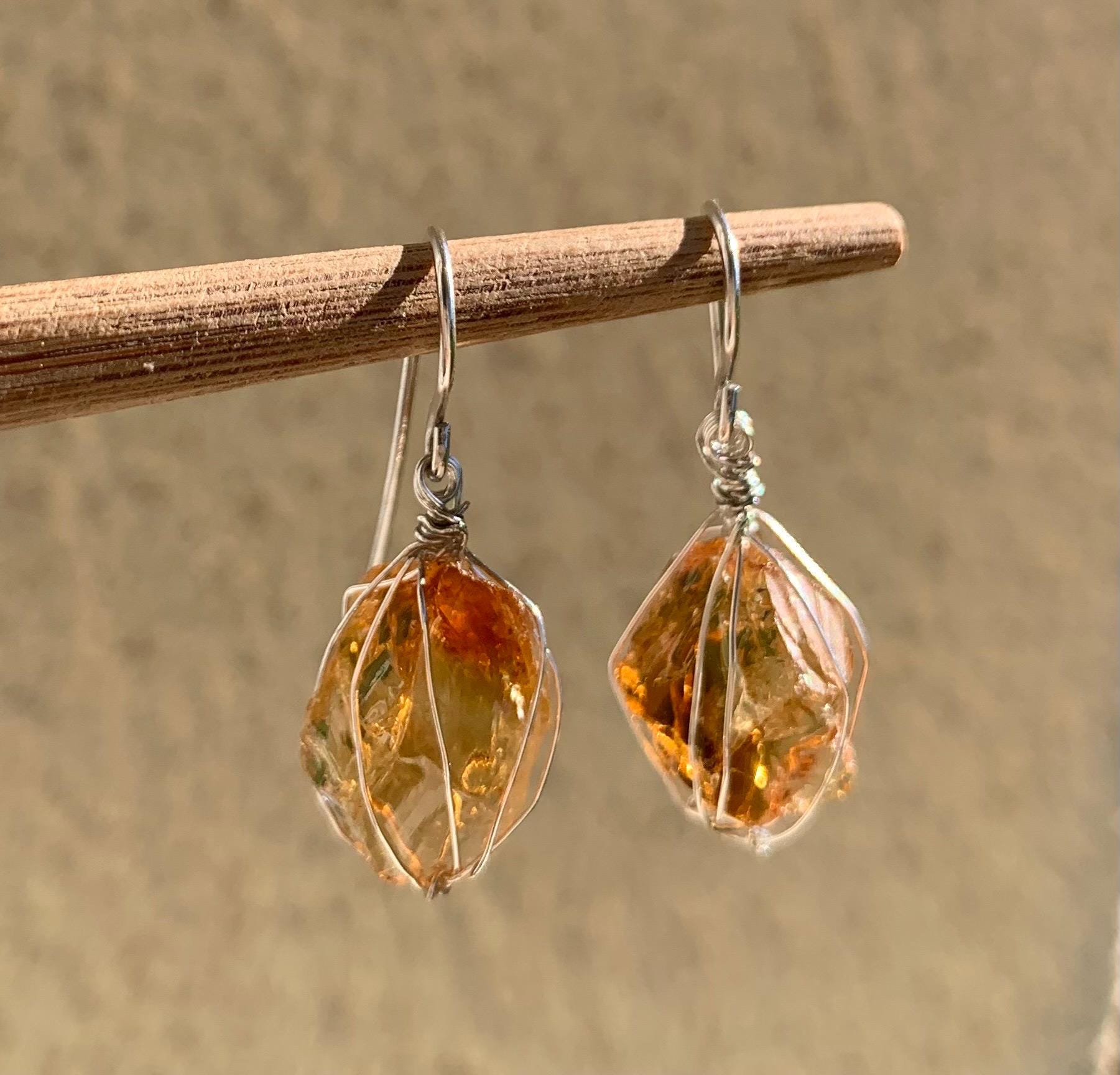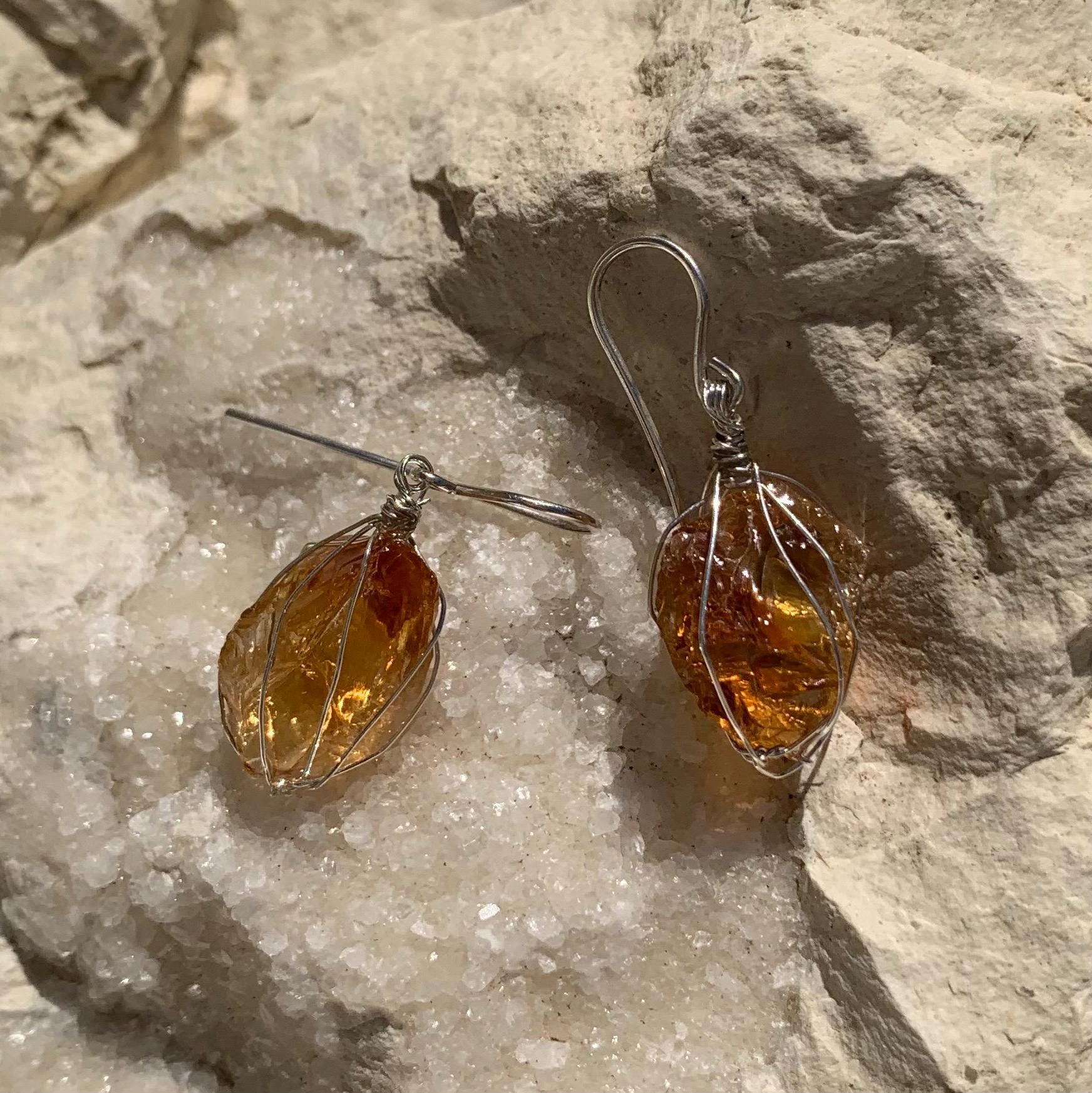 They are done in solid silver with rough citrines ( probably heated ) wrapped in silver wire.