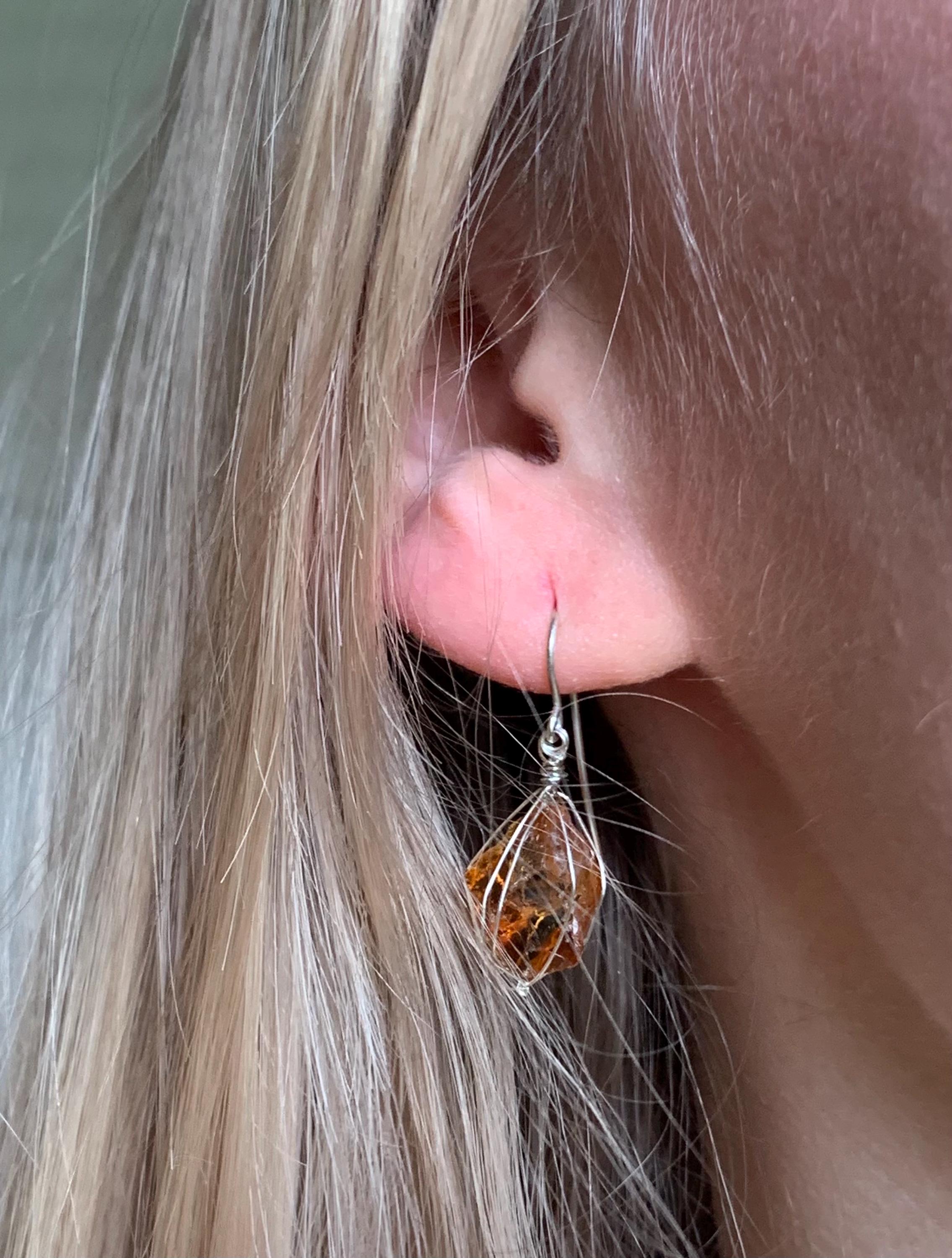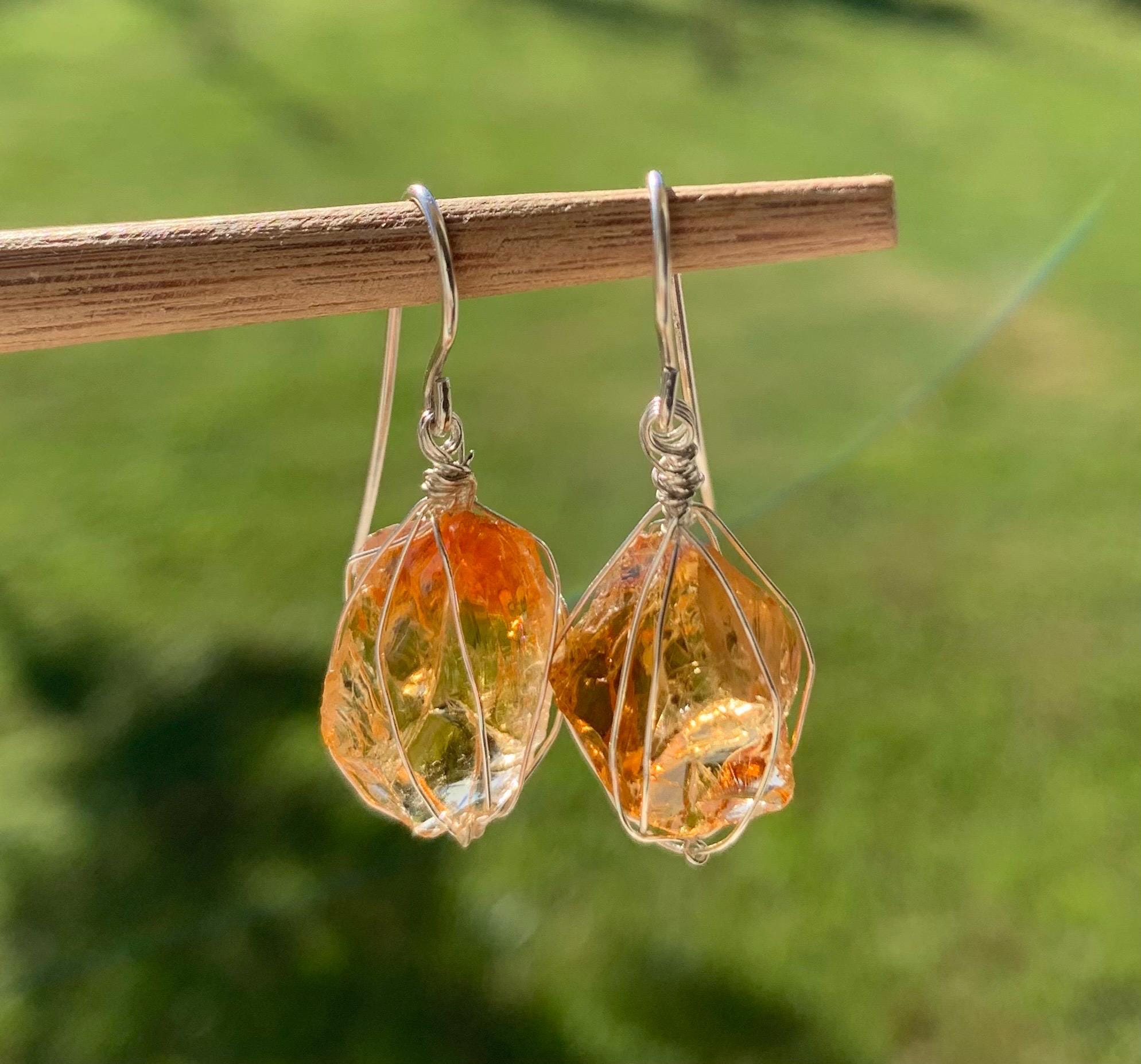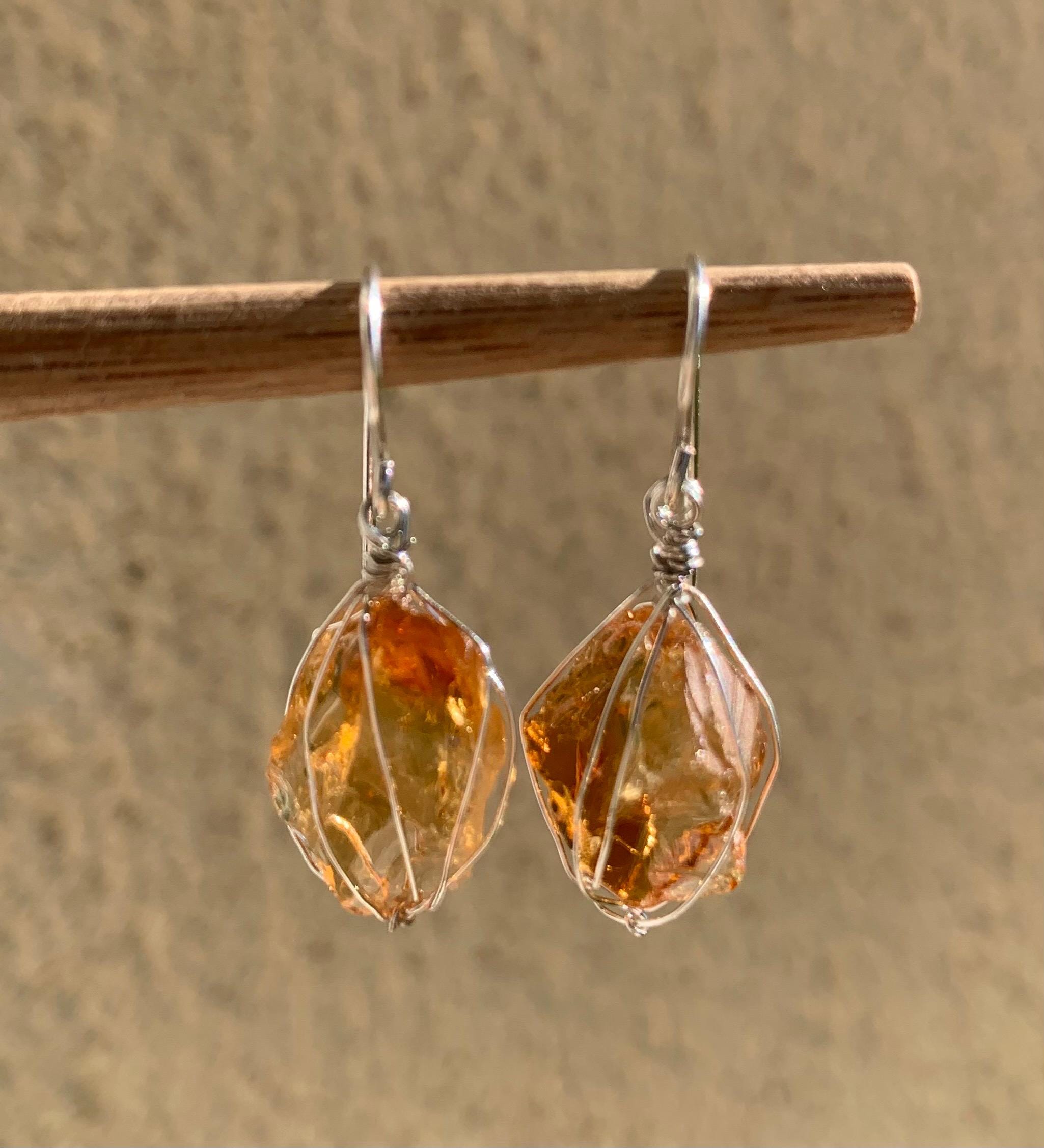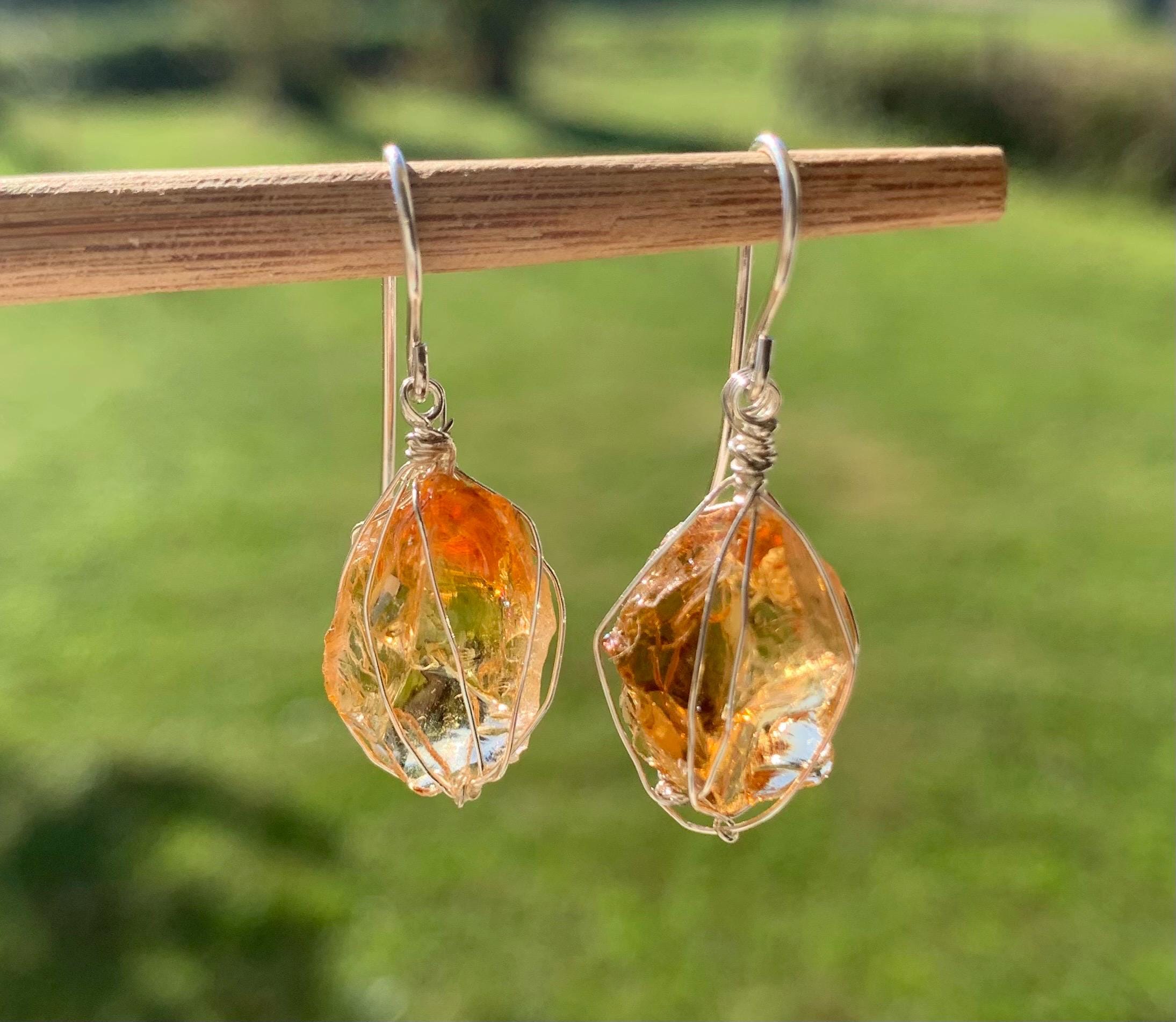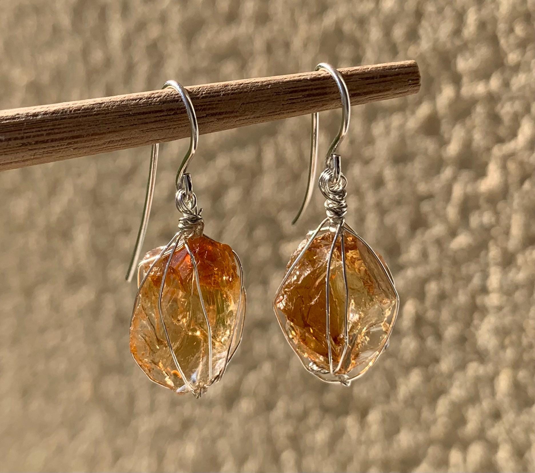 They are done in solid silver with rough citrines ( probably heated ) wrapped in silver wire.