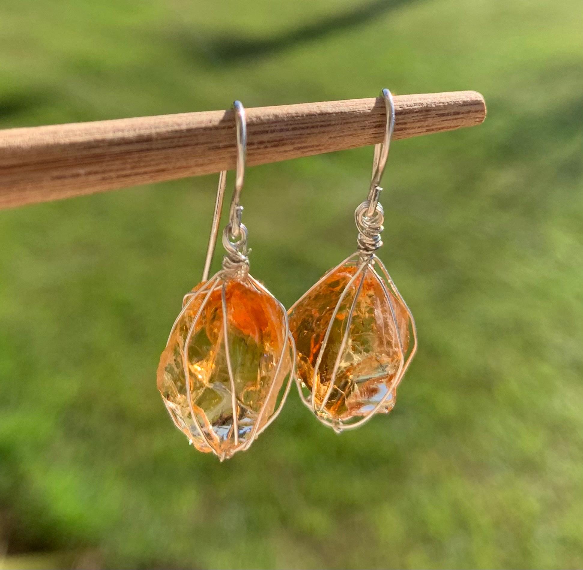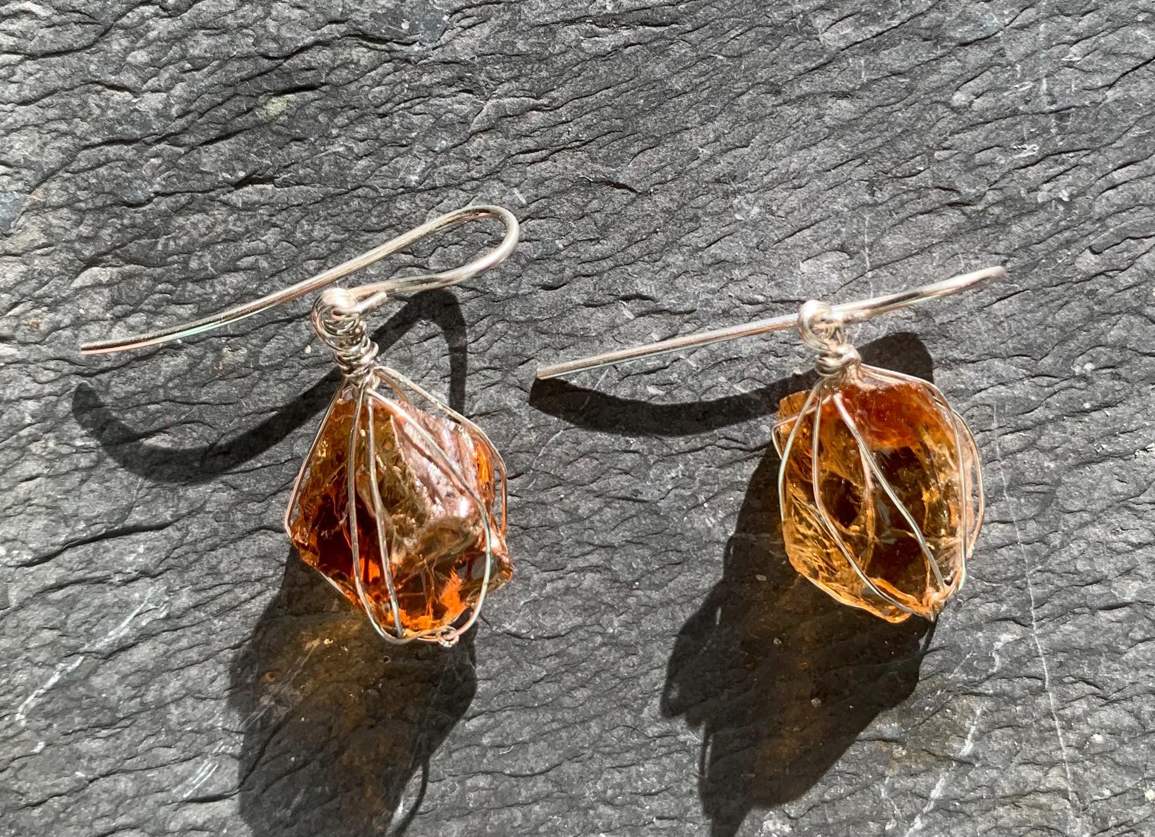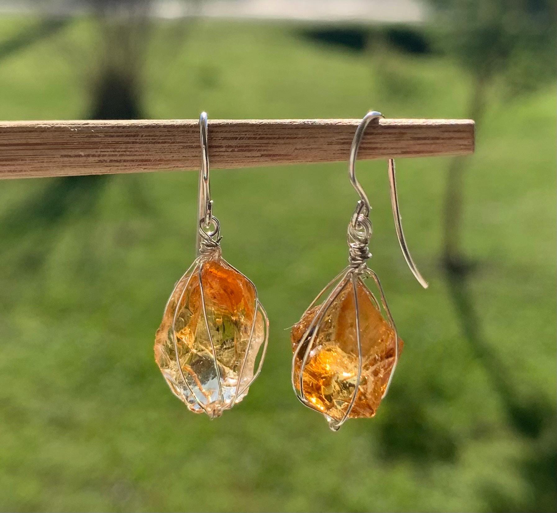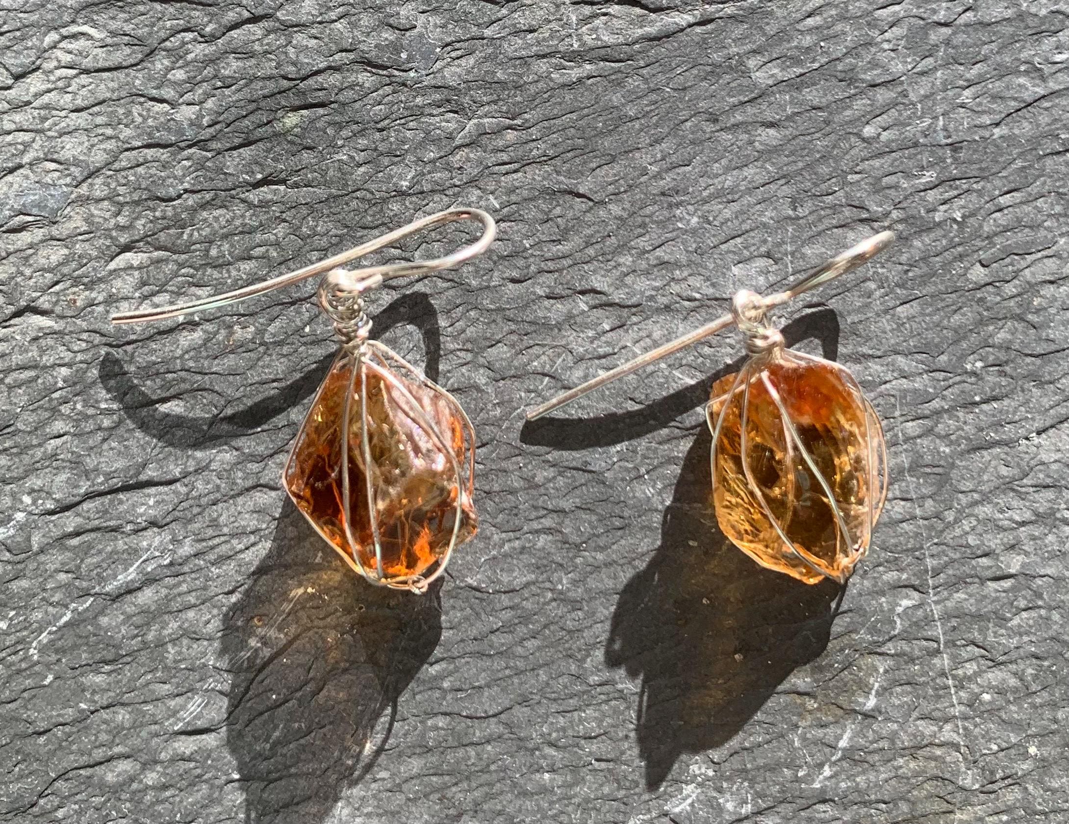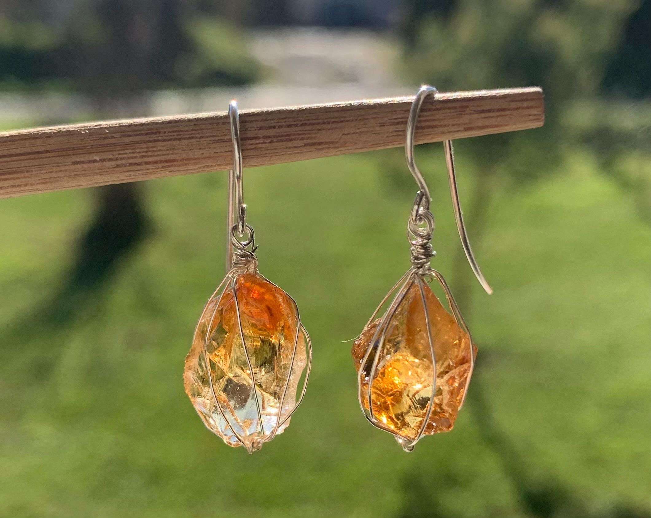 They are done in solid silver with rough citrines ( probably heated ) wrapped in silver wire.
