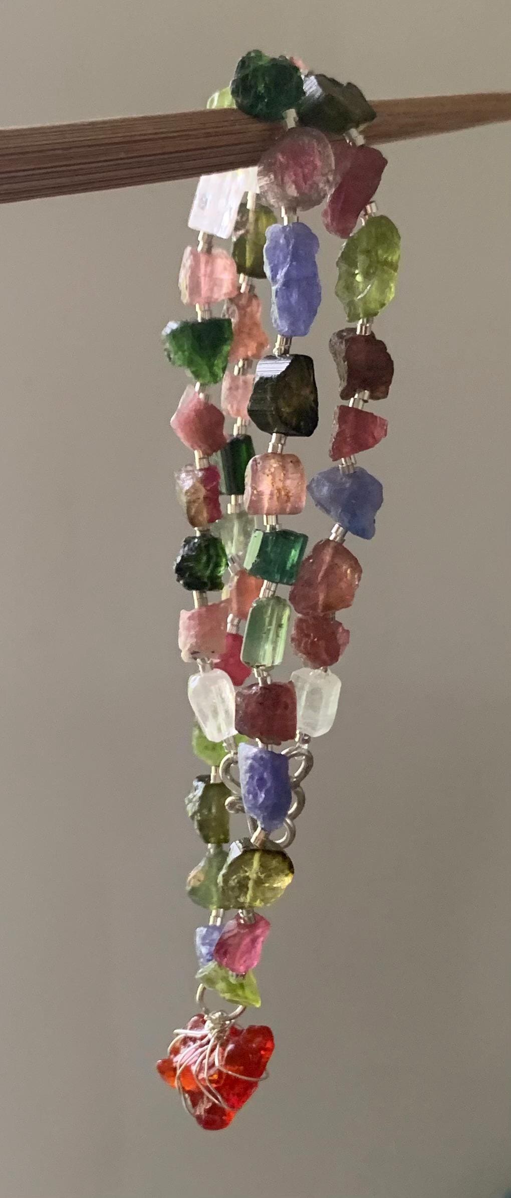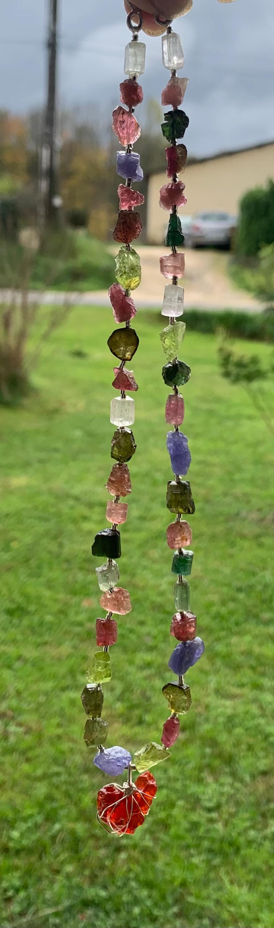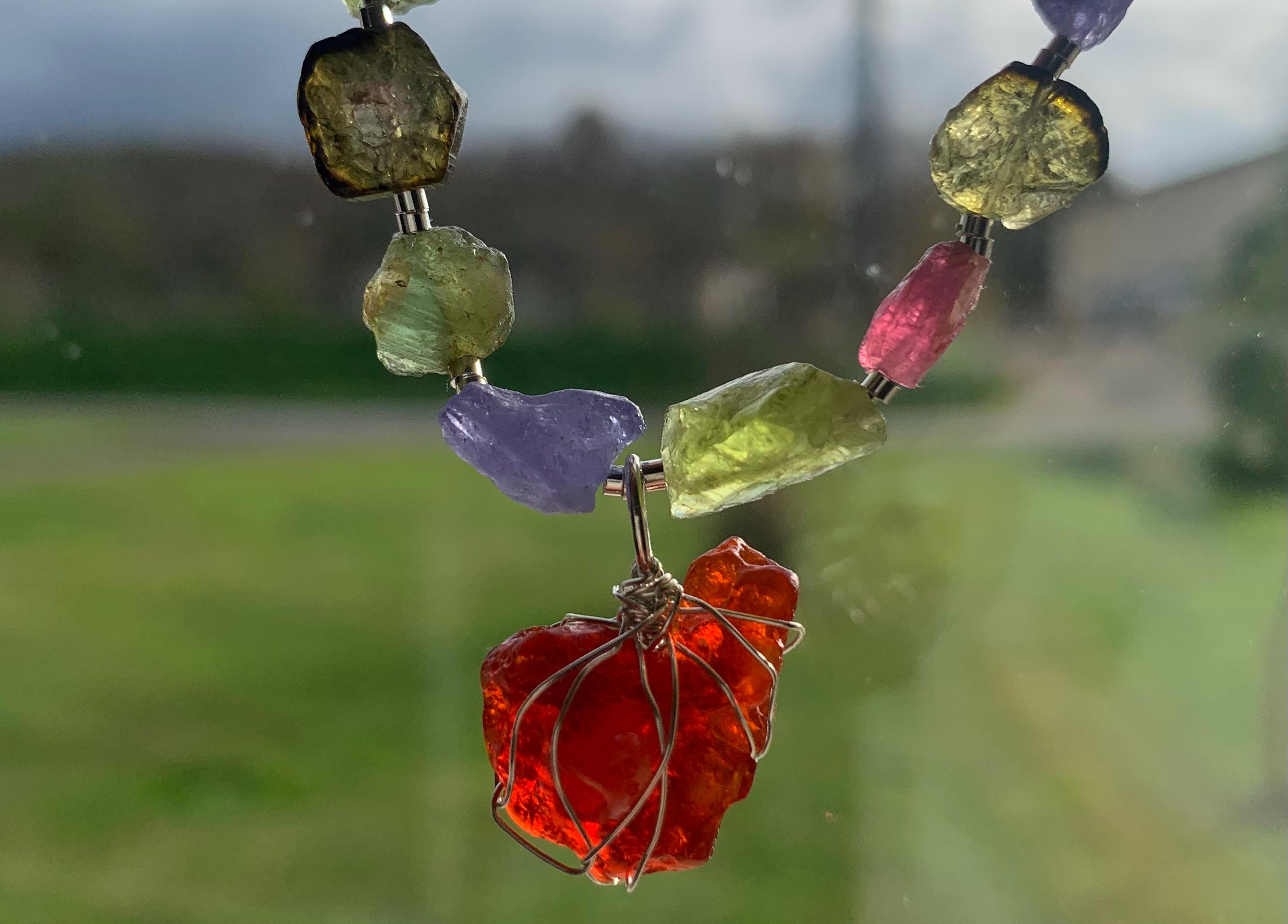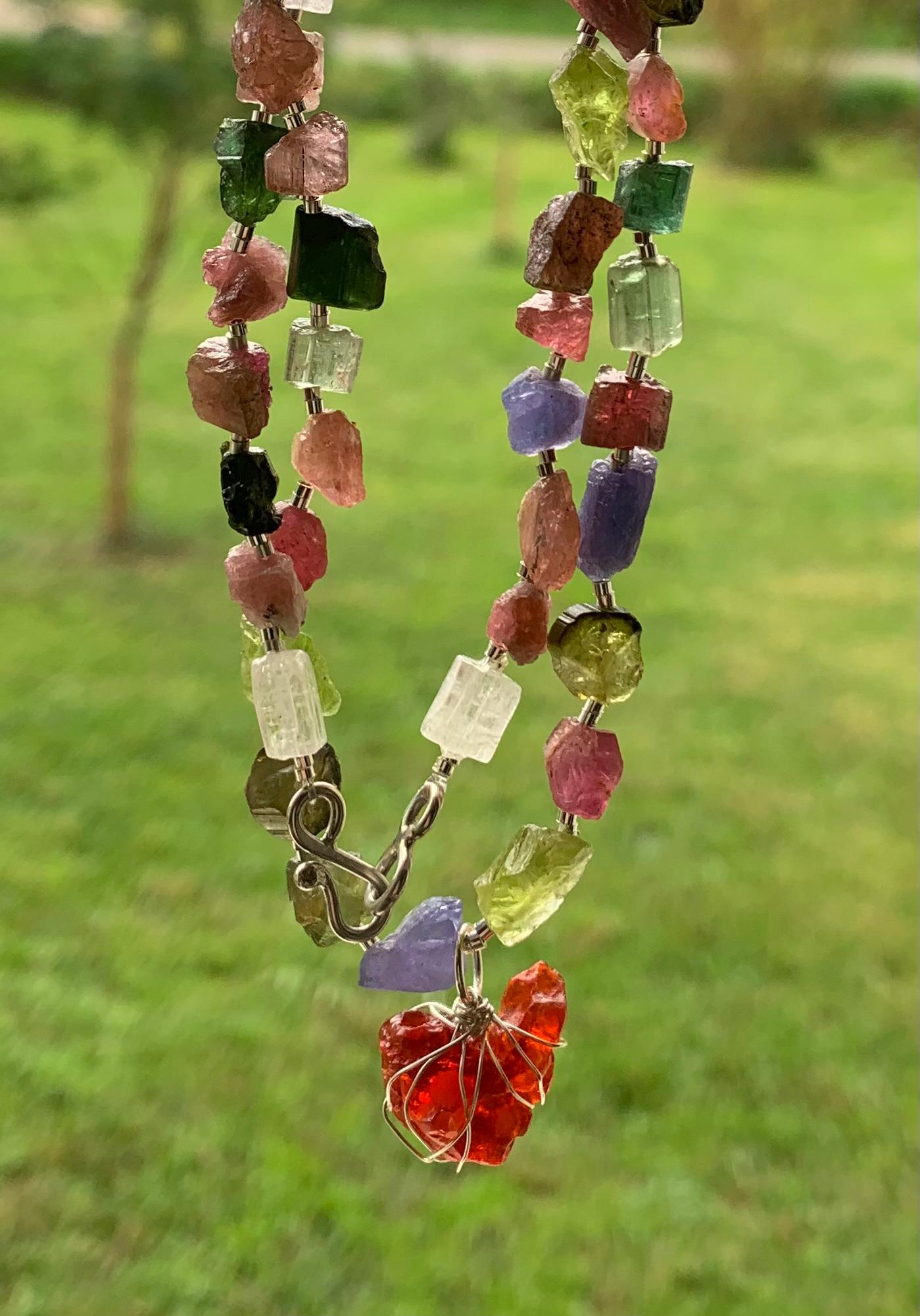 It's done with tanzanites, peridots and tourmalines in different sizes, forms and colours.