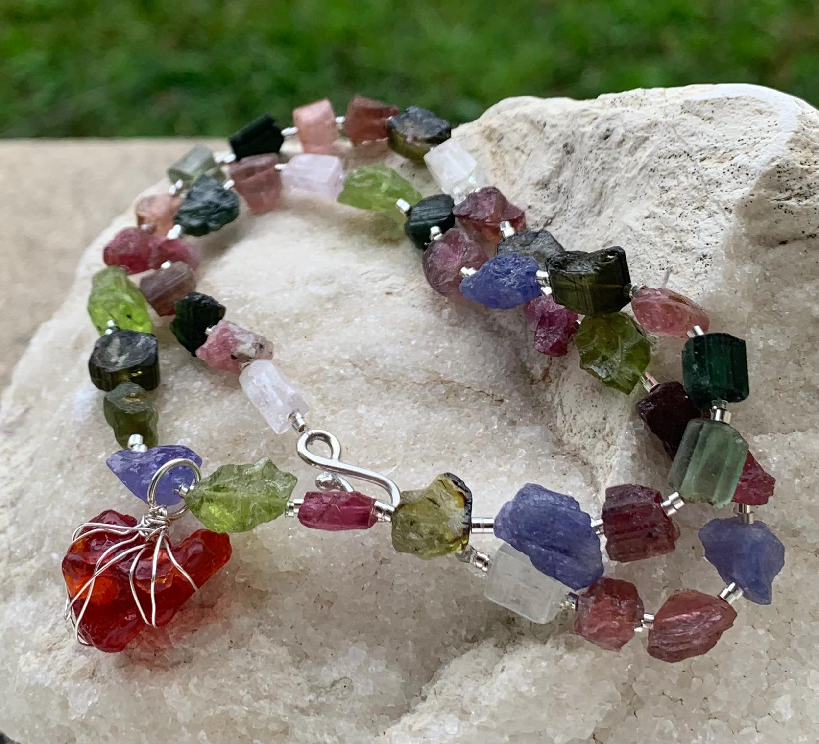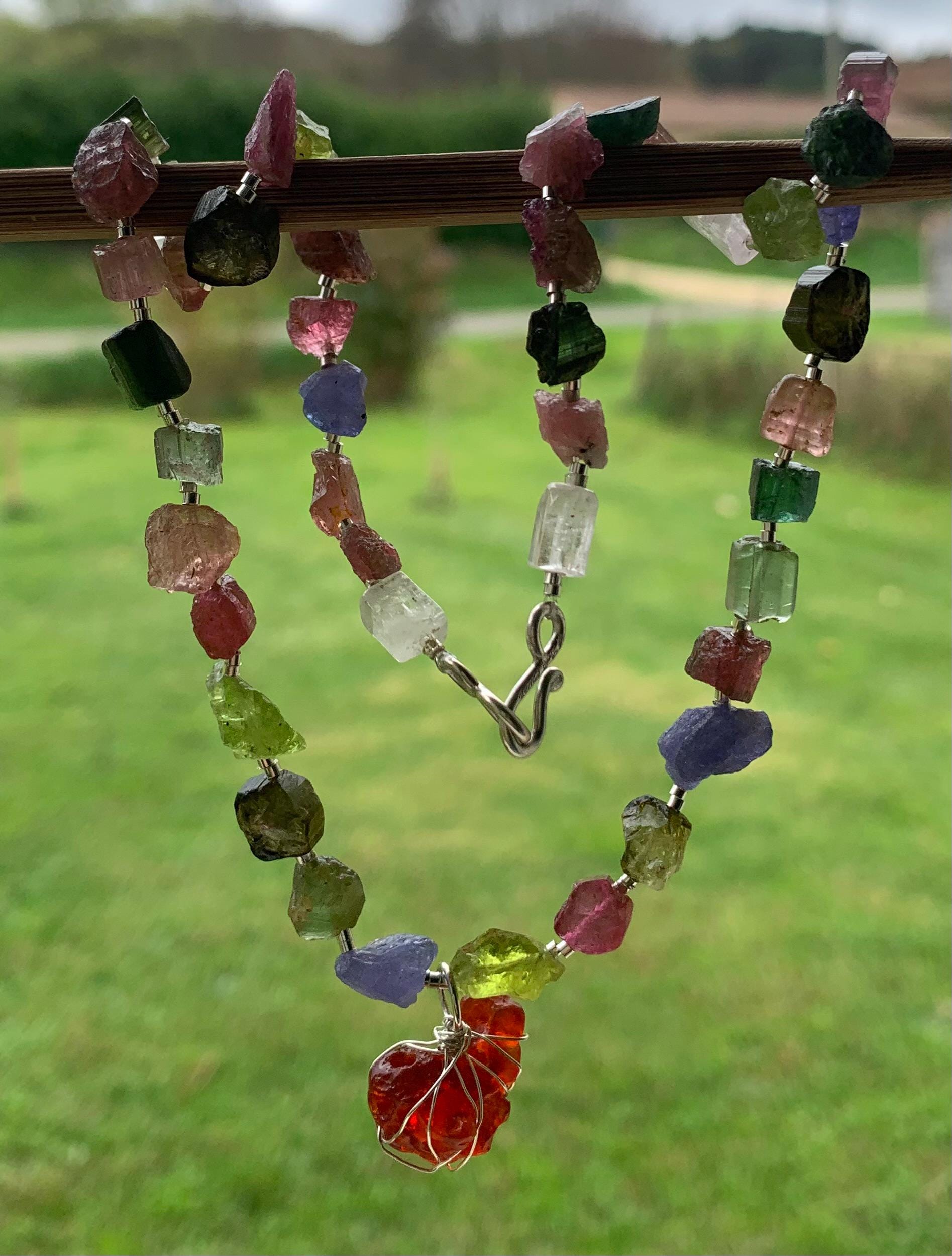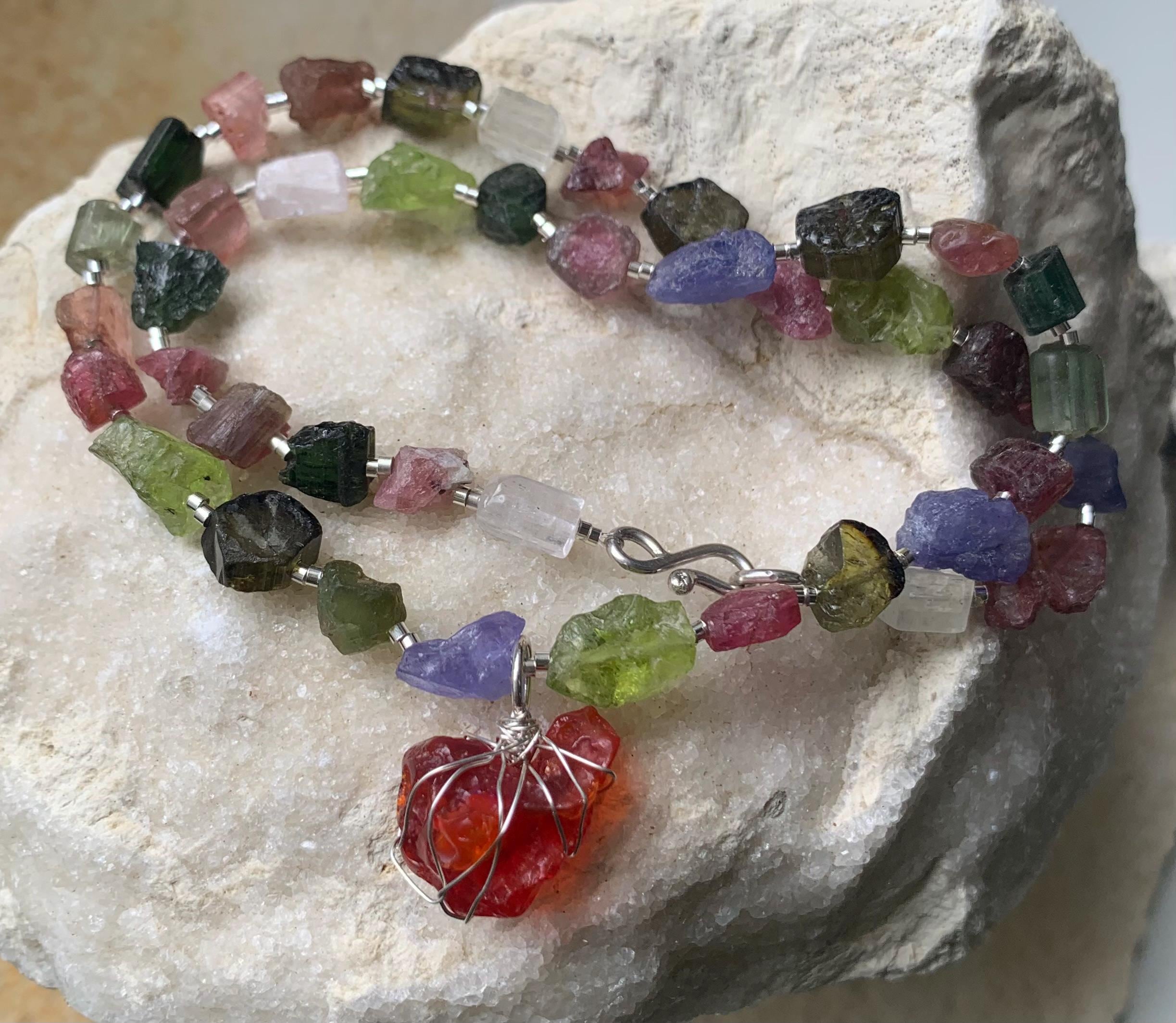 It's done with tanzanites, peridots and tourmalines in different sizes, forms and colours.