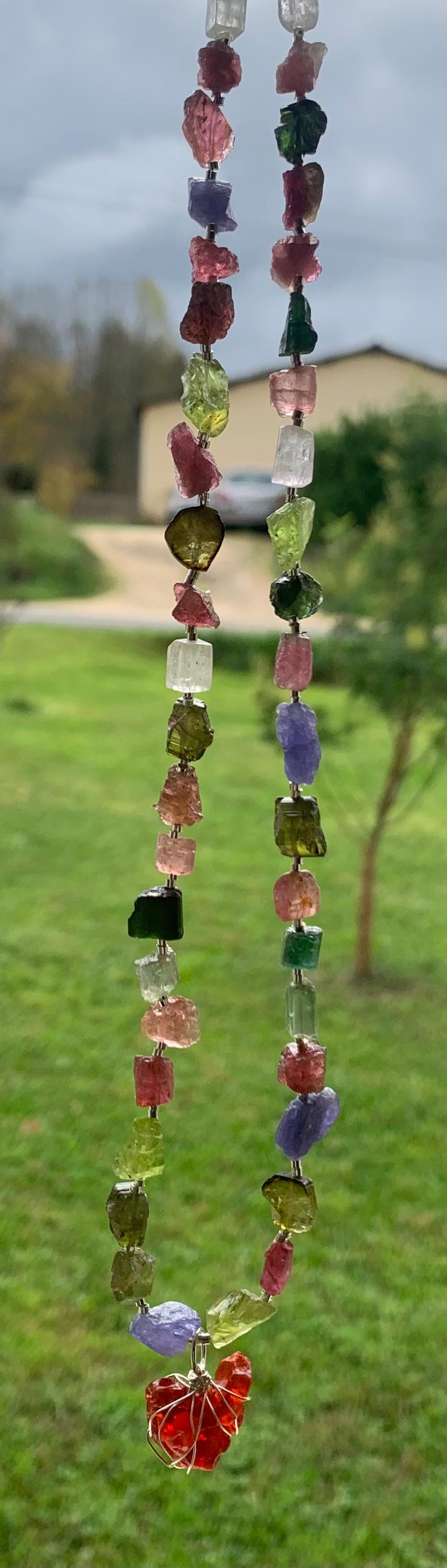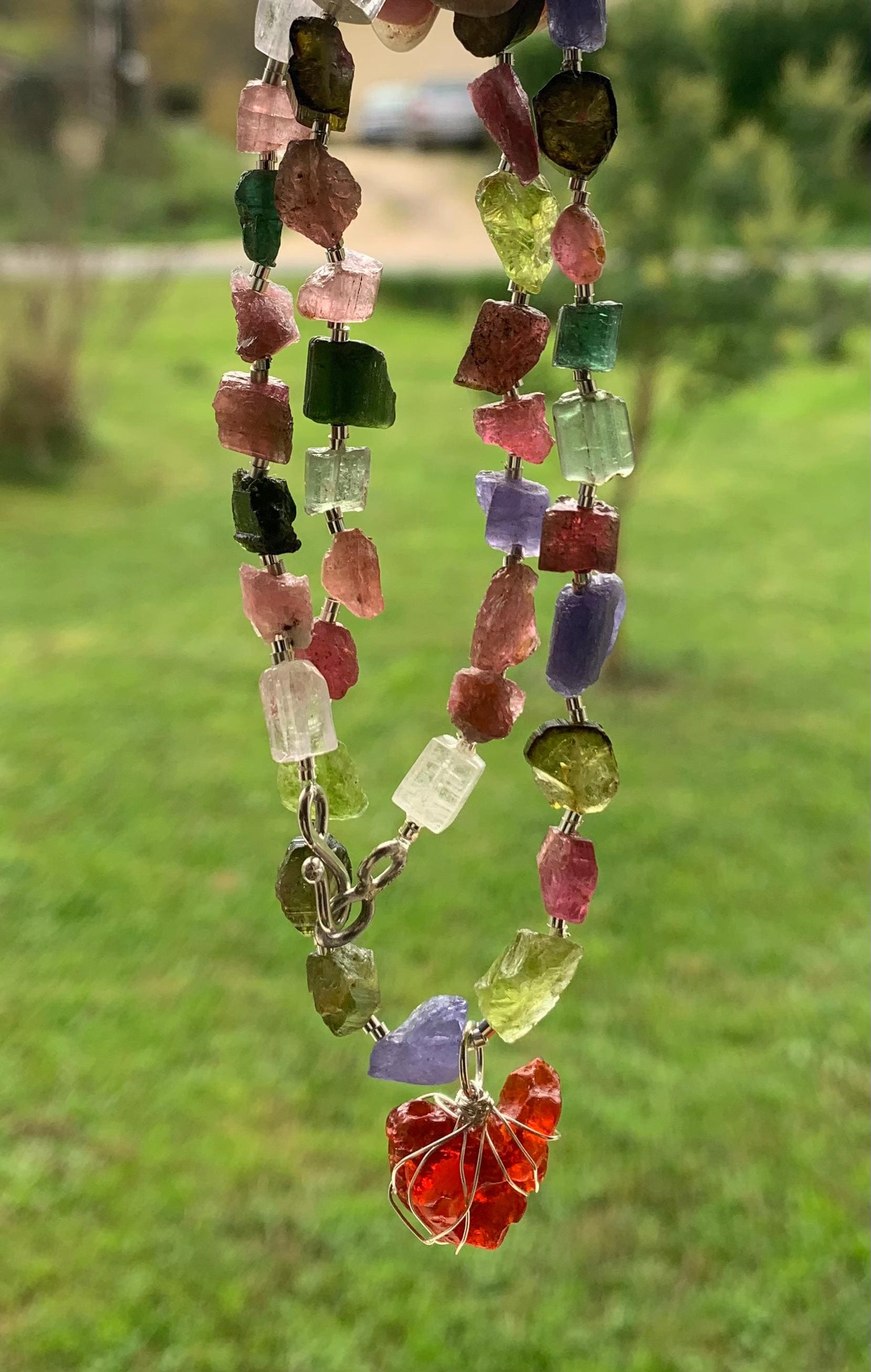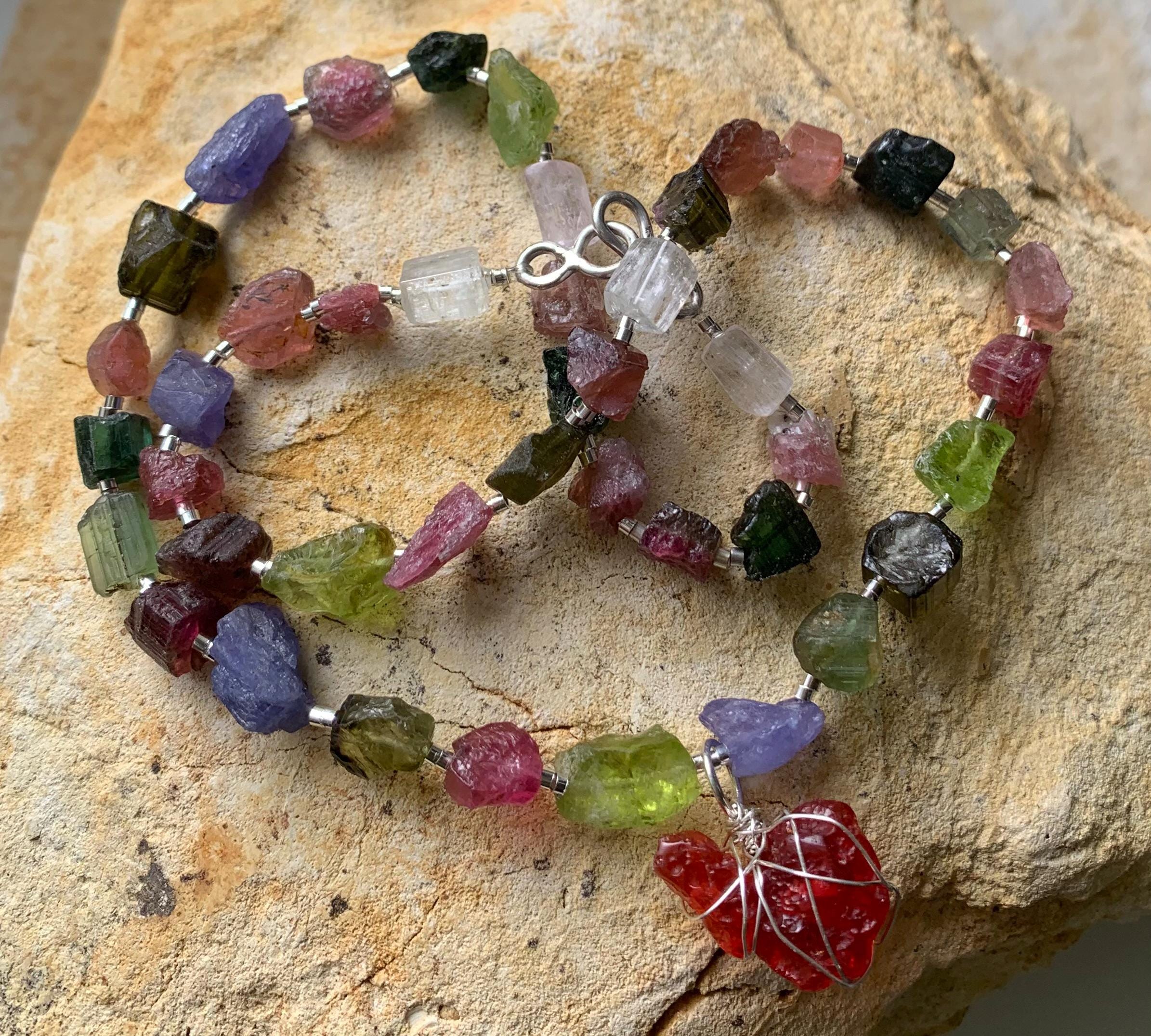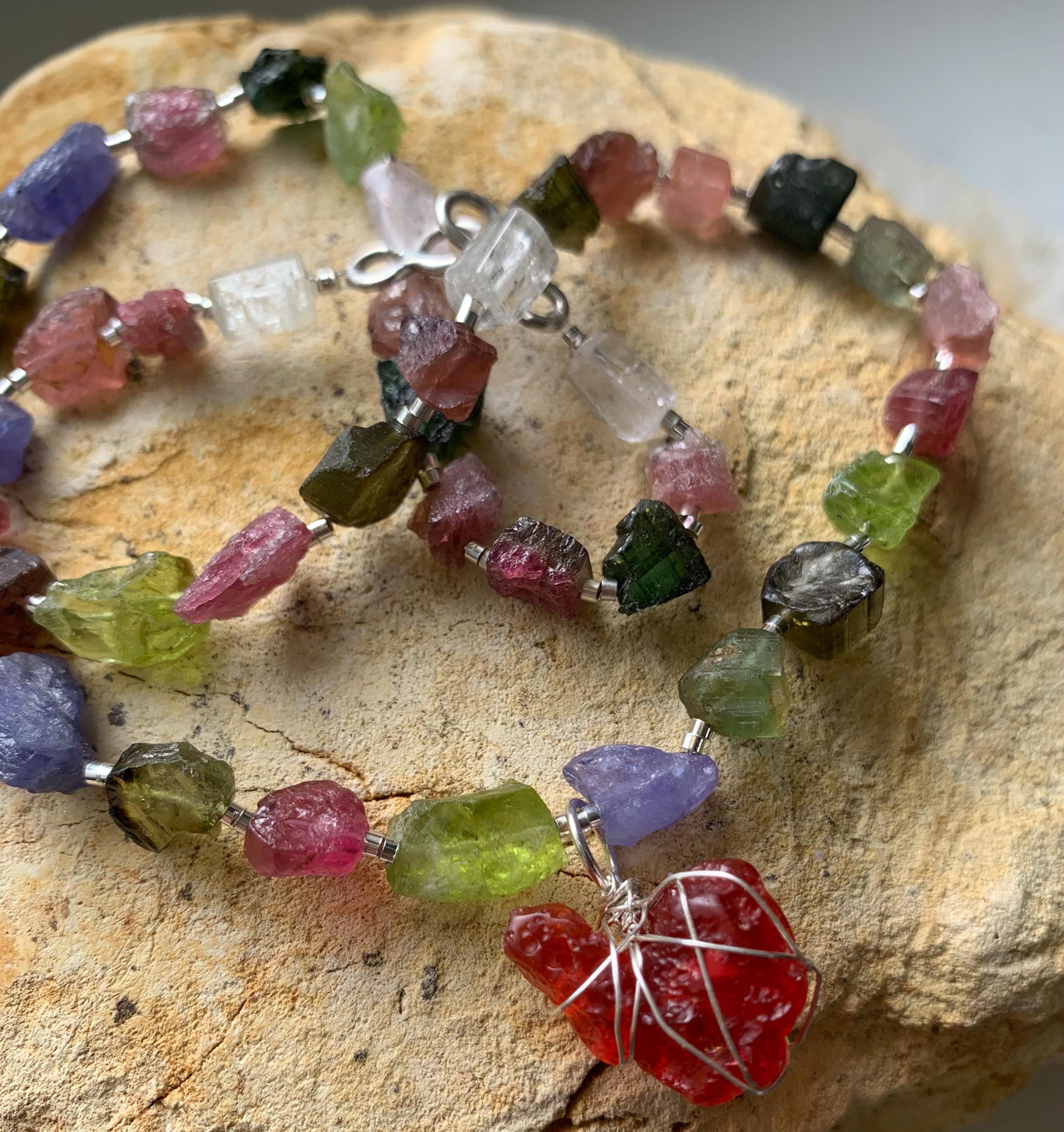 It's done with tanzanites, peridots and tourmalines in different sizes, forms and colours.
