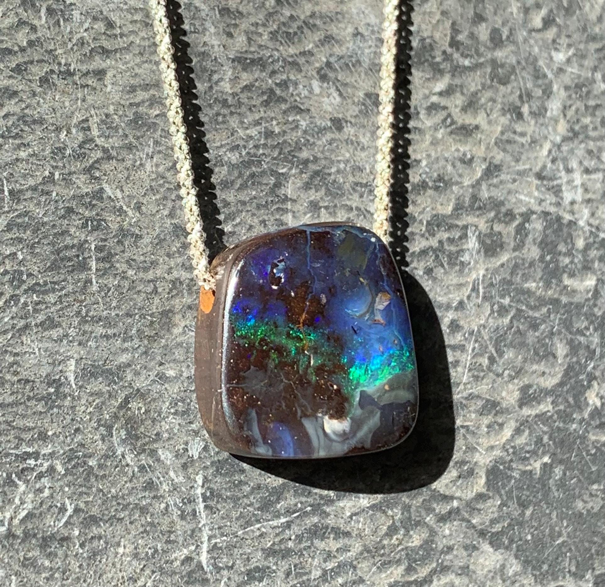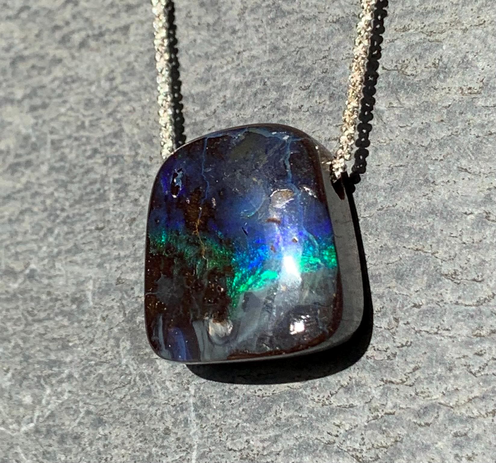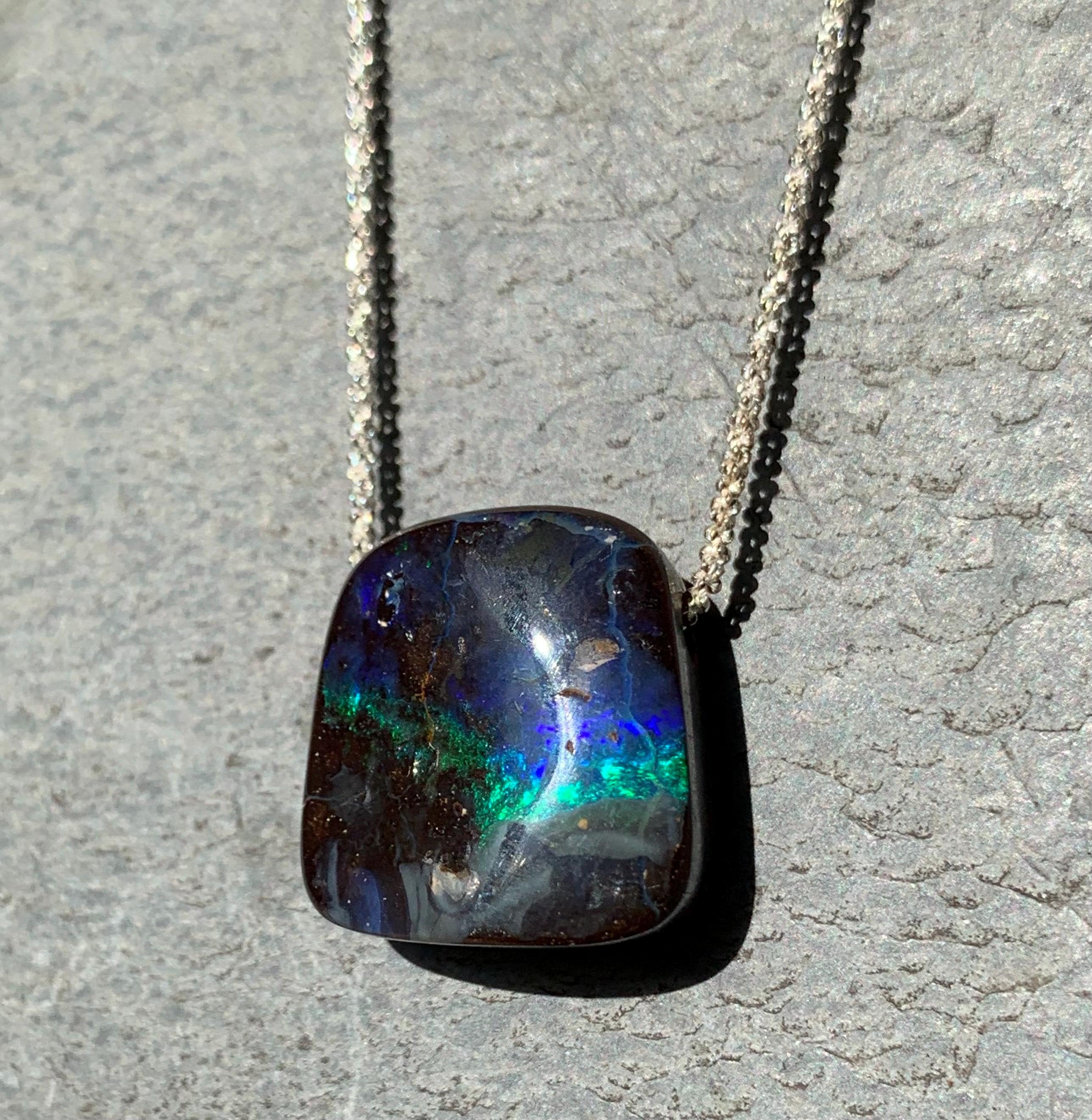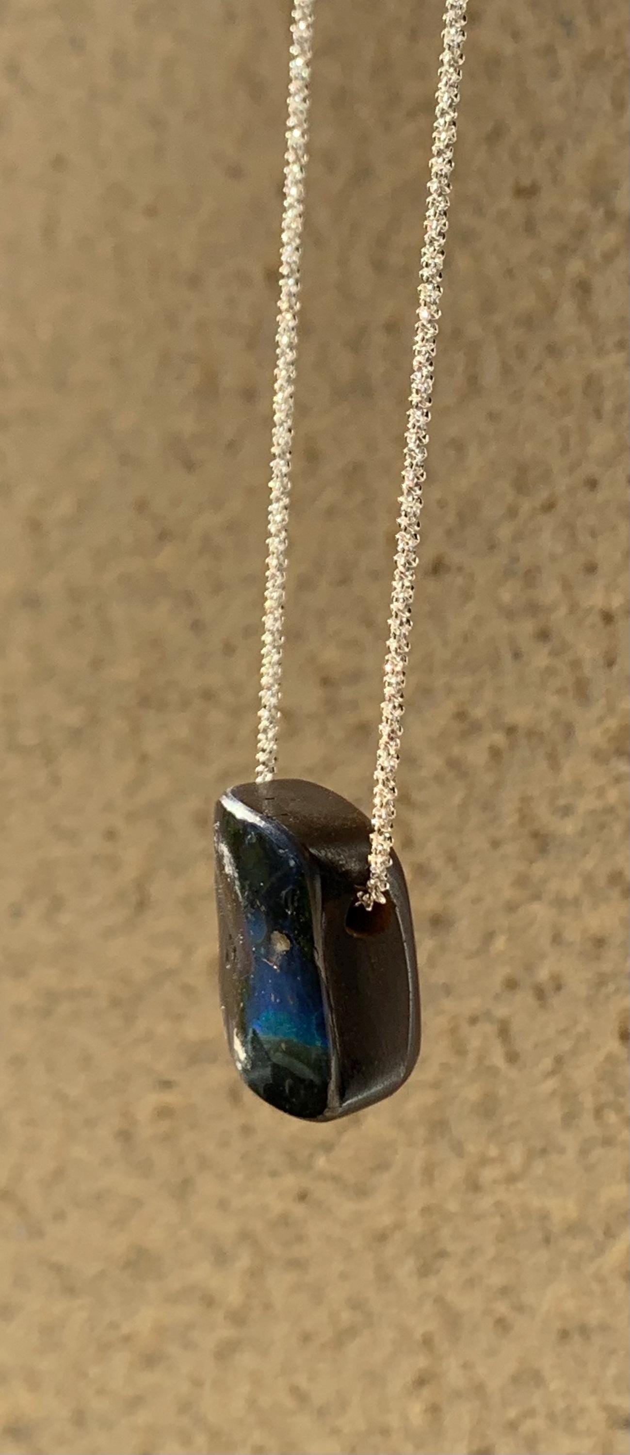 It is done with a silver chain and 1 australian boulder opal.
