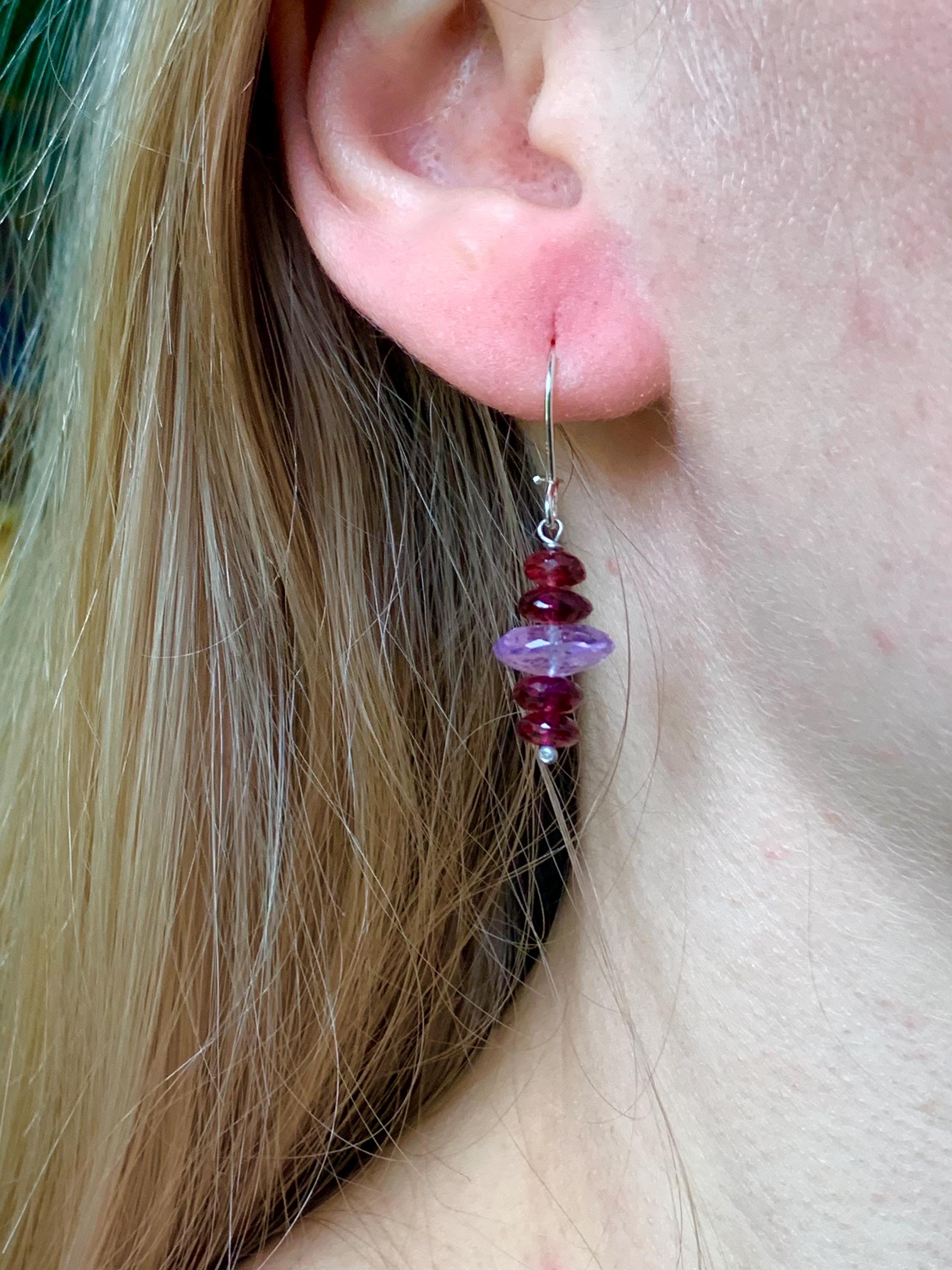 The metal is solid 925 silver with 2 x 4 garnets and 2 amethysts