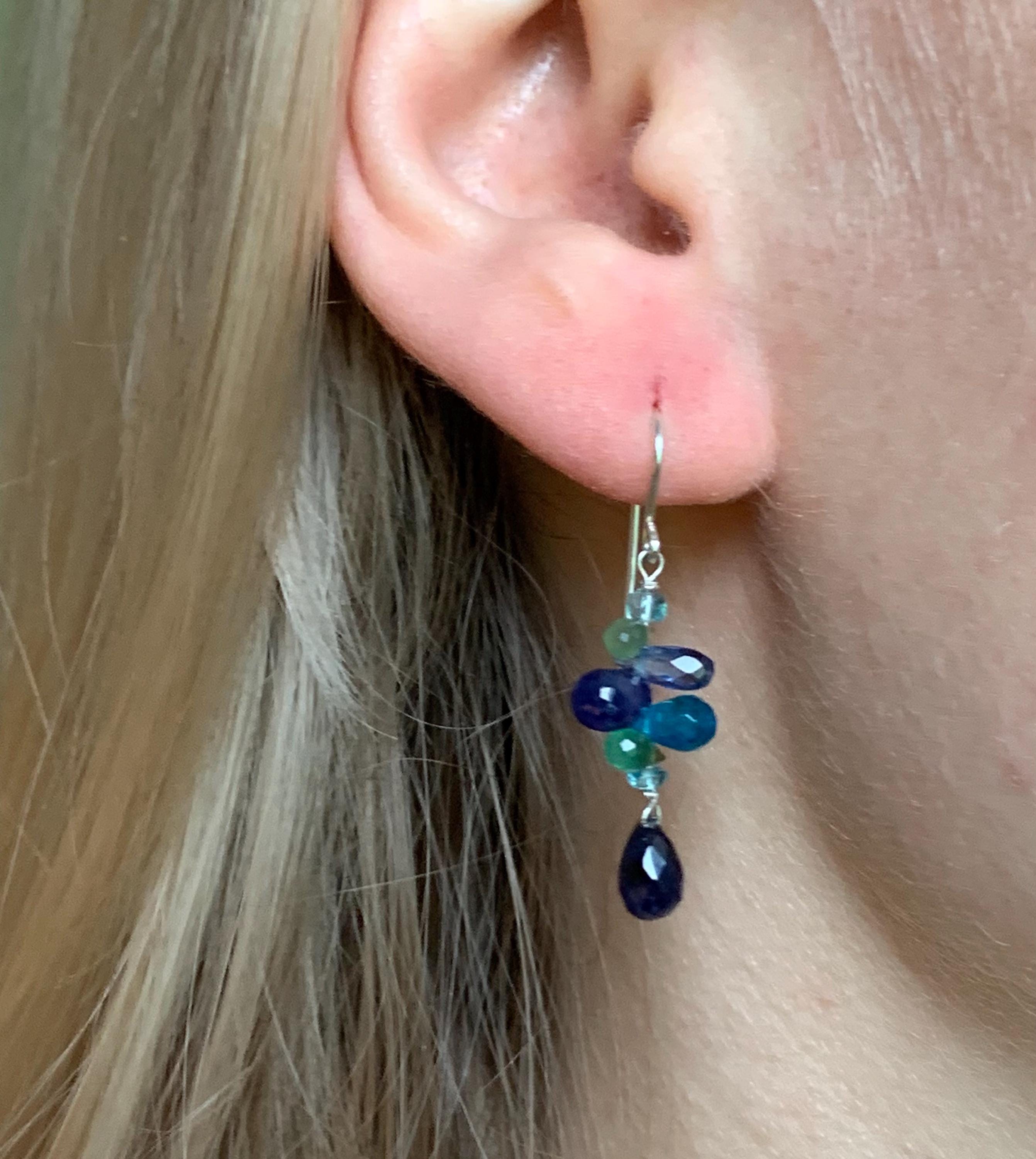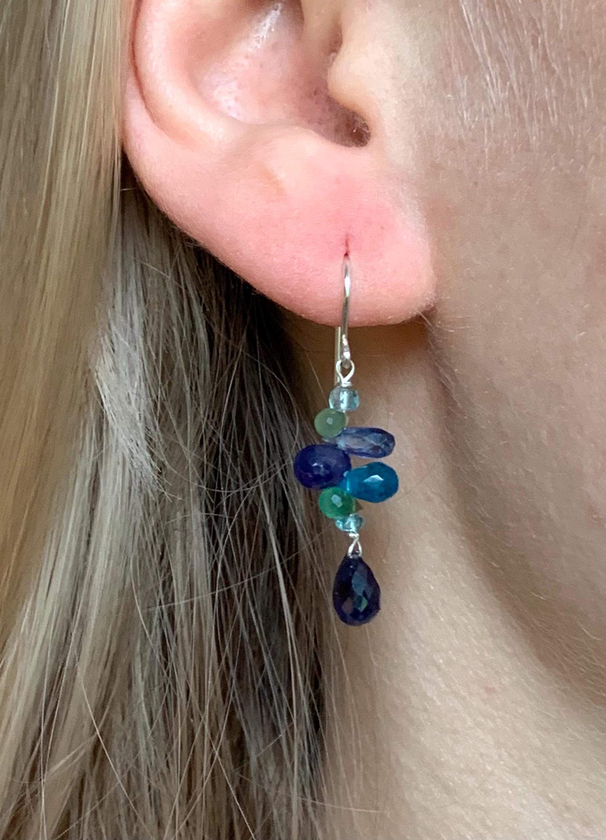 The metal is solid 925 silver with blue sapphires, aventurines, aquamarines, apatites and cyanites