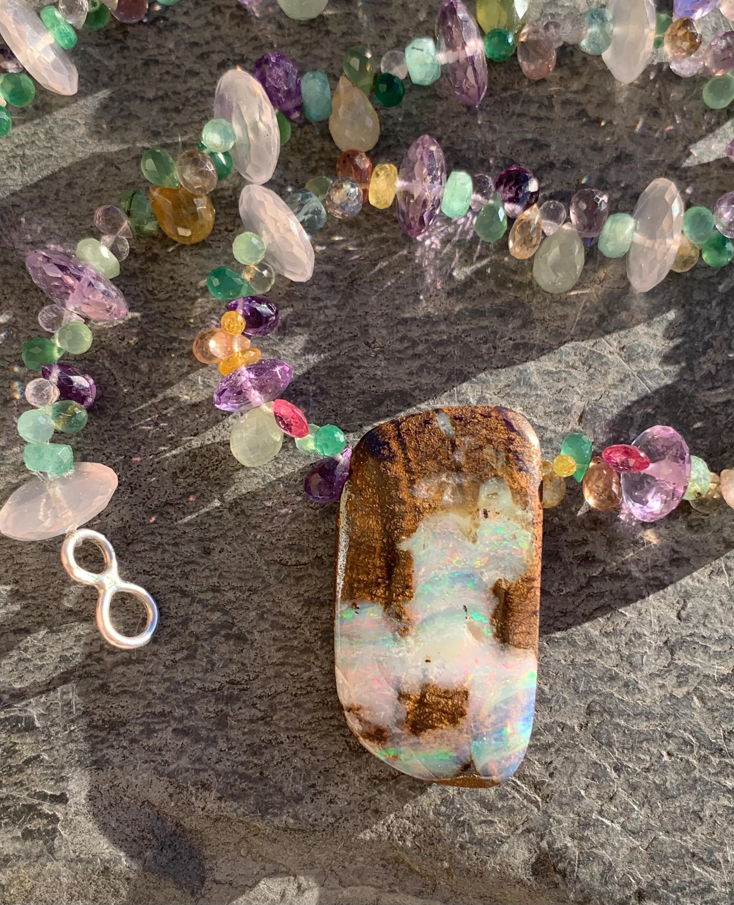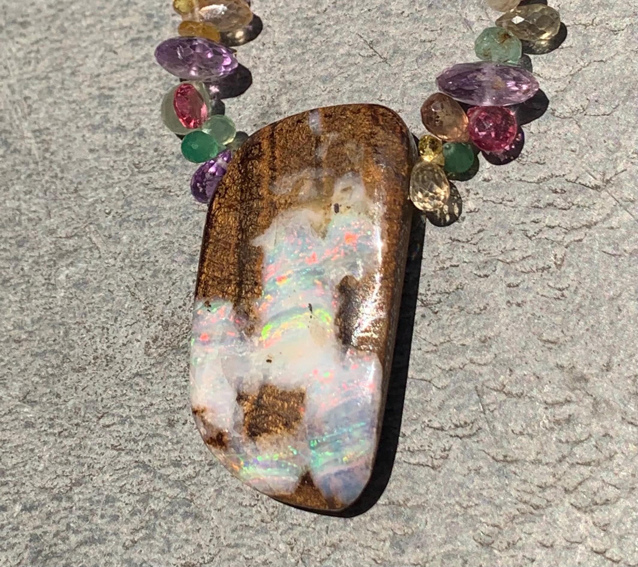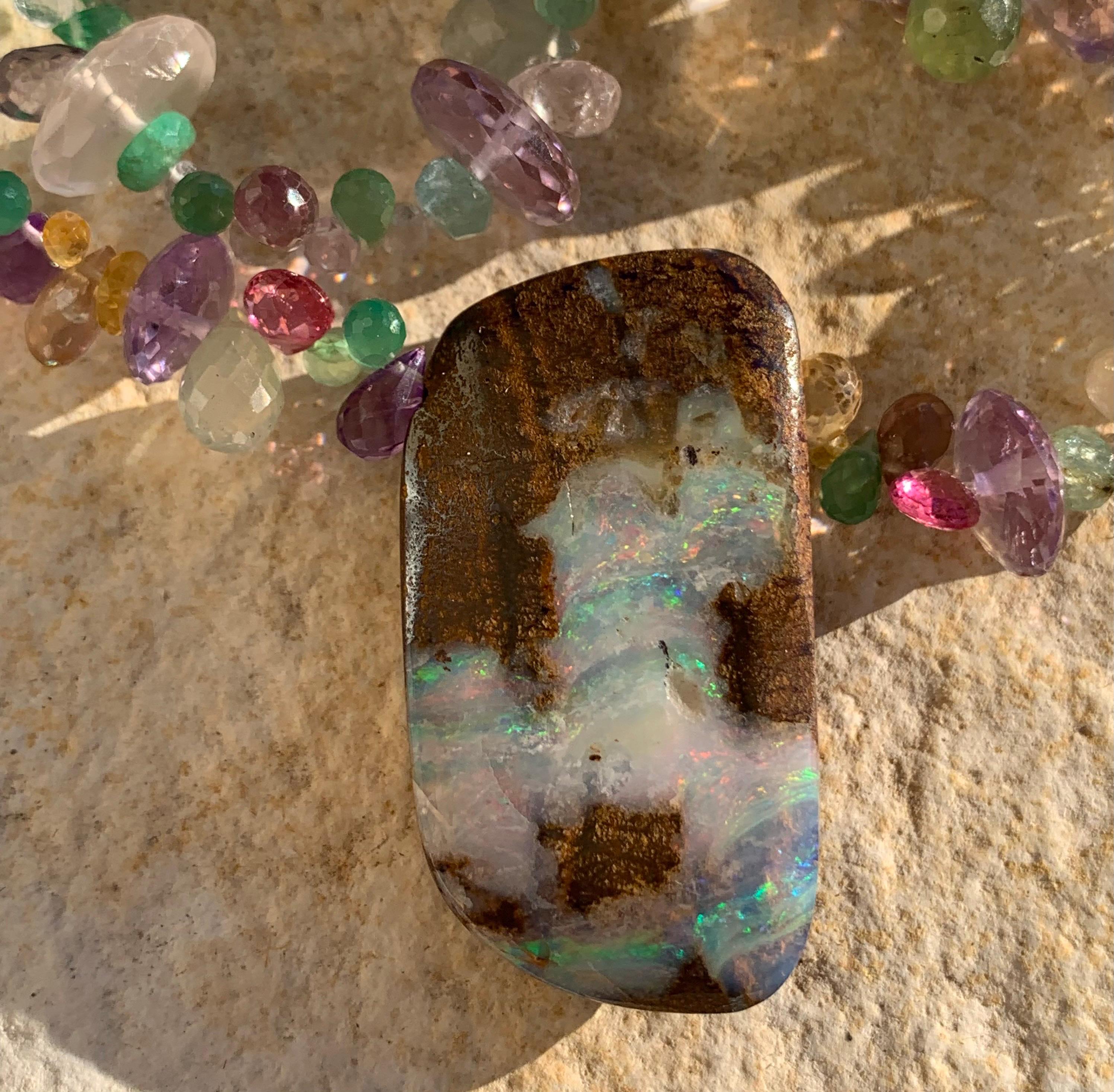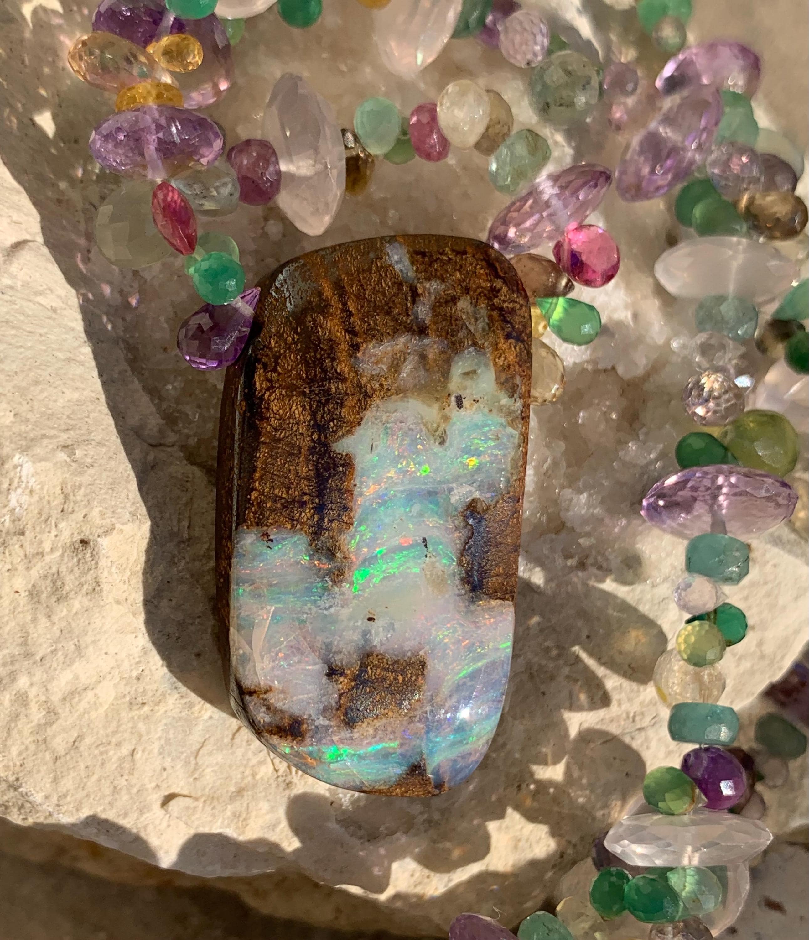 Poids et taille de l'opale boulder d'Australie: 56,2 ct, 3,72 cm x 2,06 cm