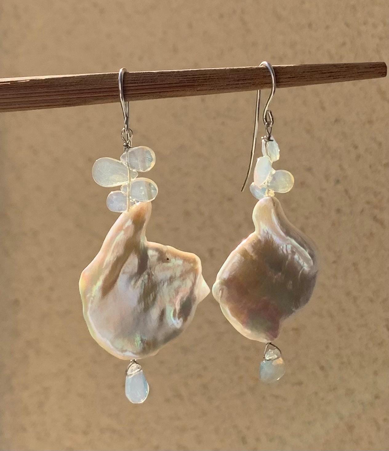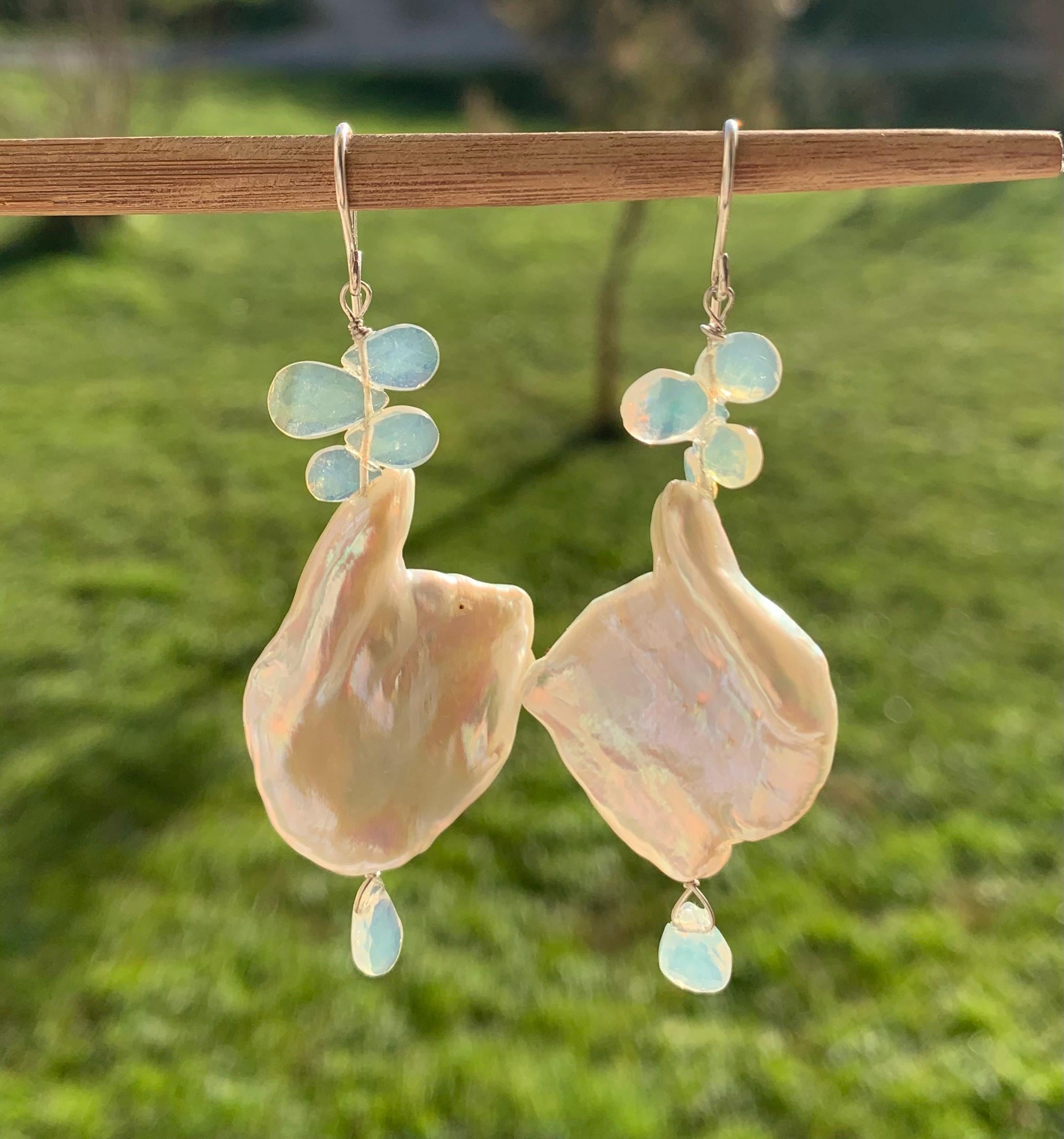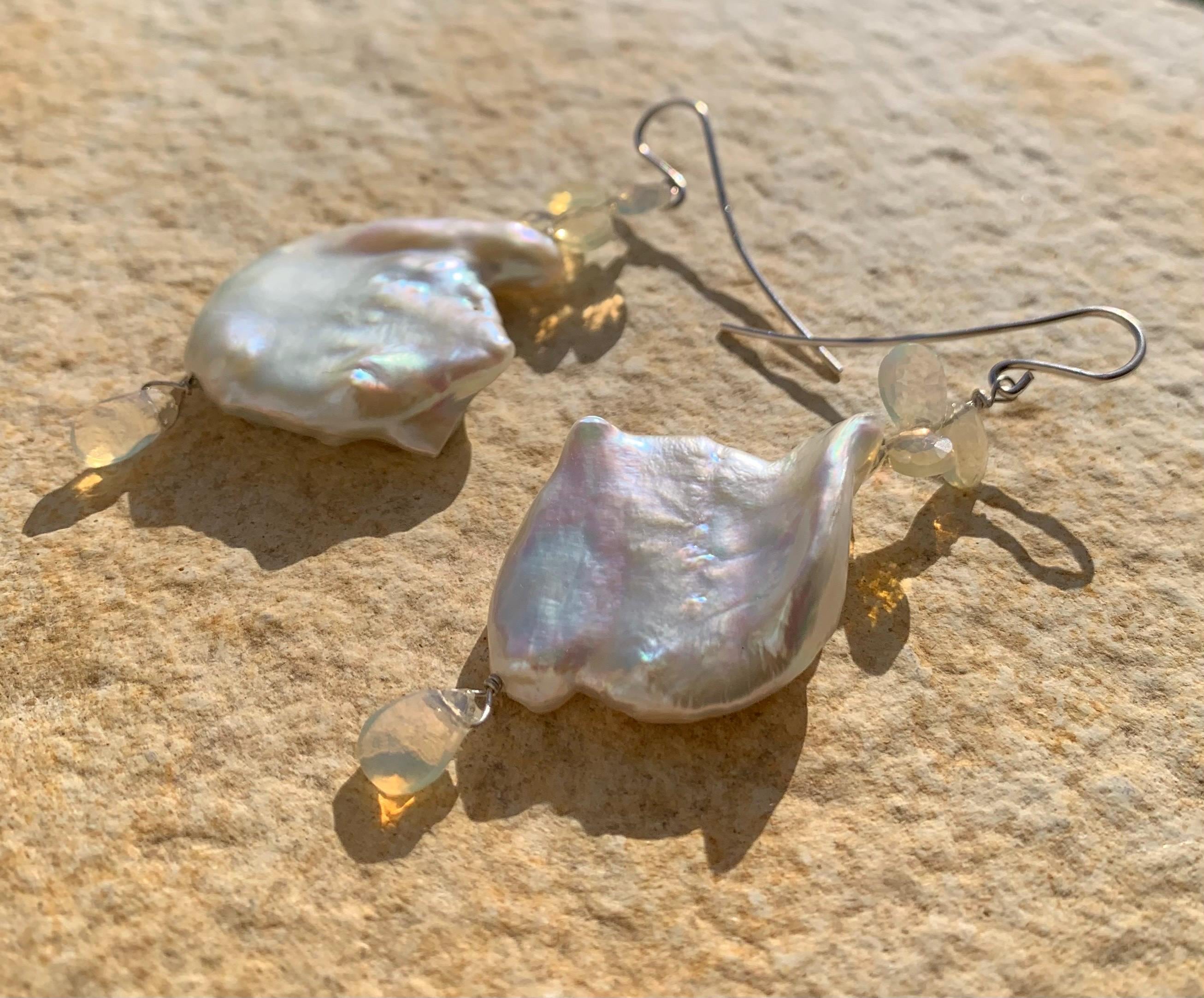 They are done in 925 silver with 2 x 5 ethiopian opals and 2 white baroque, keishi, freshwaterpearls.