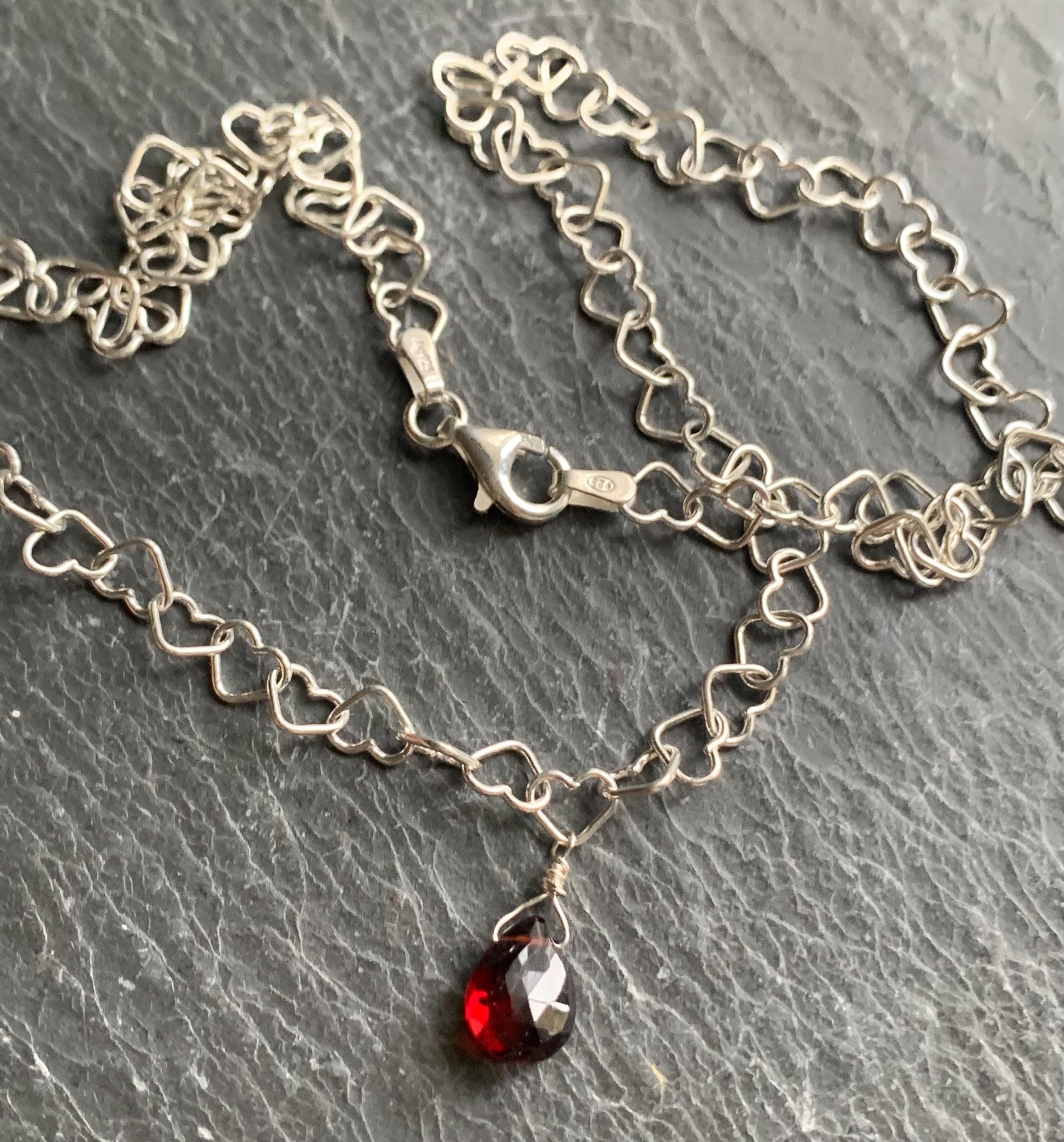 The pendant is included in a silver chain with little hearts.