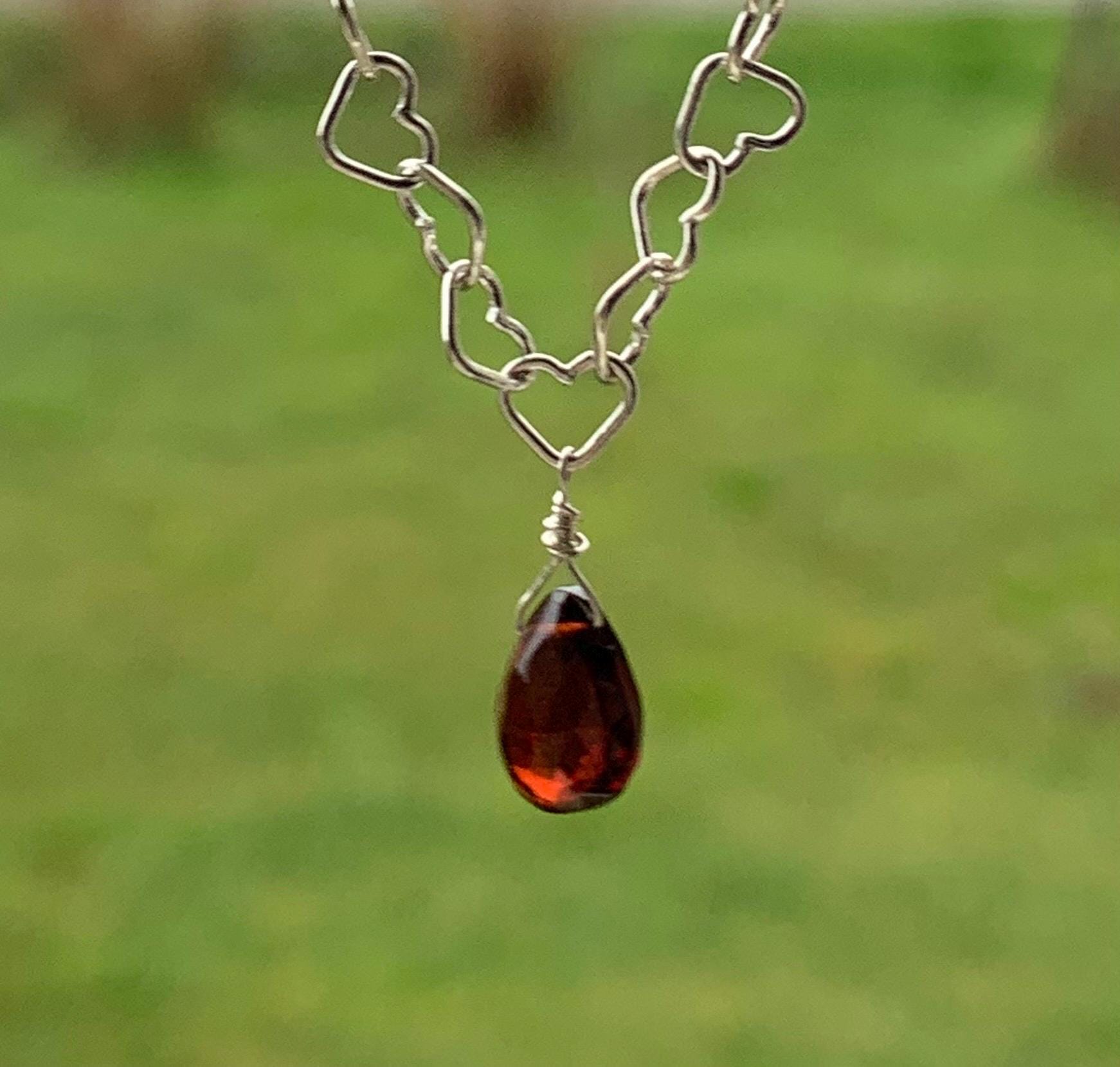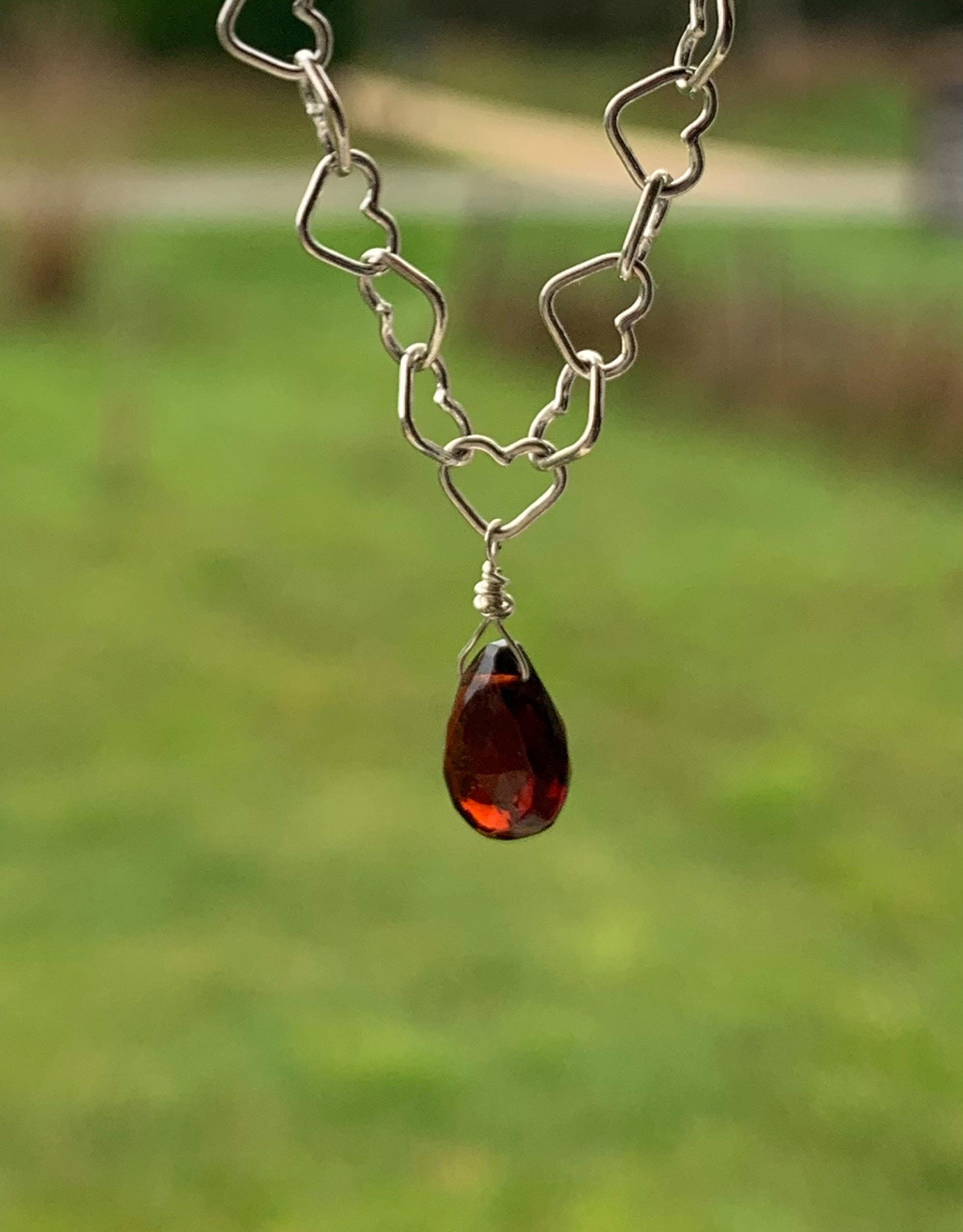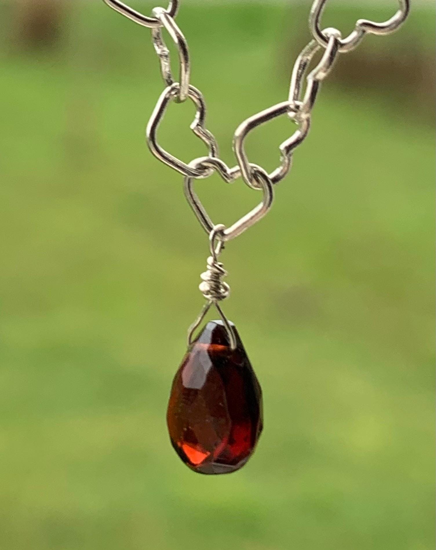 It is done in silver with a garnet briolette of 7,7 mm x 6,3 mm.