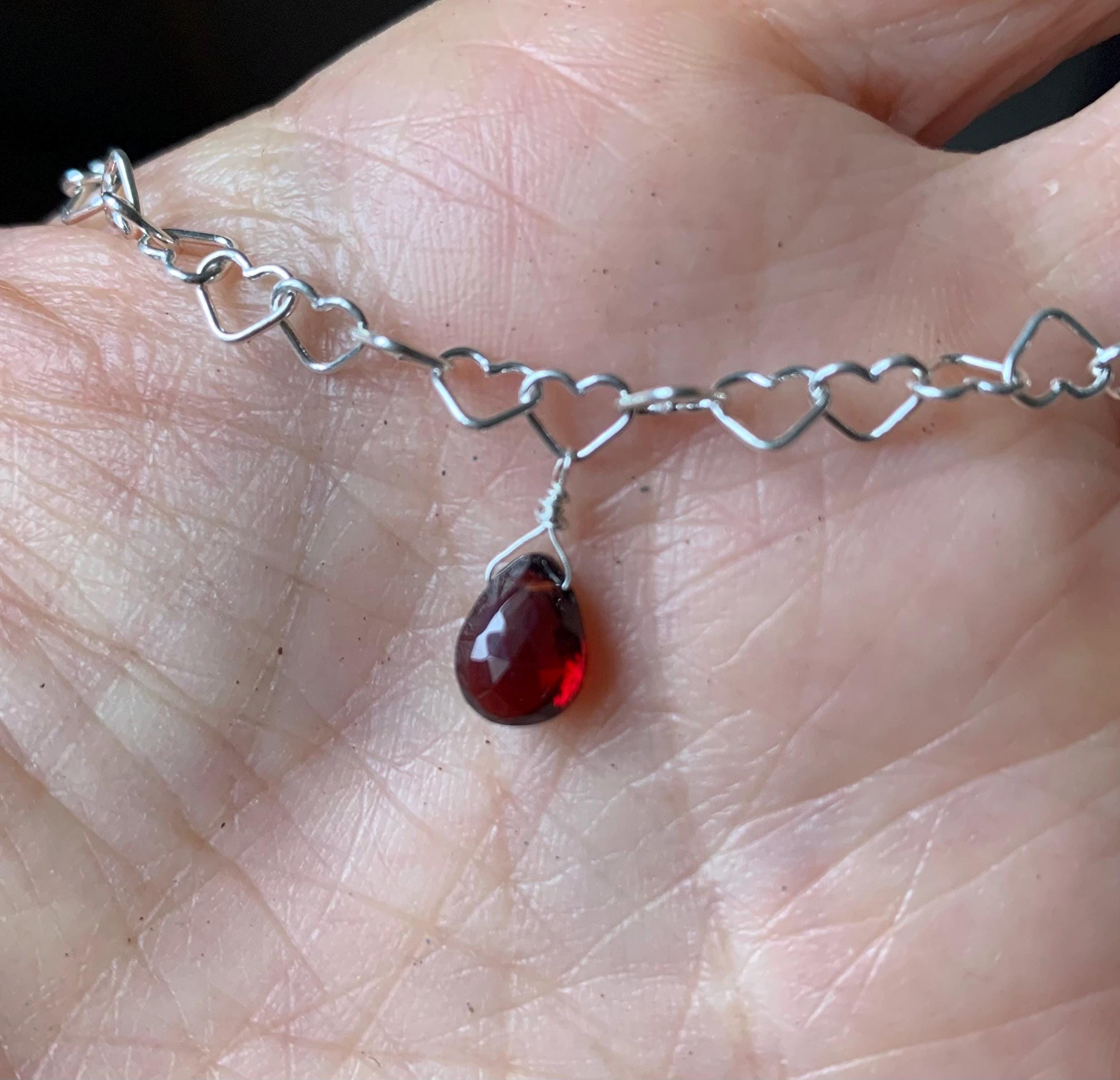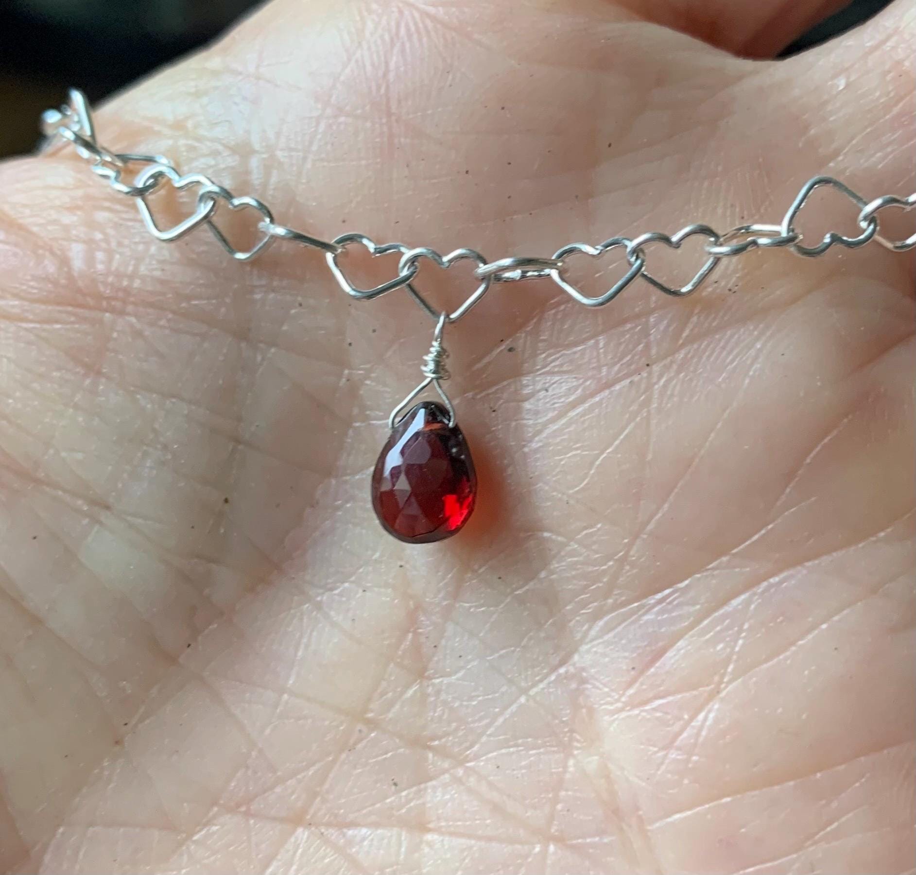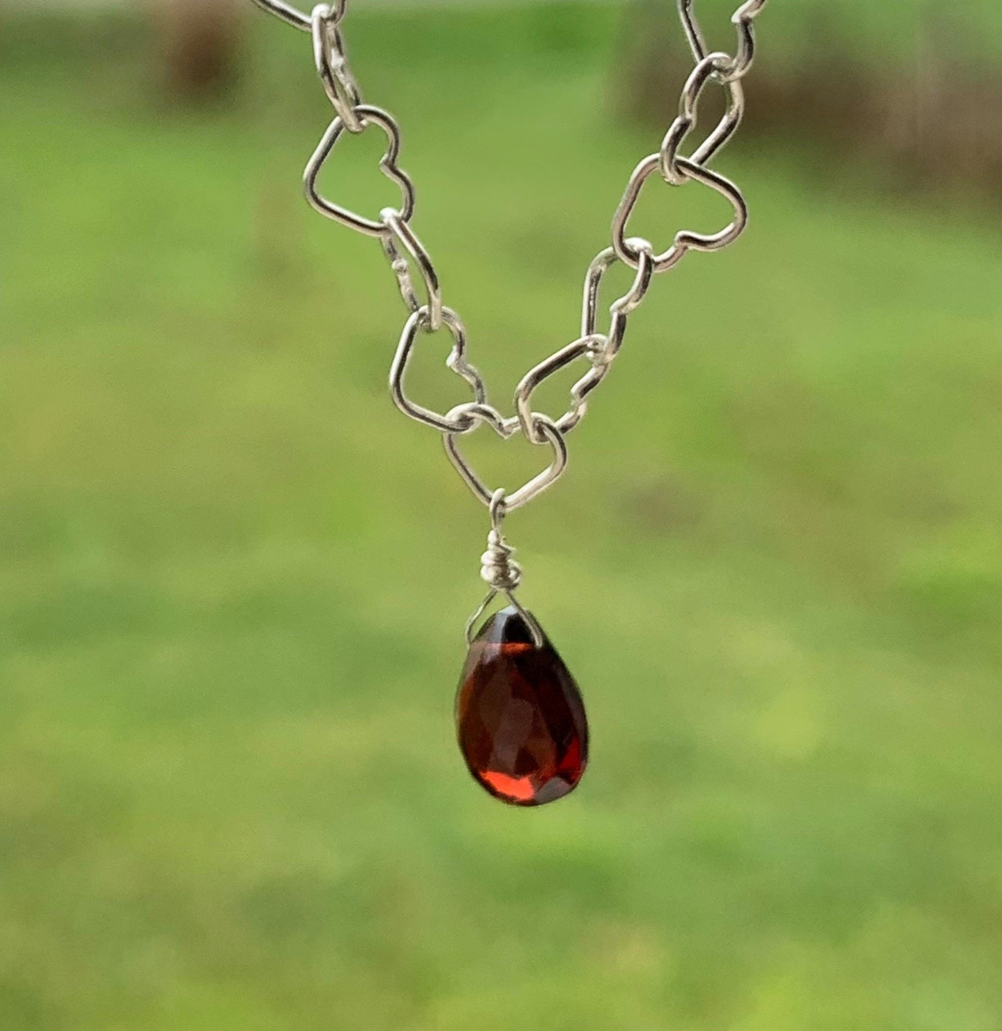 It is done in silver with a garnet briolette of 7,7 mm x 6,3 mm.