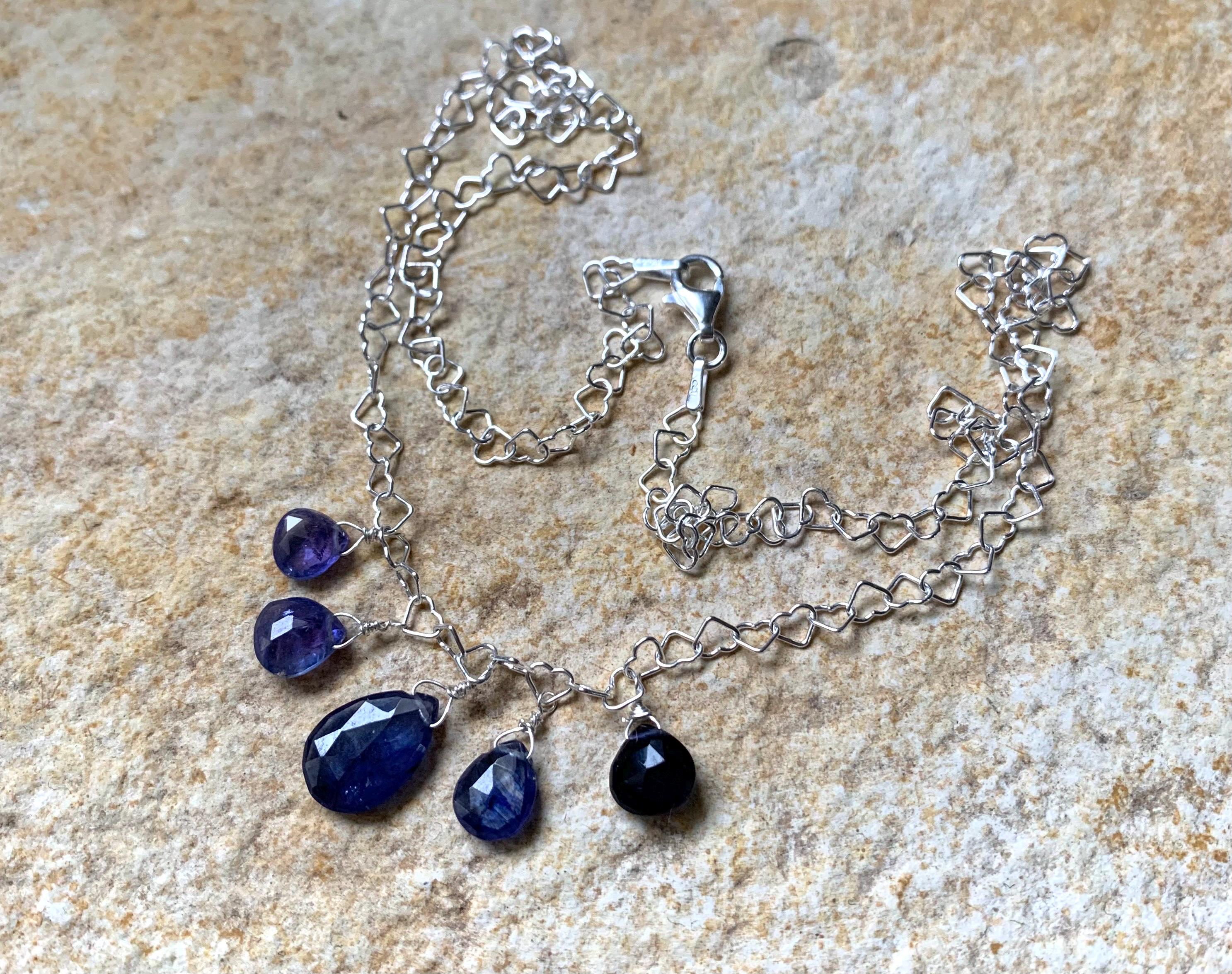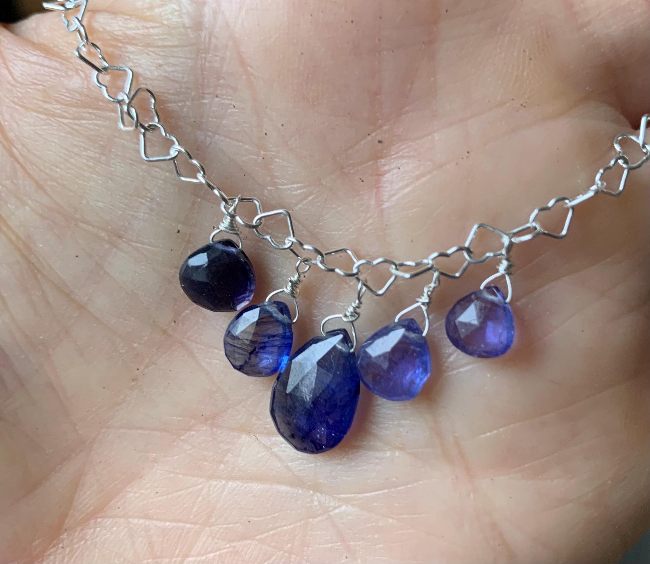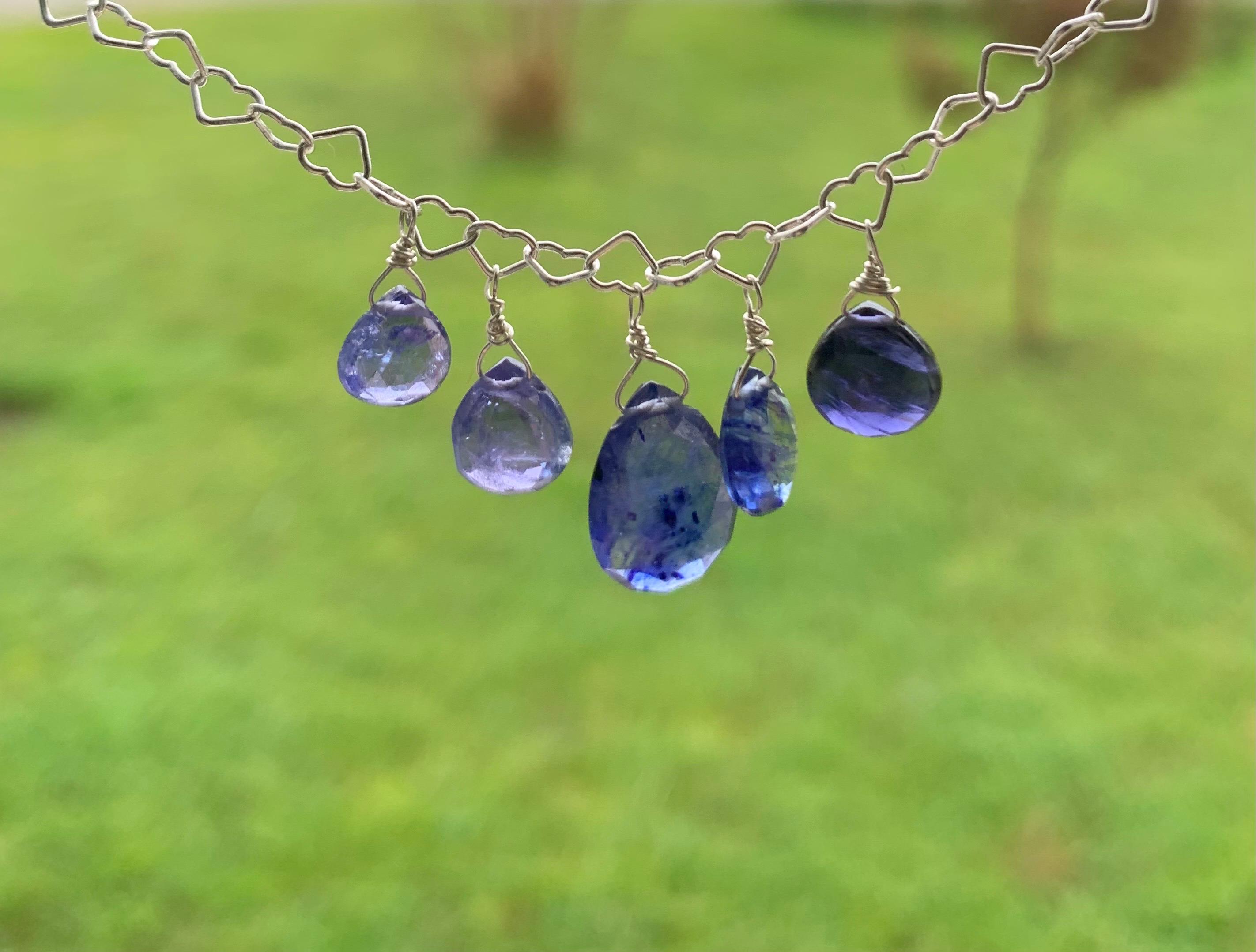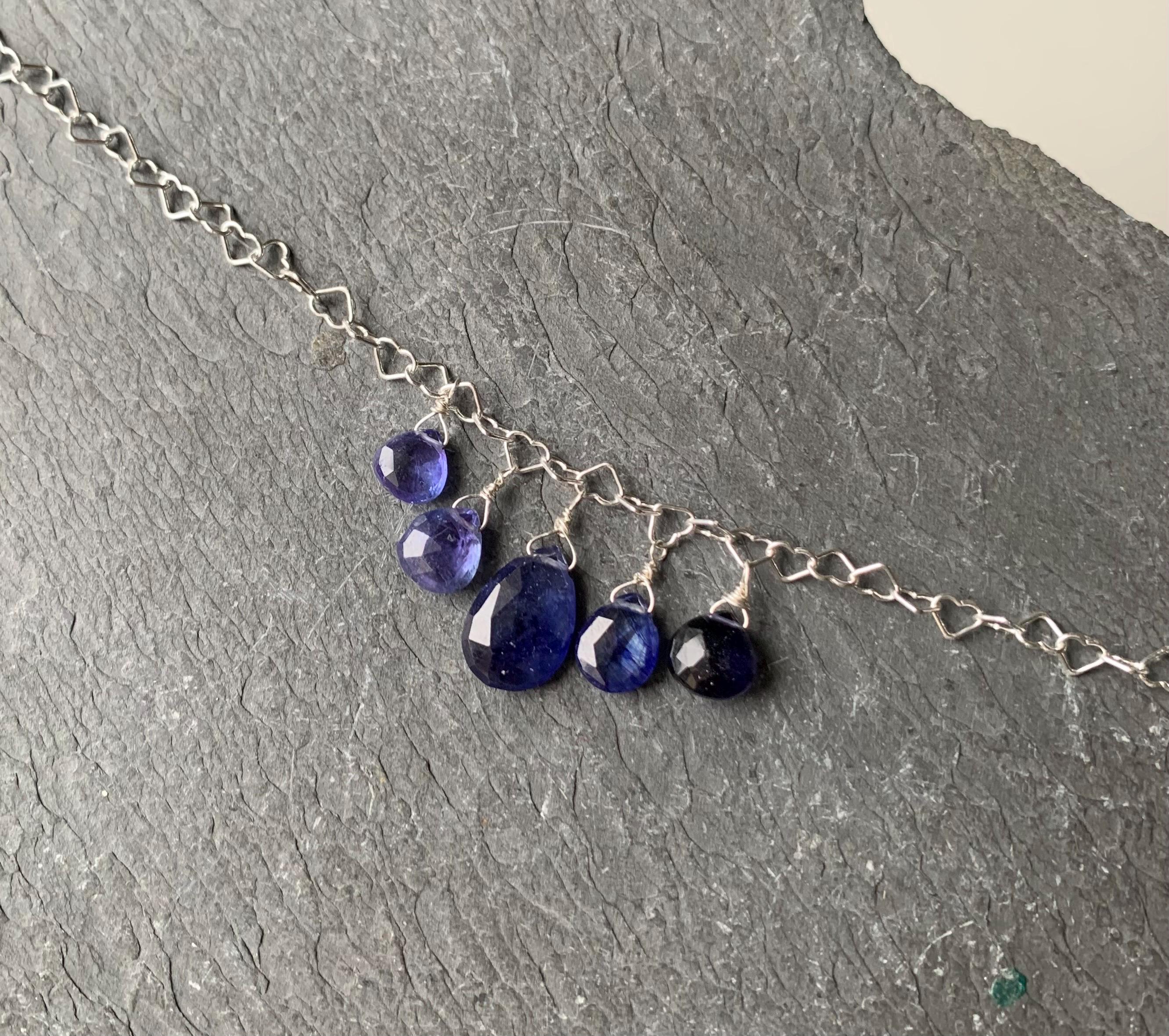 It is done in silver with 3 sapphires and 2 iolithes: total weight:8,5 ct.