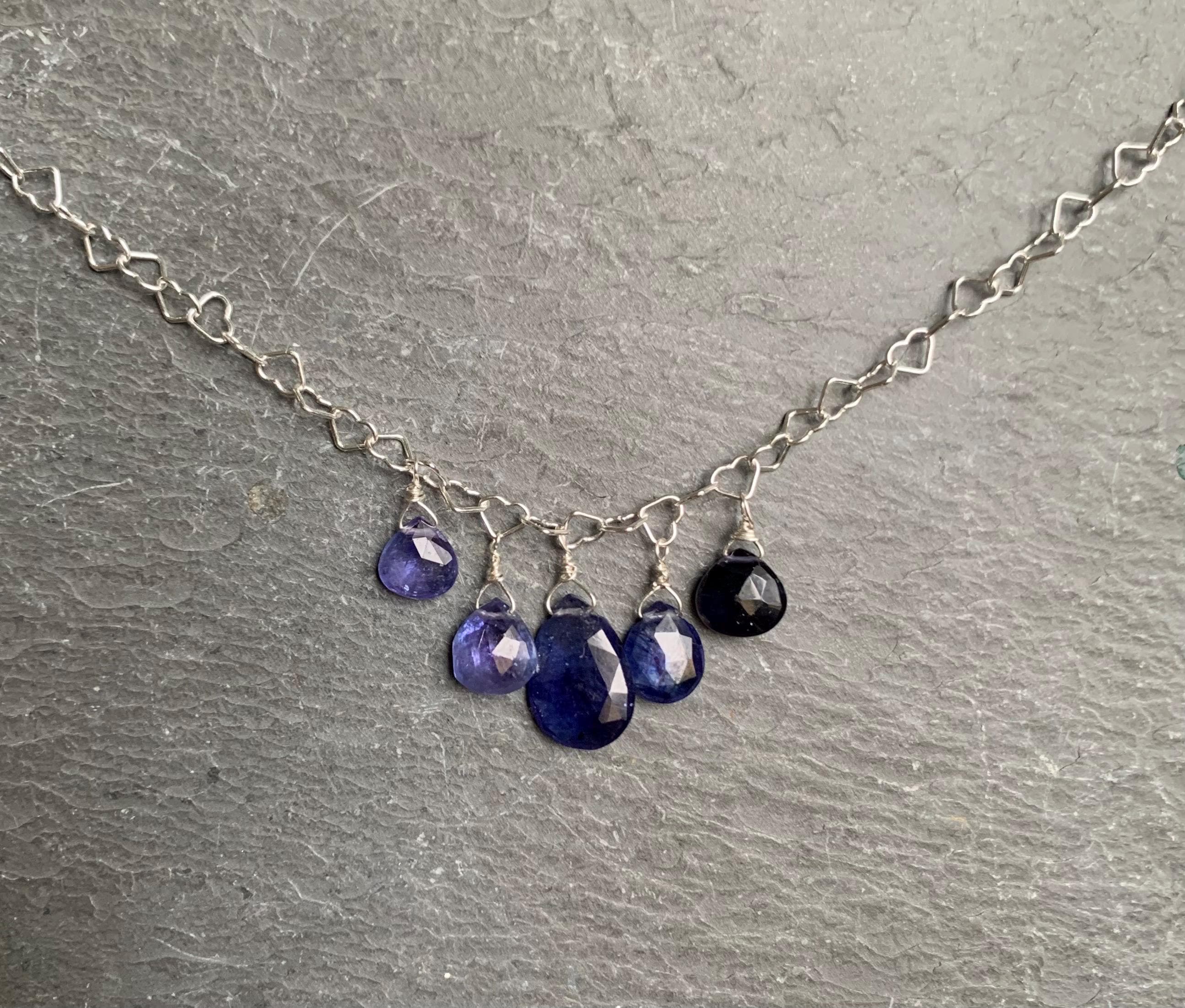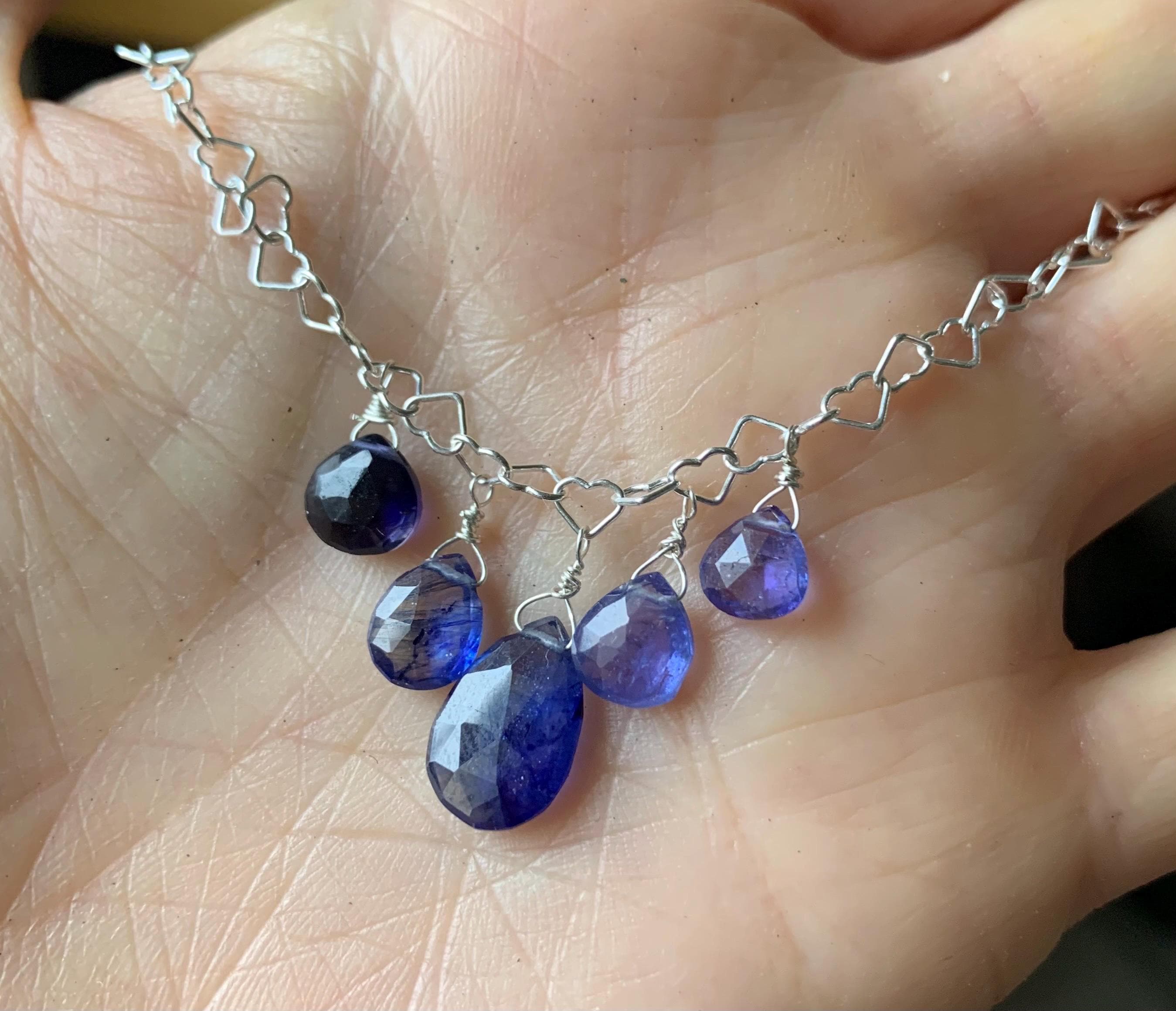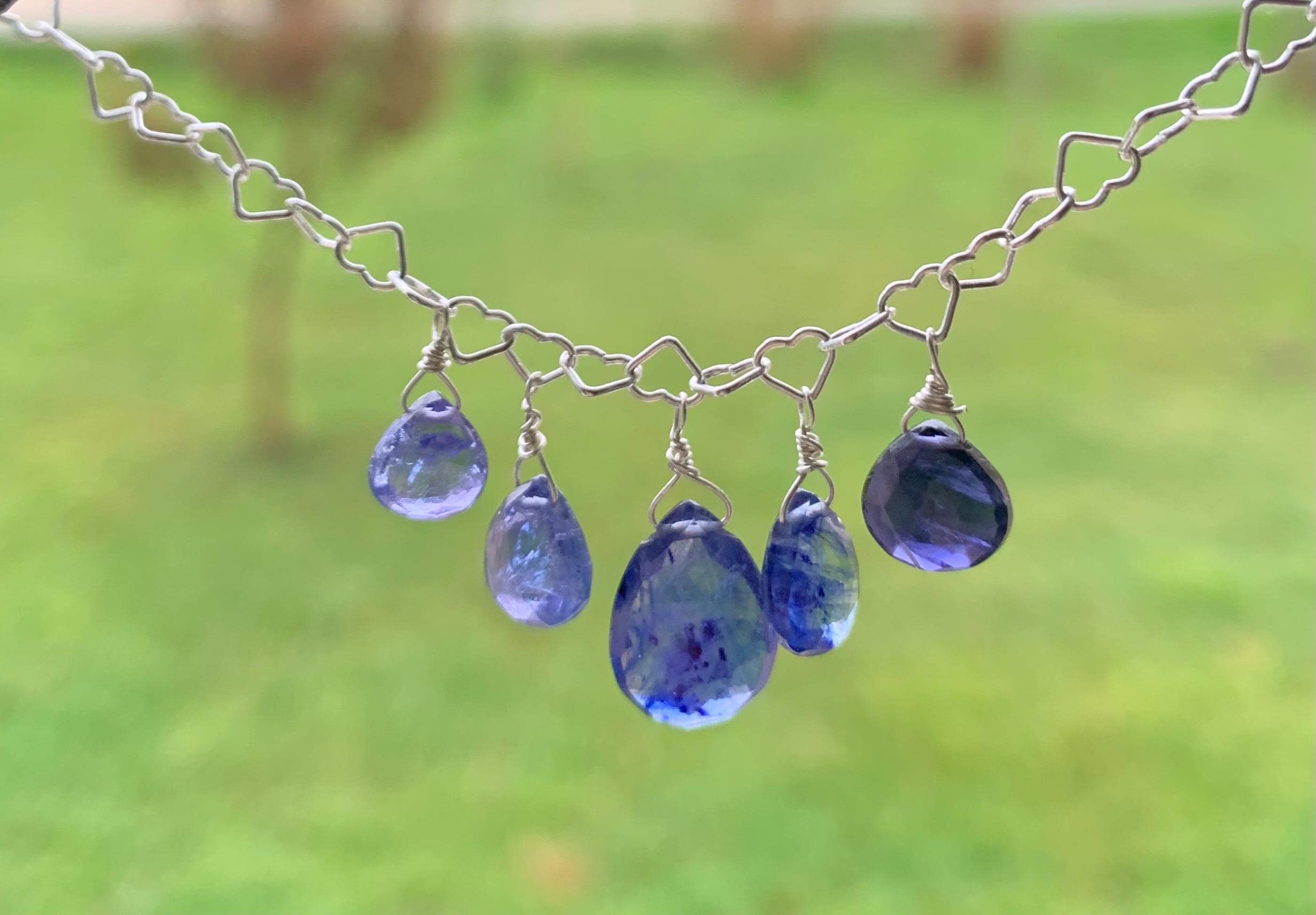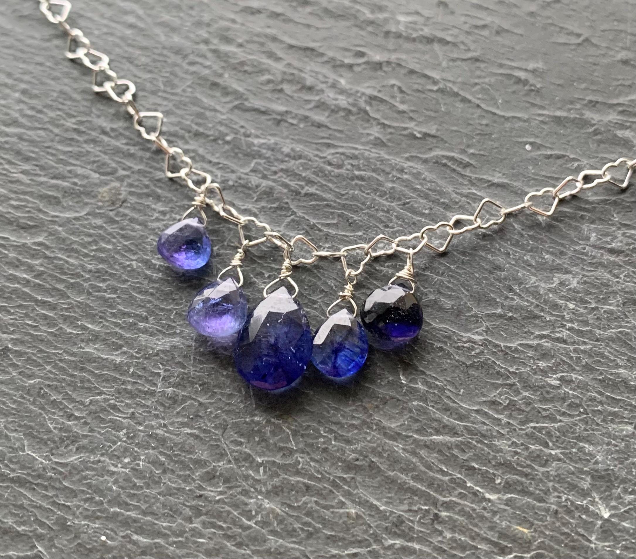 It is done in silver with 3 sapphires and 2 iolithes: total weight:8,5 ct.