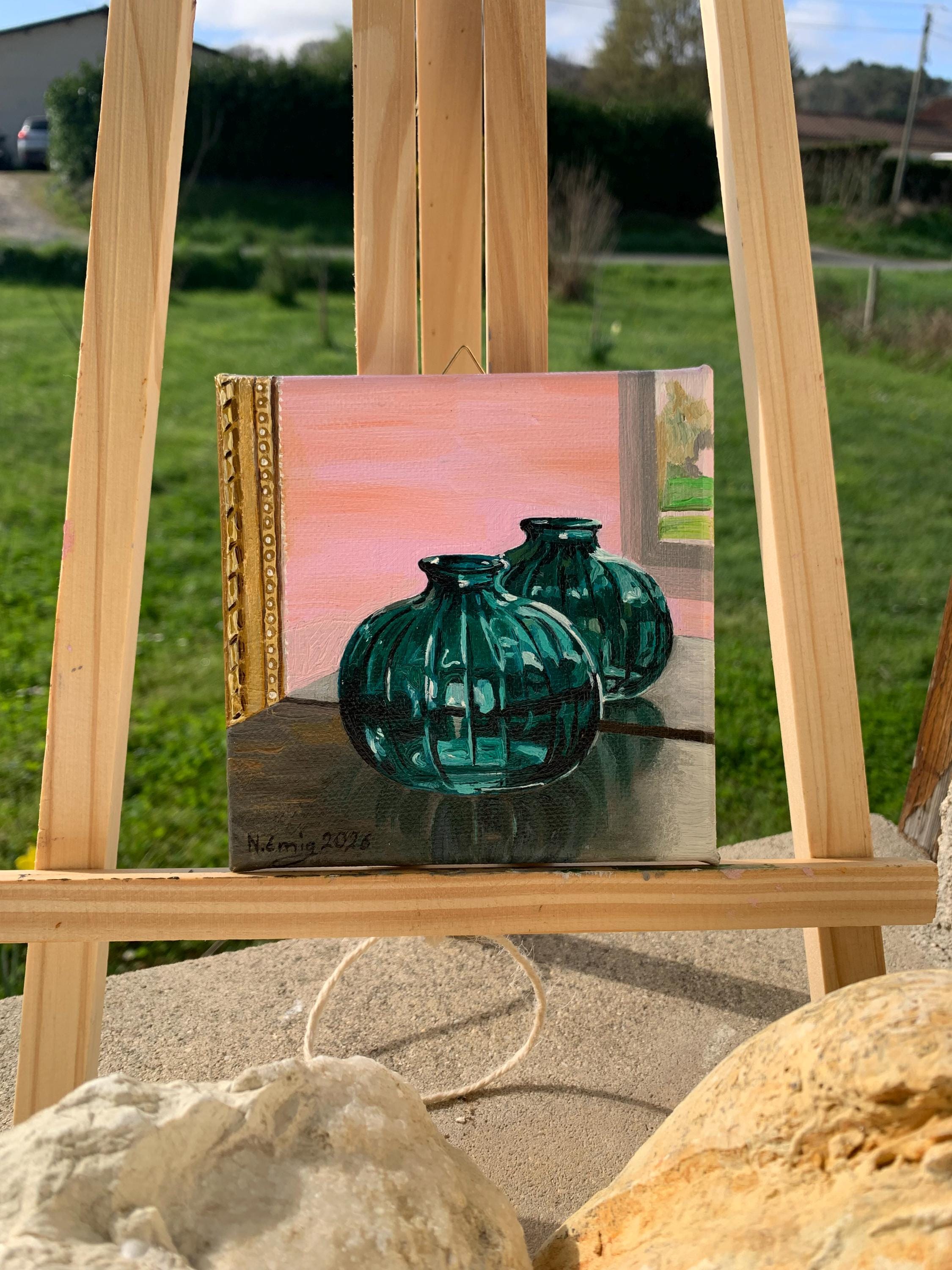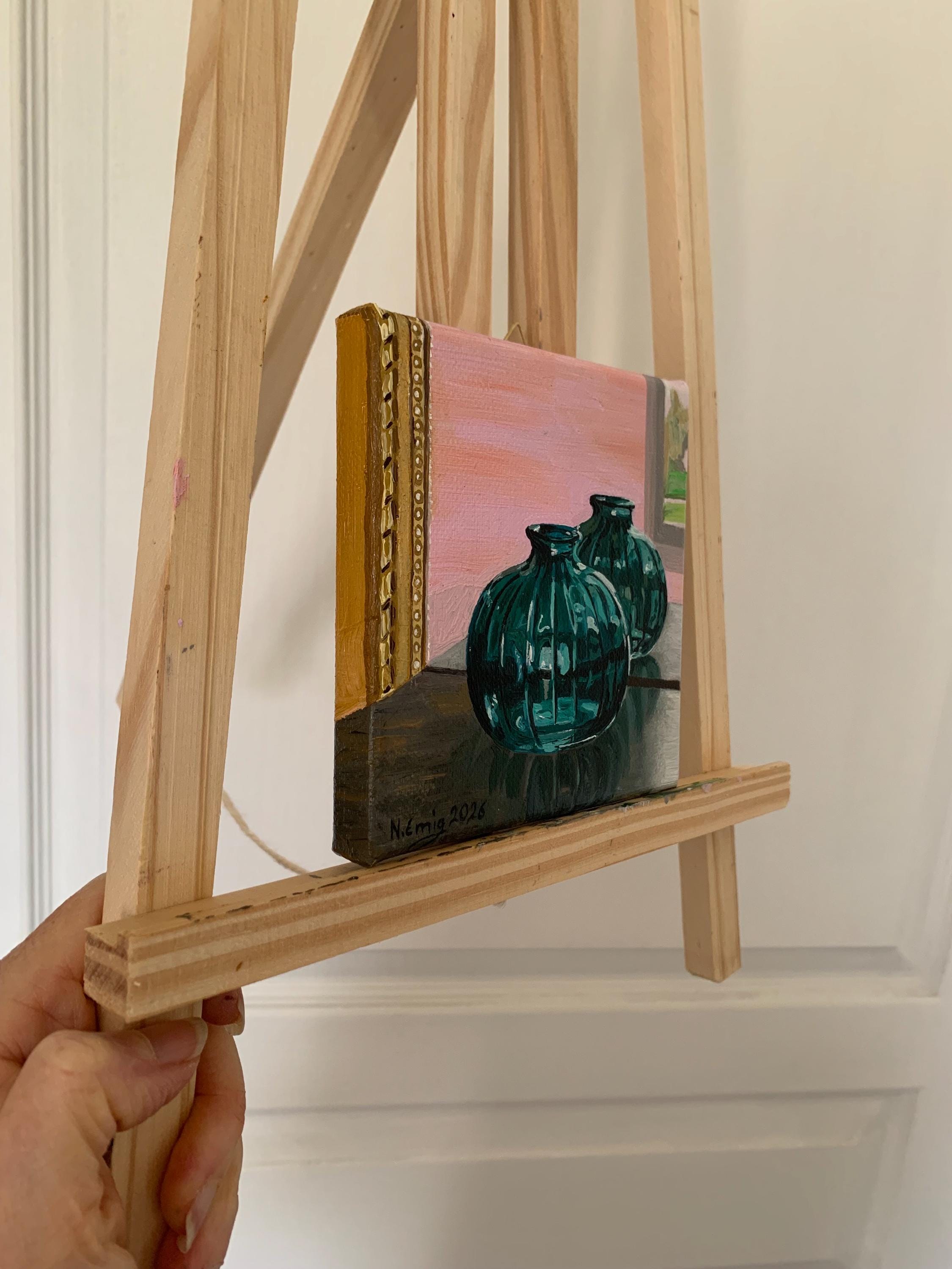 Here you will find an oil painting, on cotton canvas frame, 12 cm x 12 cm x 1.8 cm.