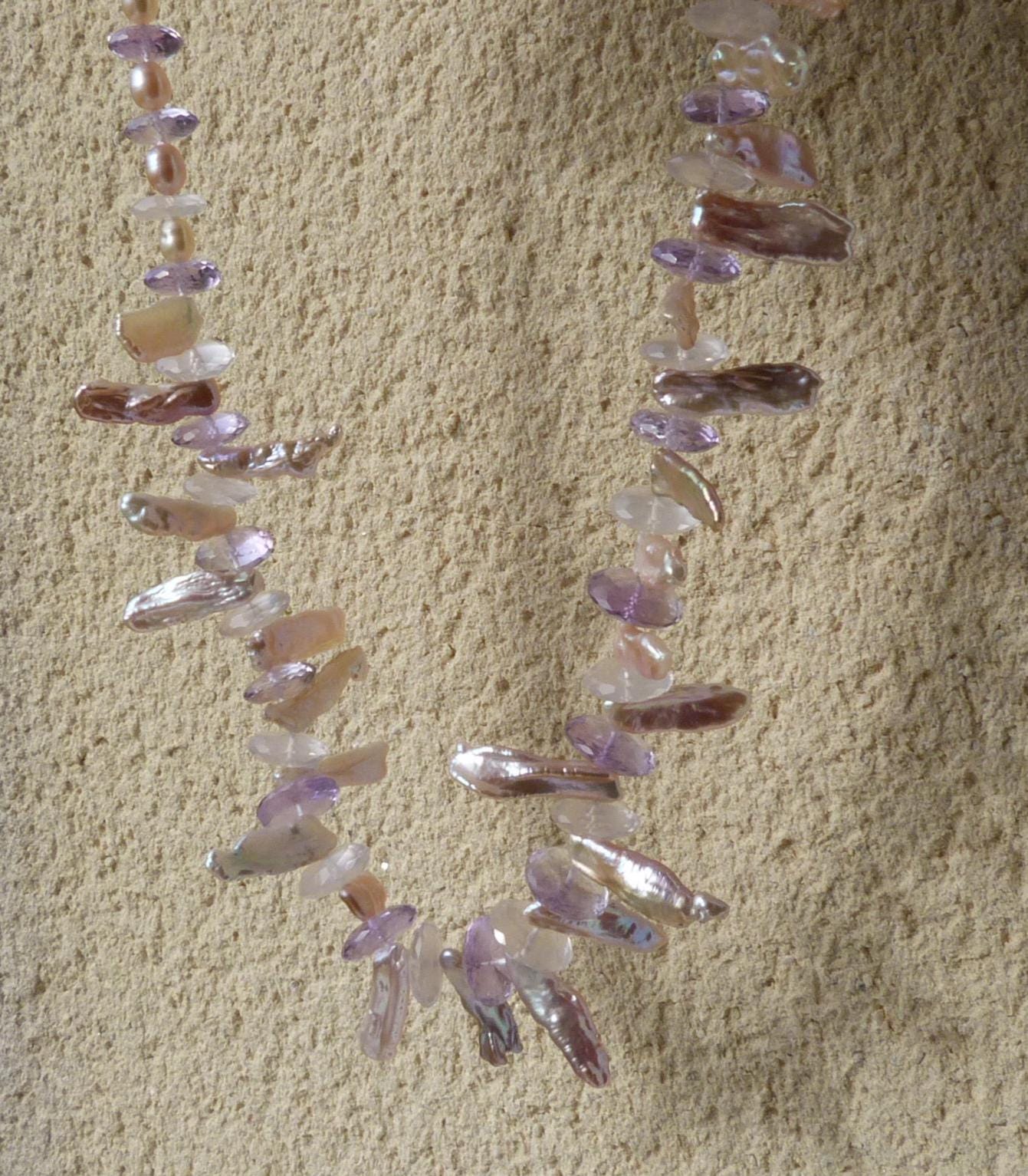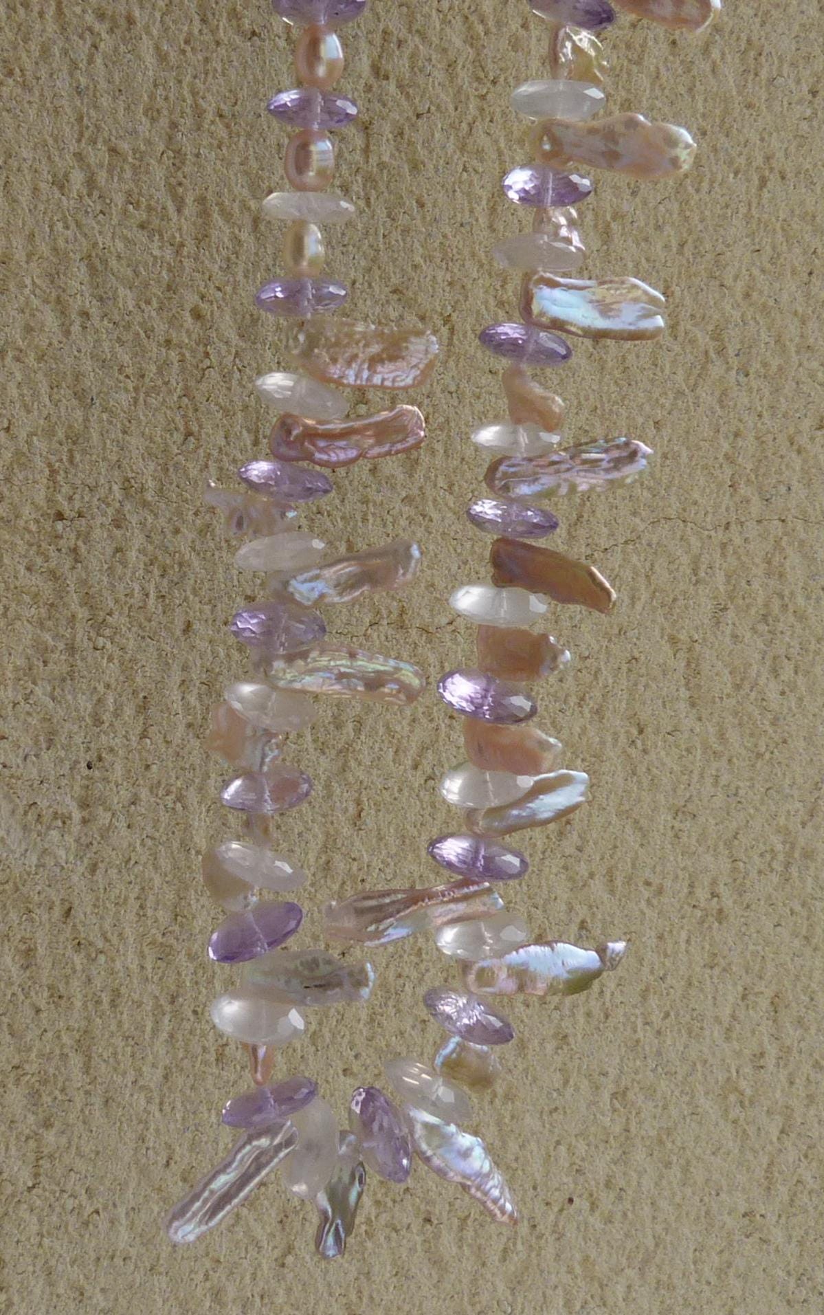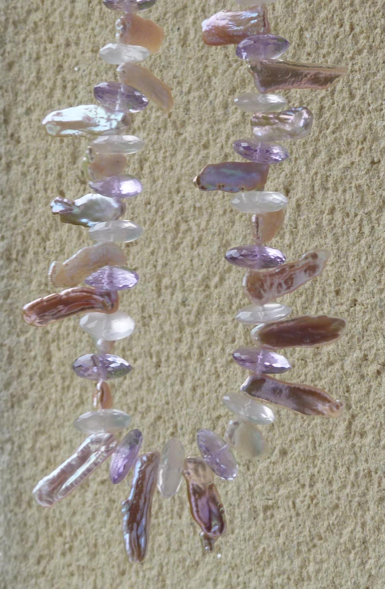 The keishi pearls have a wonderful lavender, rose colours.