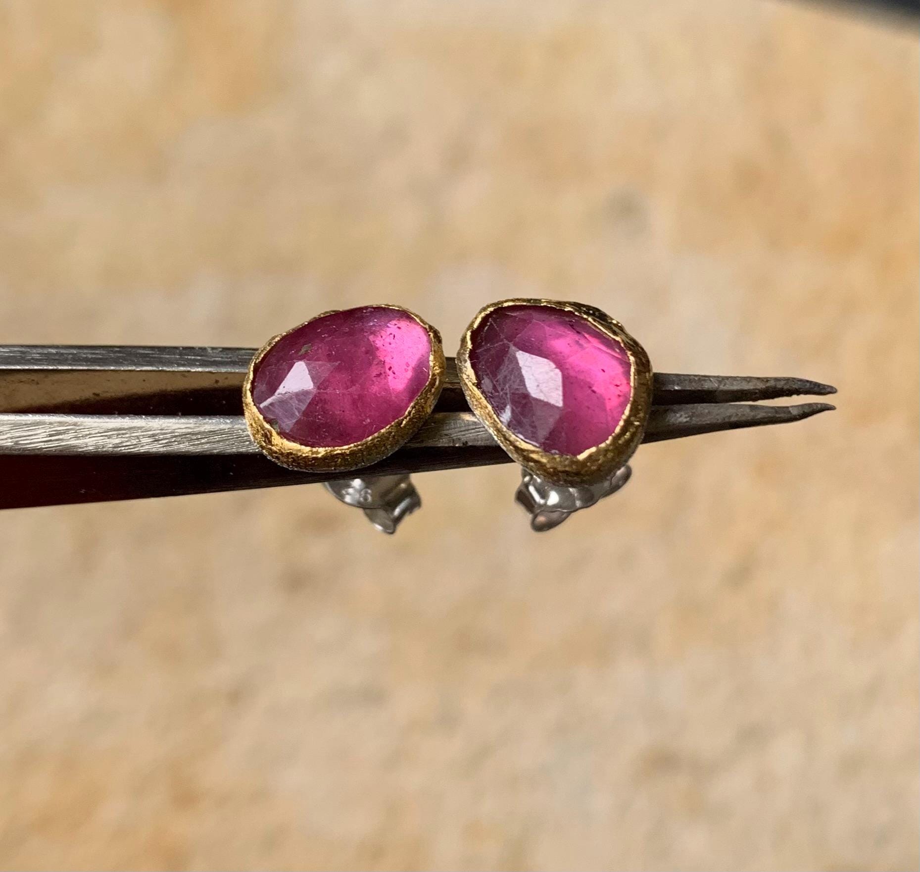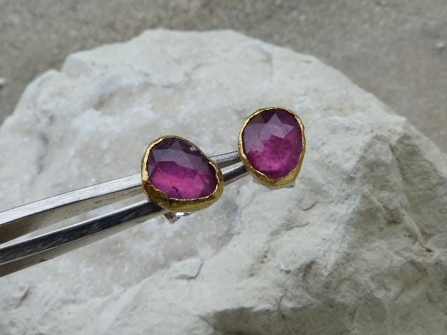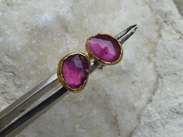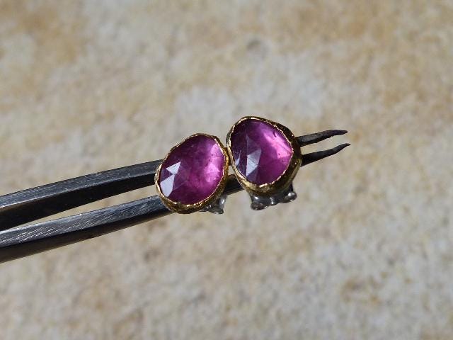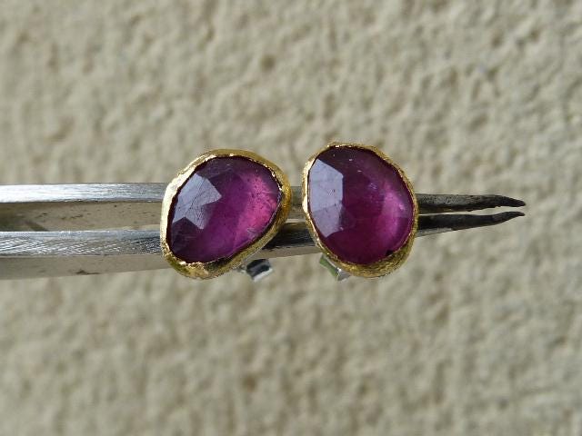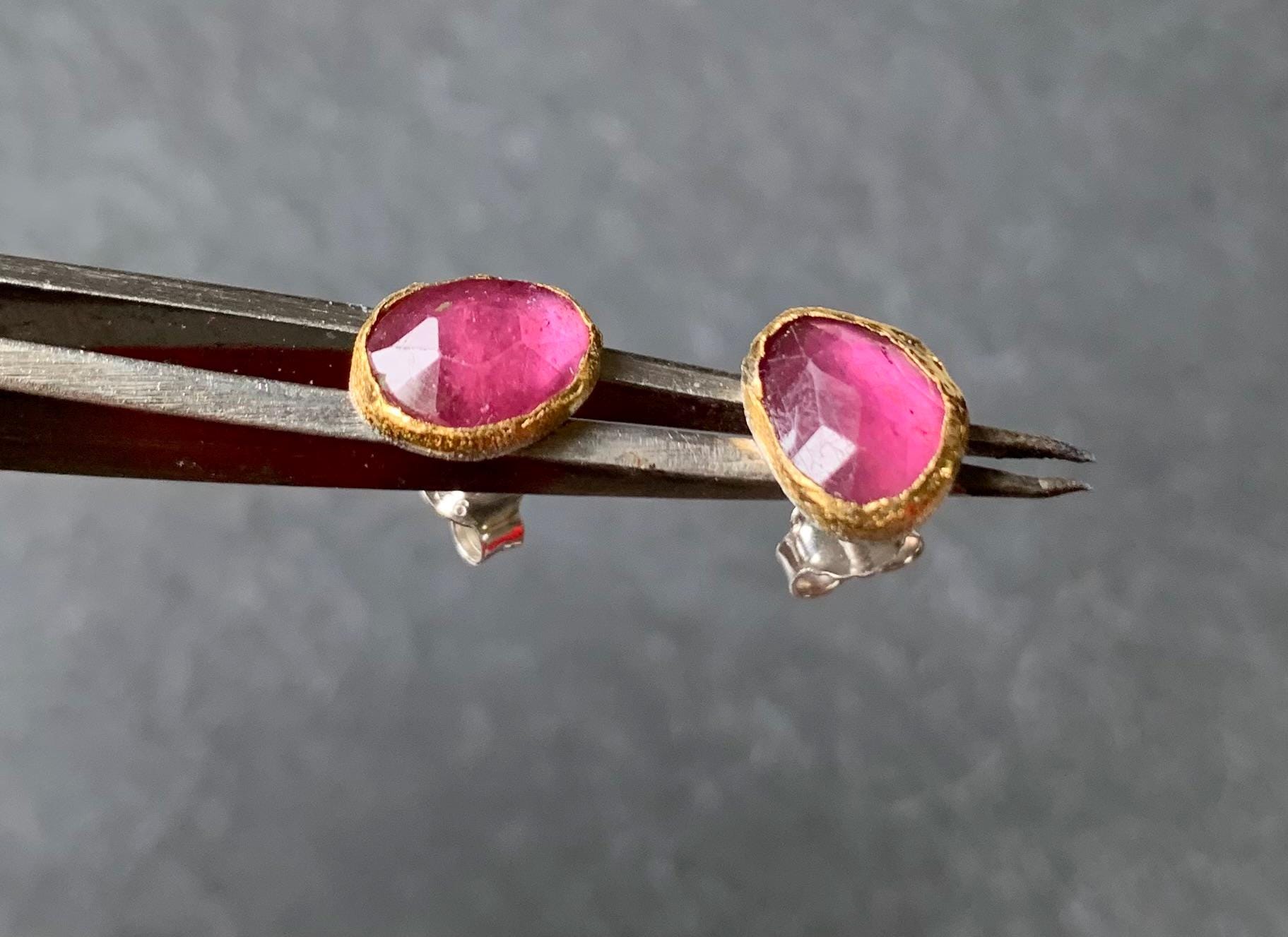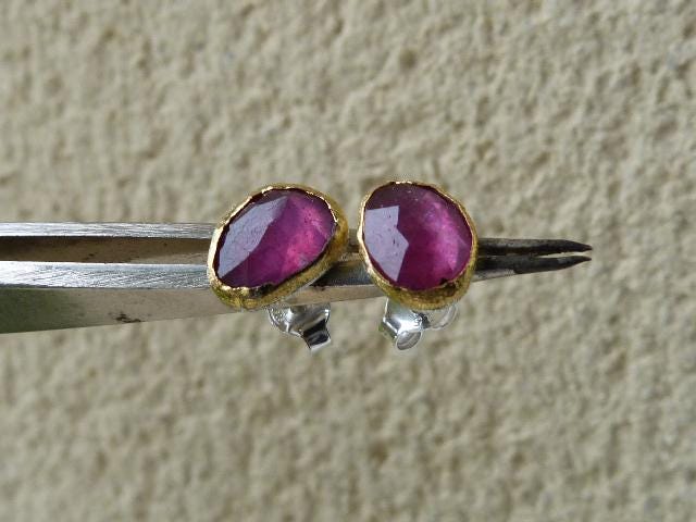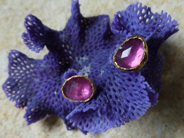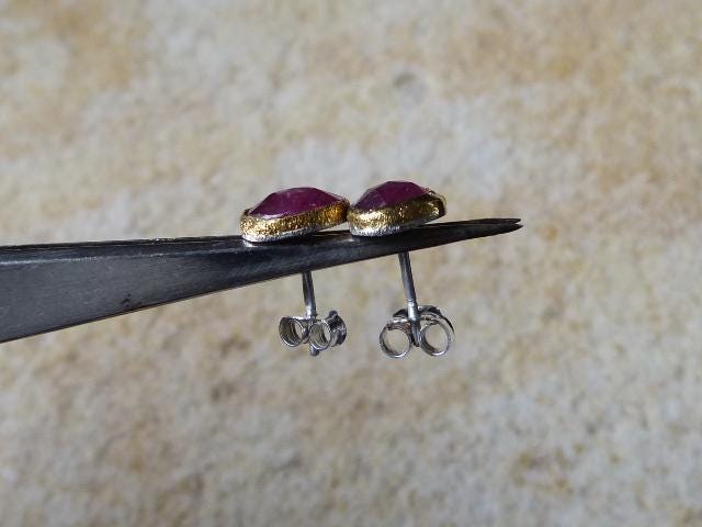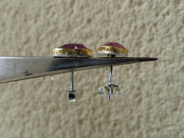They are done in silver with 2 rose sapphires ( 0,68 cm x 0,89 cm ; 4,25 ct the both ) setted in 24 k fine gold.