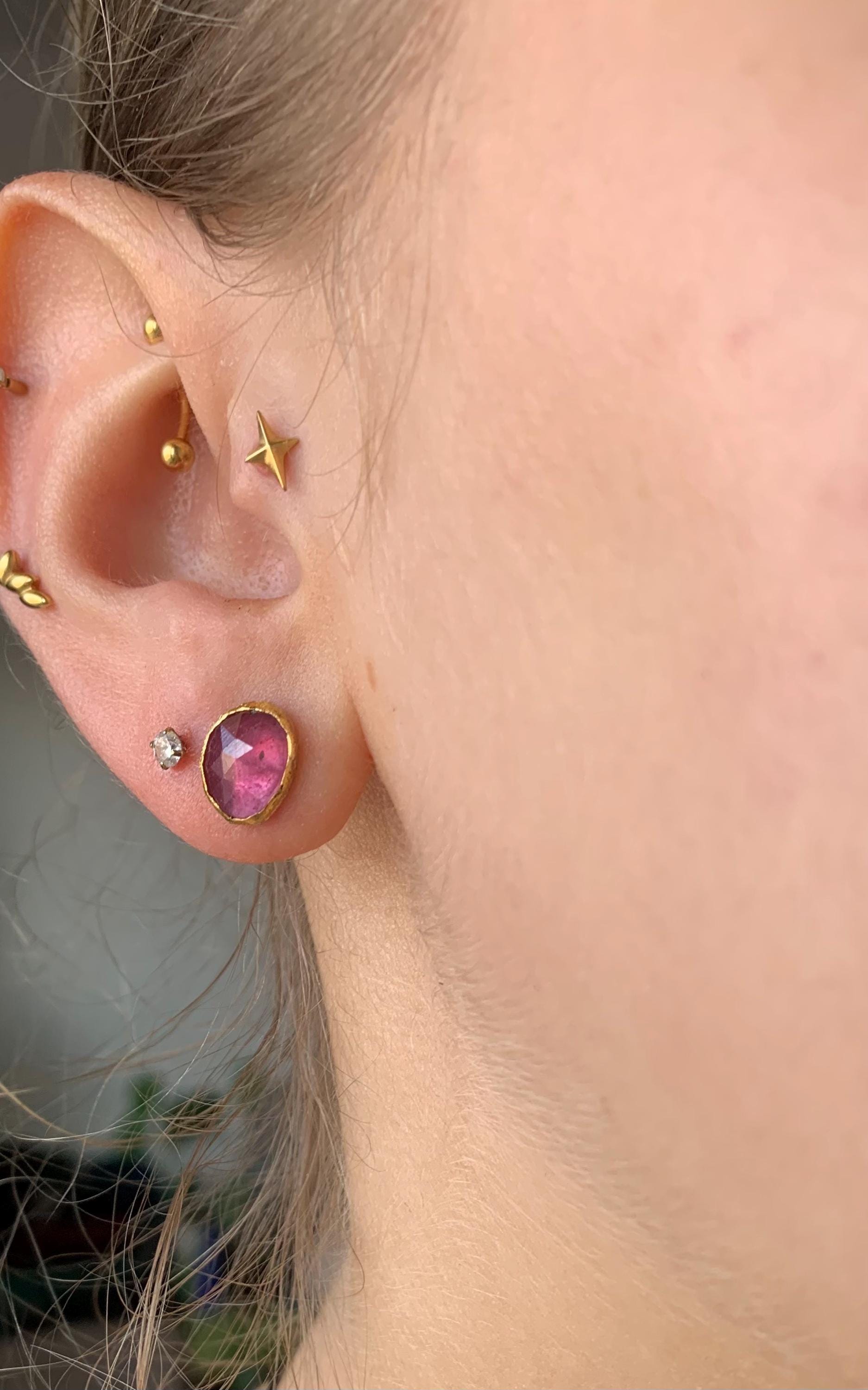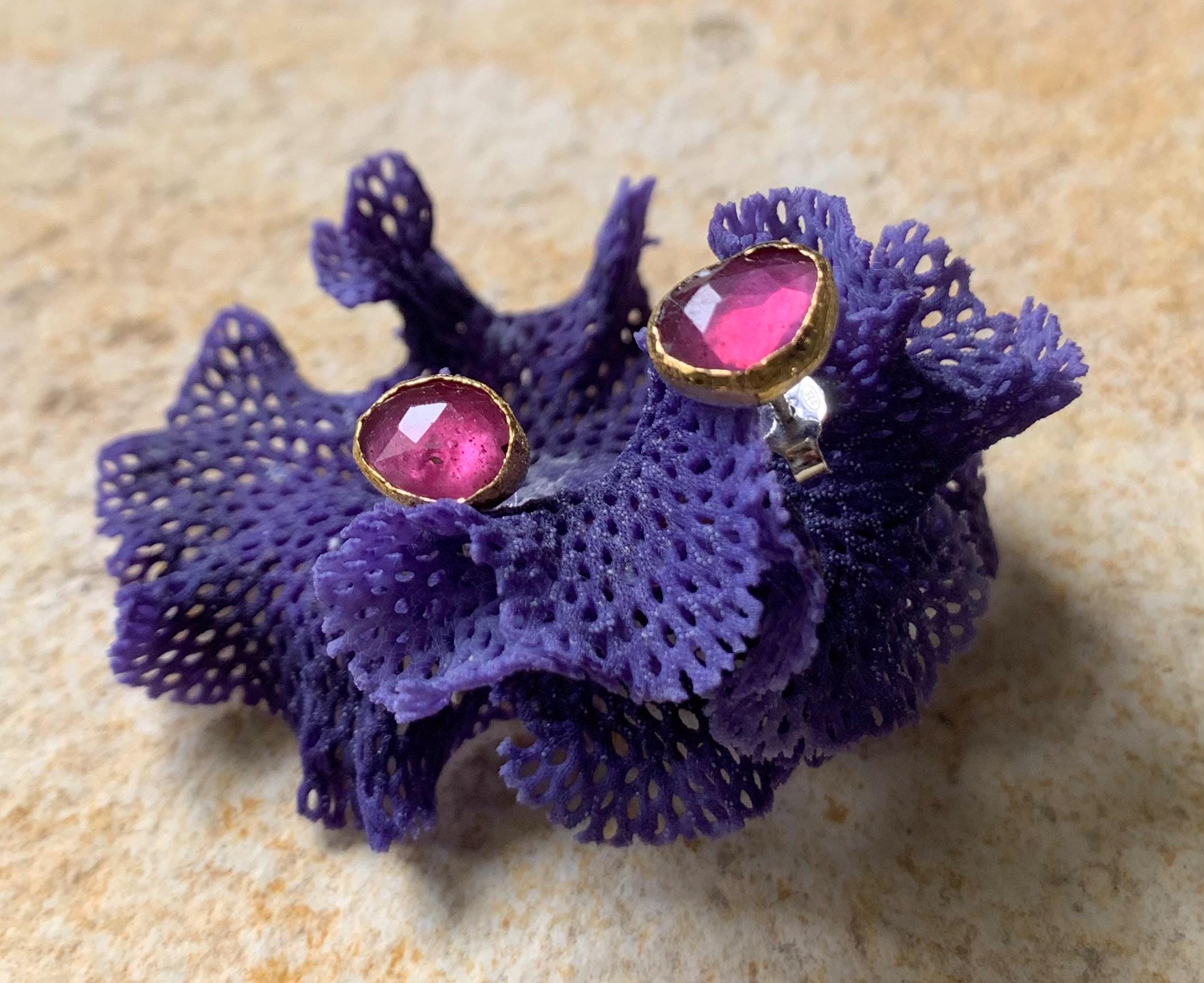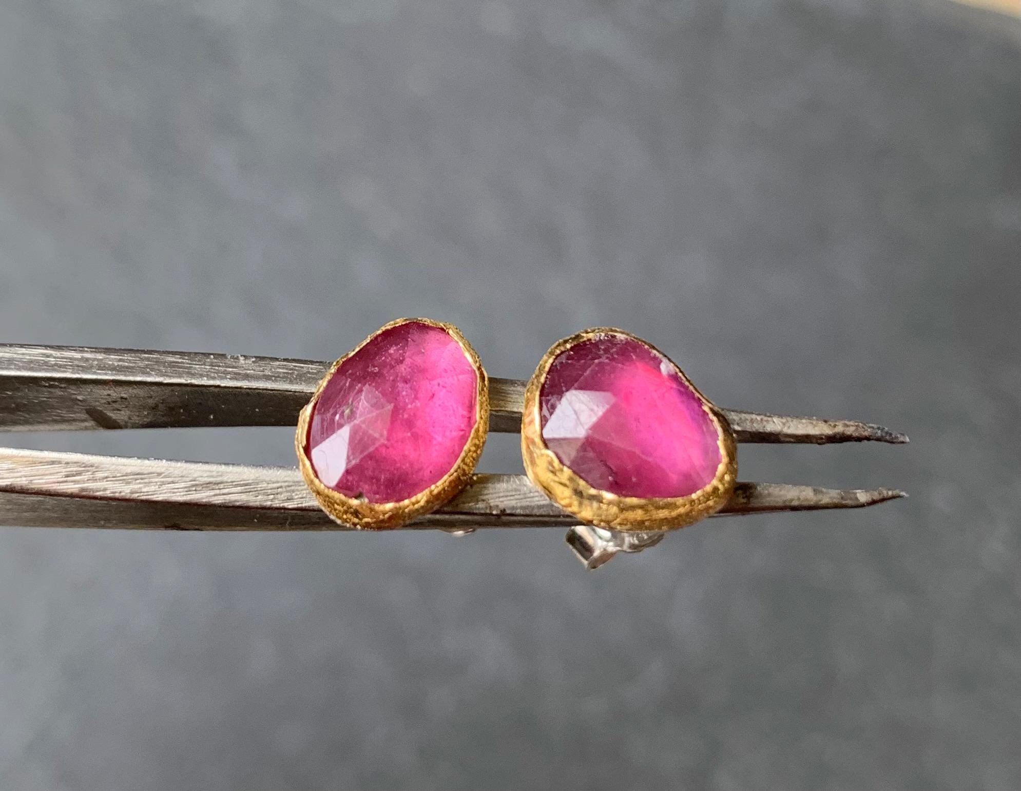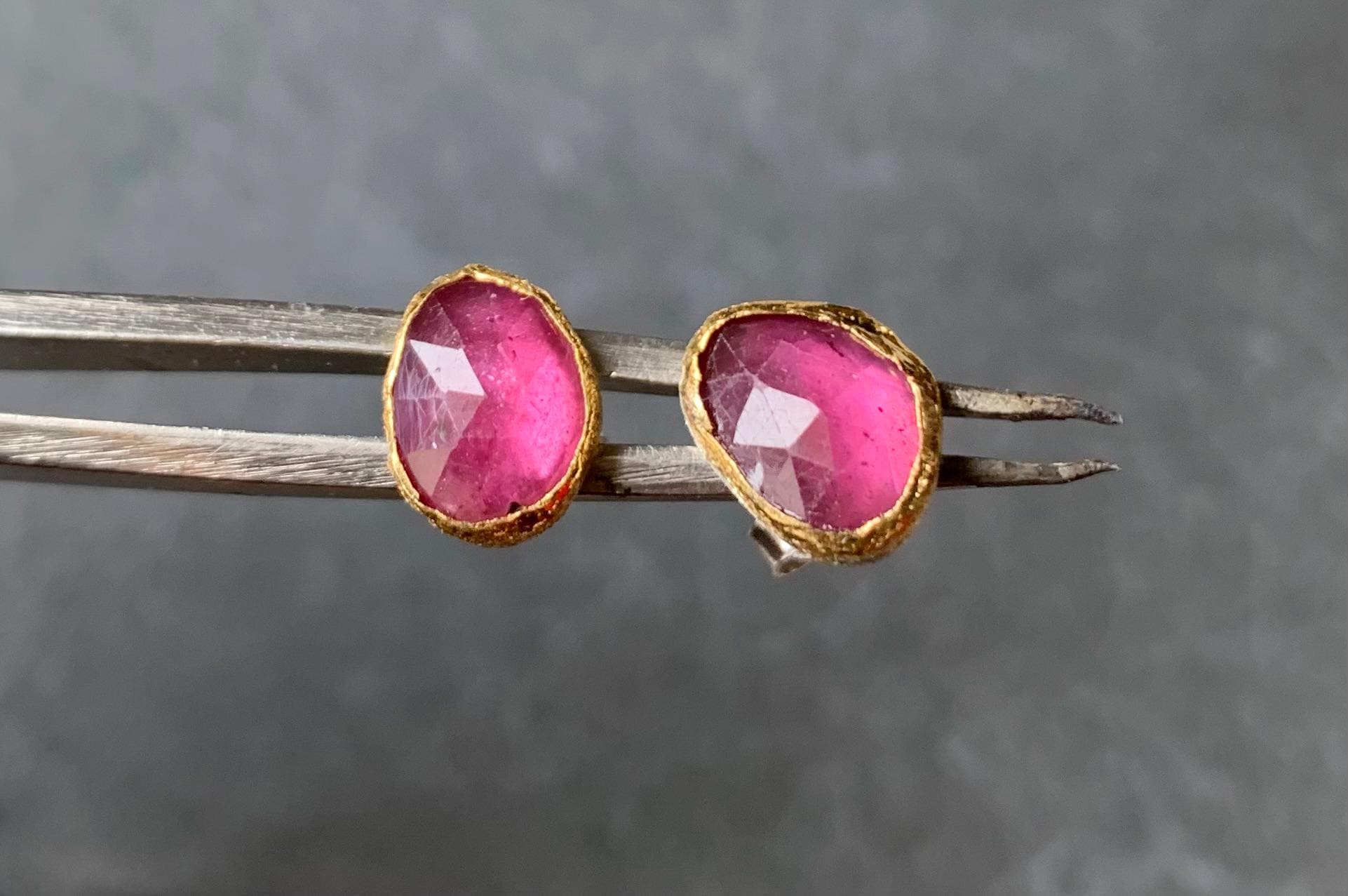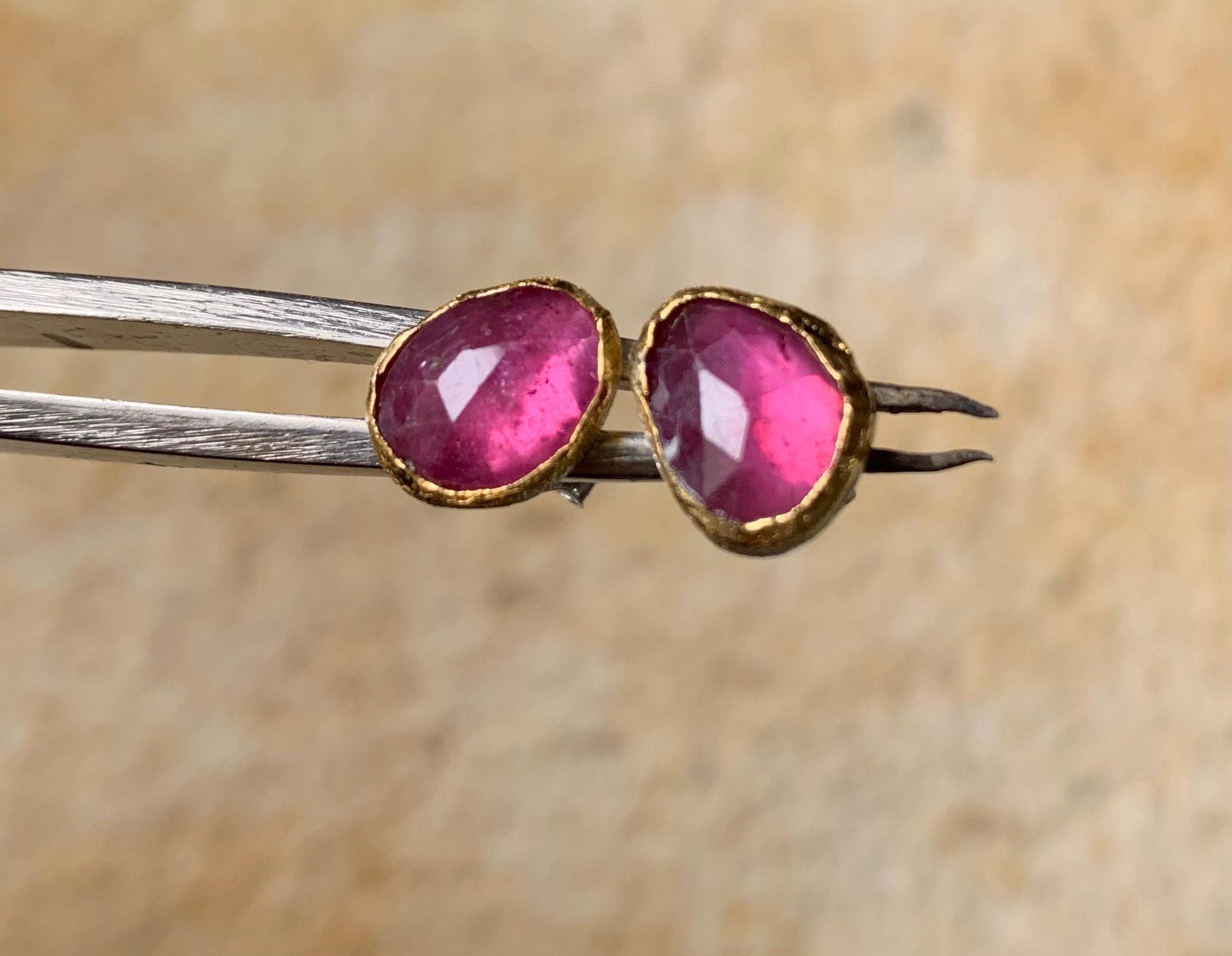 They are done in silver with 2 rose sapphires ( 0,68 cm x 0,89 cm ; 4,25 ct the both ) setted in 24 k fine gold.