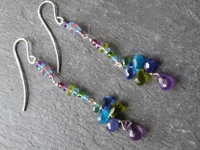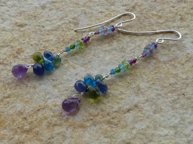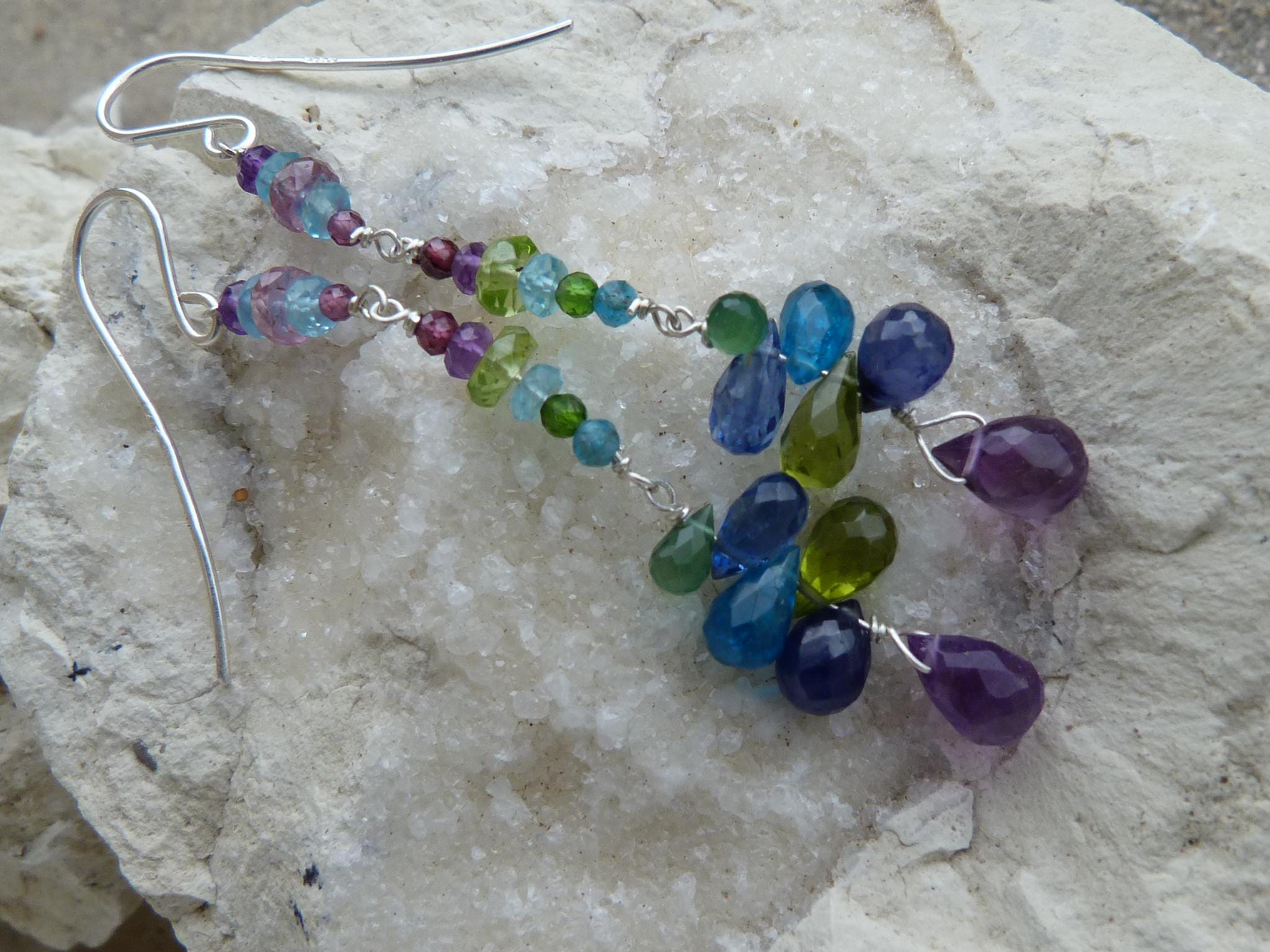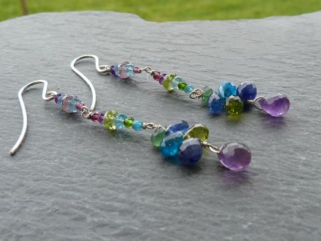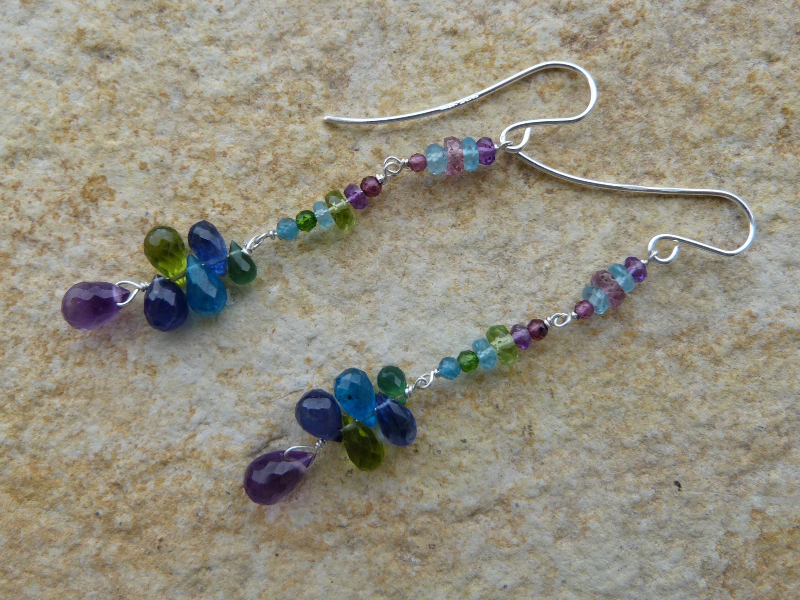 The metal is solid 925 silver with amethysts, peridots, blue and rose sapphires, aventurines, aquamarines, apatites and cyanites