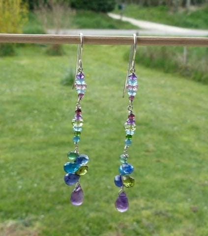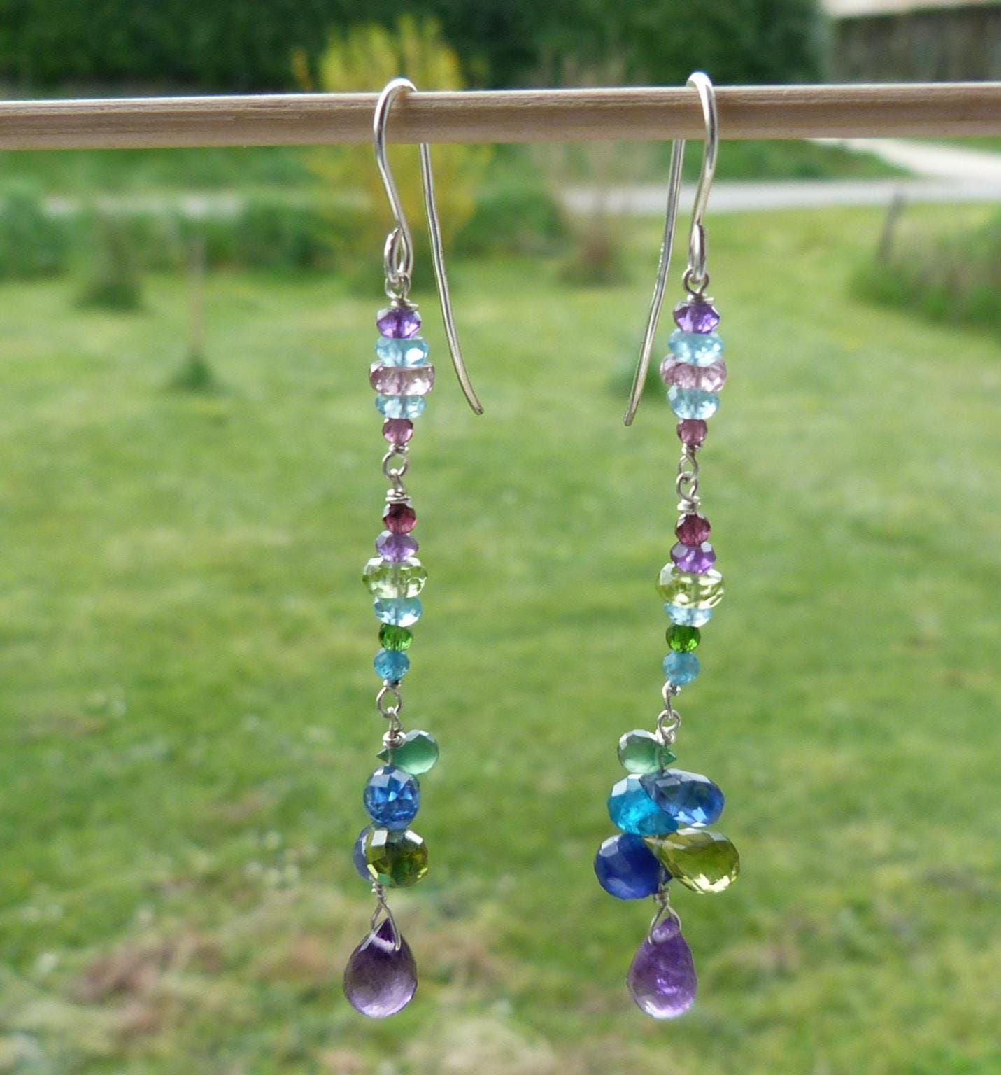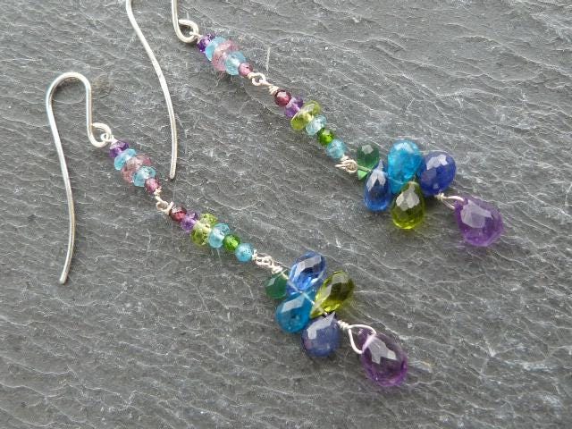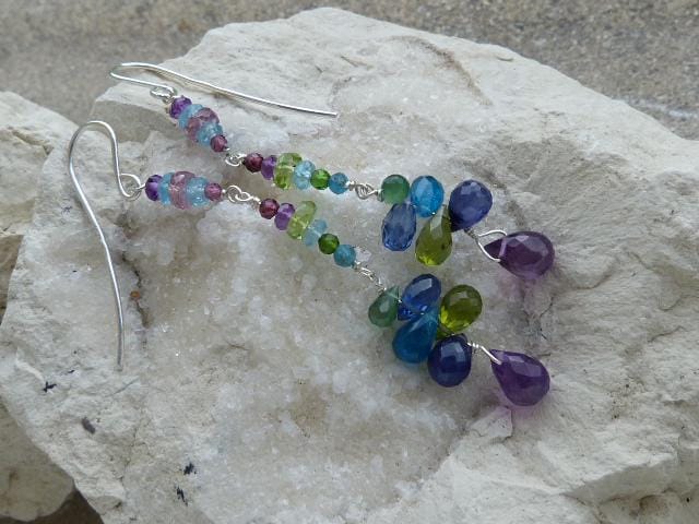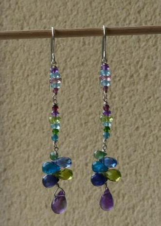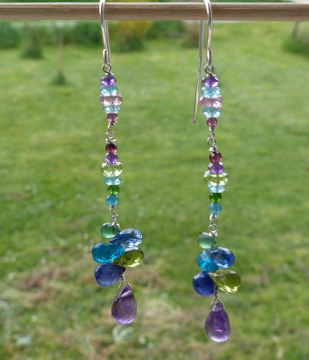 The metal is solid 925 silver with amethysts, peridots, blue and rose sapphires, aventurines, aquamarines, apatites and cyanites