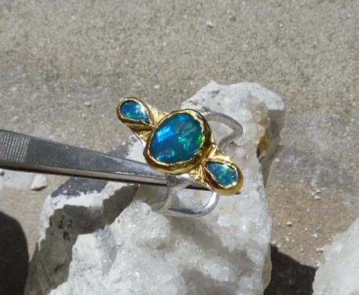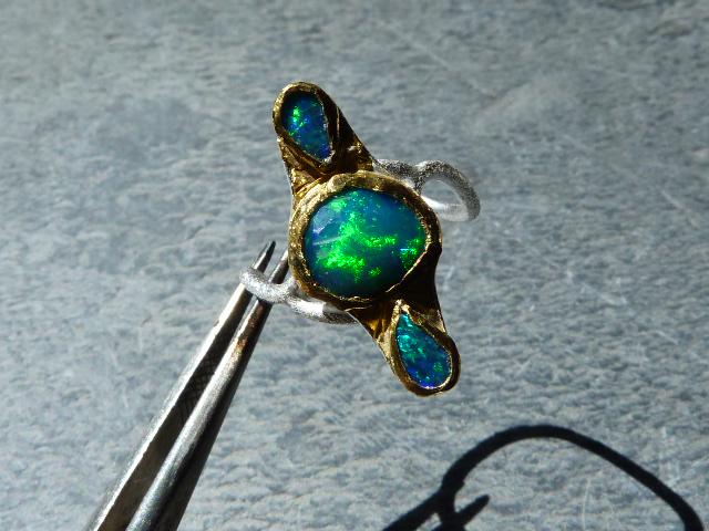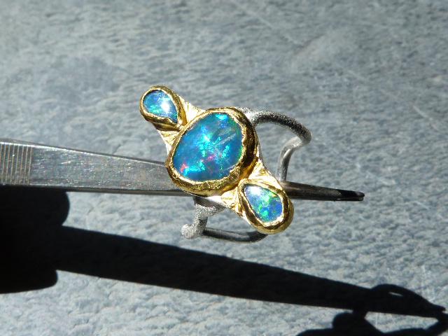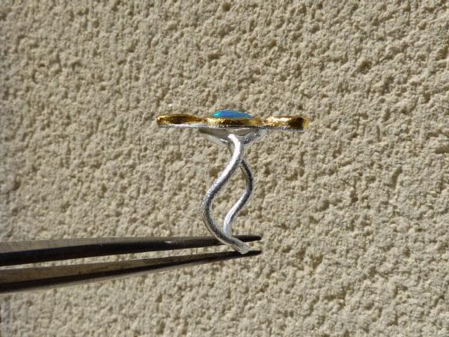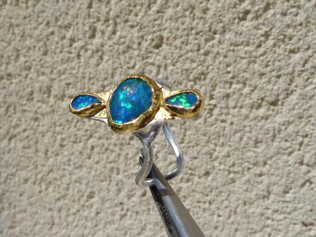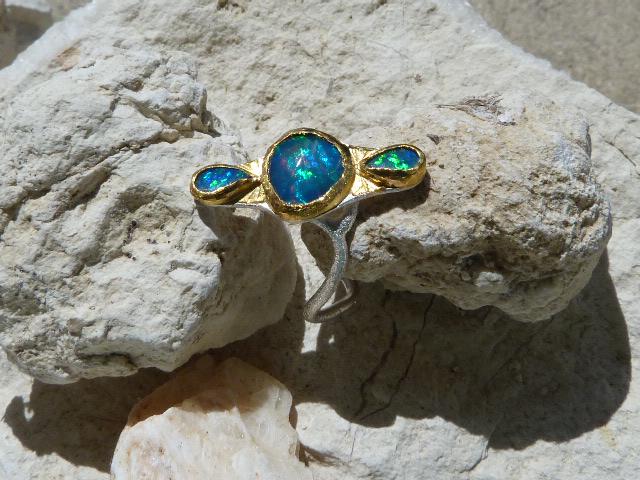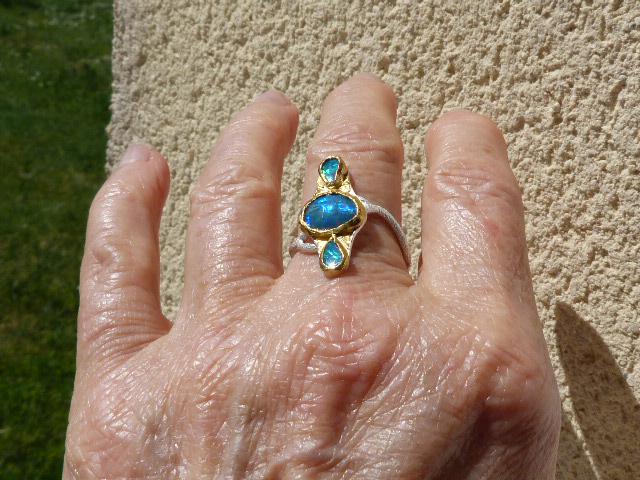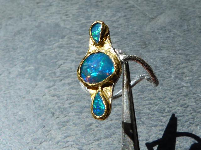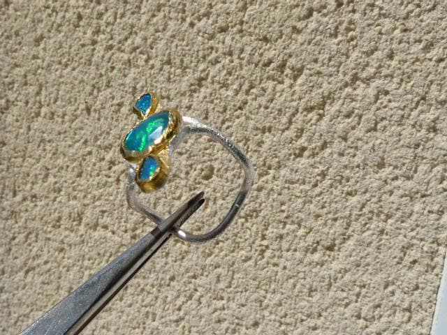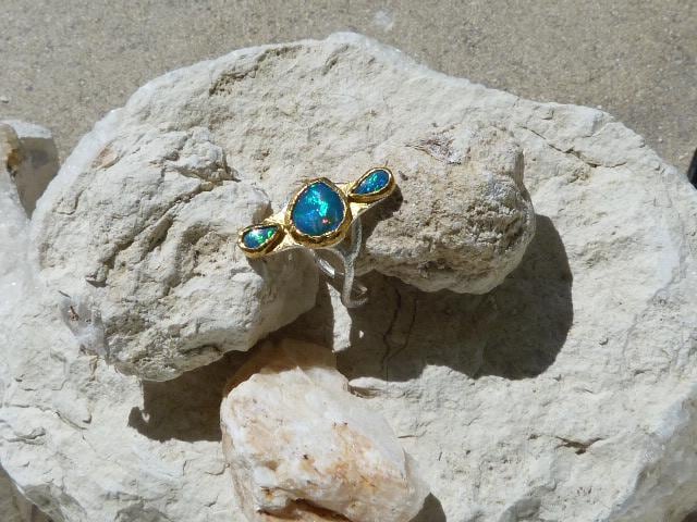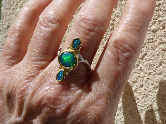The ring is done with 2 opal doublets: 5,9 x 3,3 mm ( 0,4 ct the both )