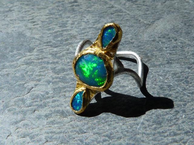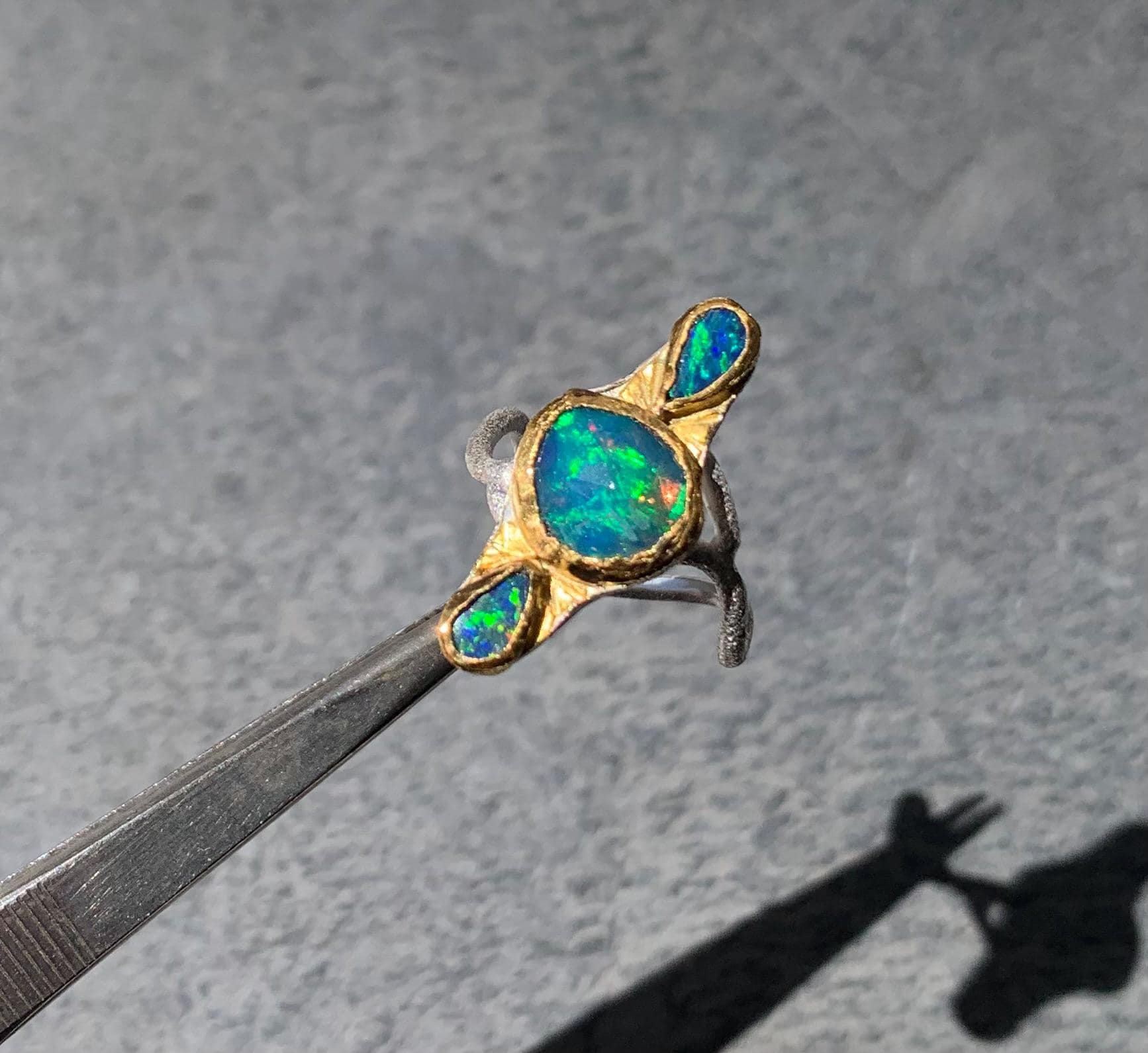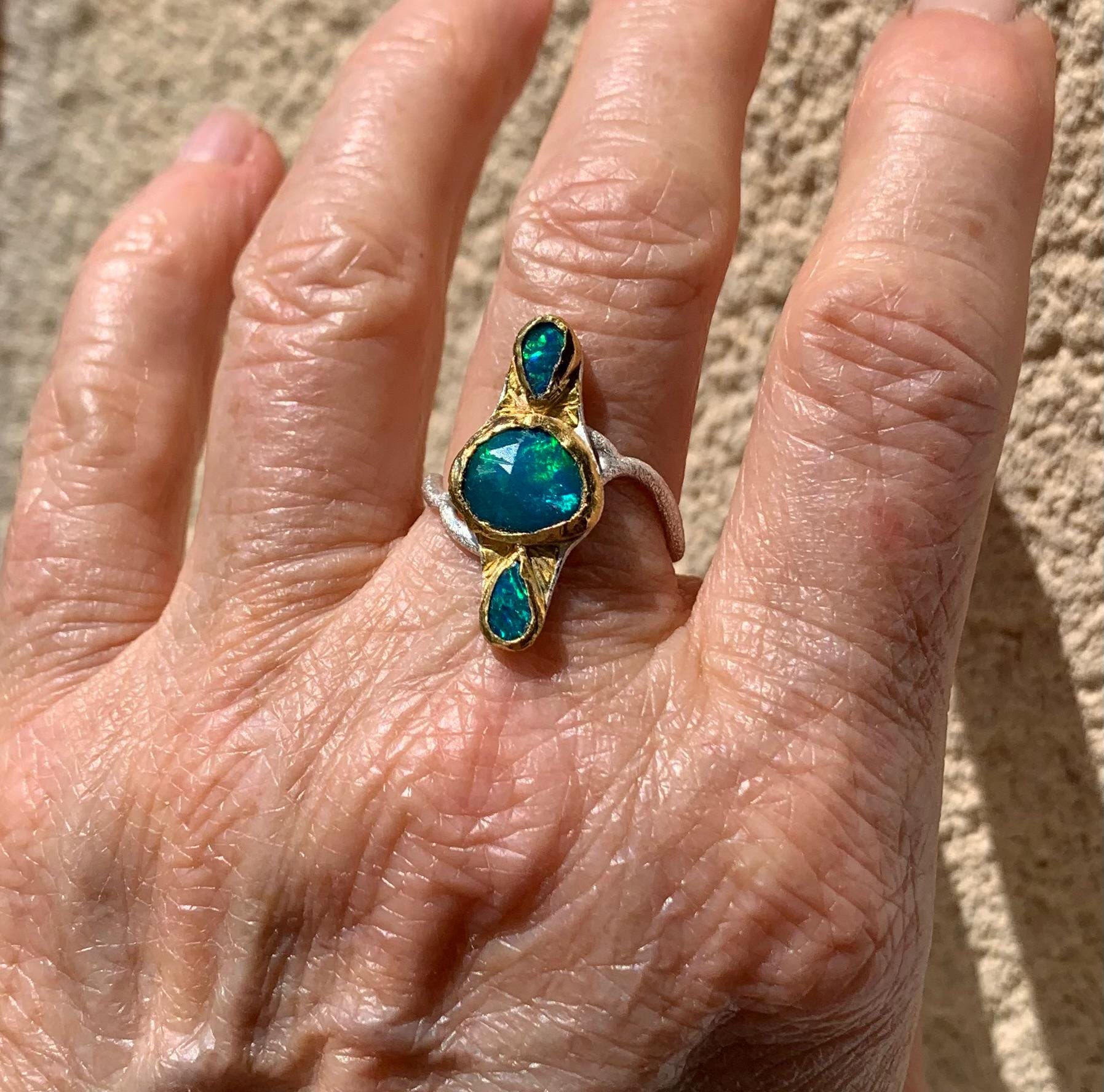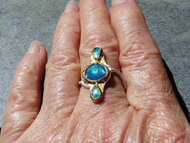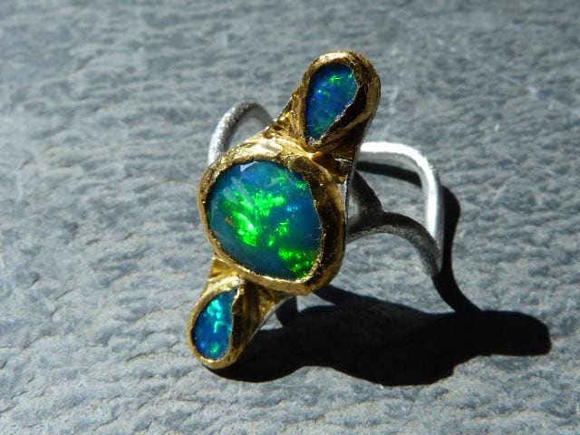 The ring is done with 2 opal doublets: 5,9 x 3,3 mm ( 0,4 ct the both )